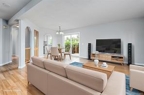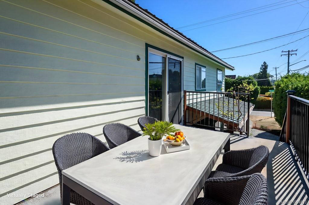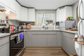 This up and down style Duplex is not a strata. The main unit is 1059 sqft with 2 bedrooms and 1 Five piece bathroom. The large south facing deck is ideal for entertaining and BBQ’s. Heated by a gas furnace with fresh paint and new carpets this vacant unit is ready to be lived in. The Lower level is 1085 sqft which also has 2 bedrooms and a 4 piece bathroom. This unit had been renovated most recently and has baseboard heating. Currently tenanted for $1580 per month with a good tenant. There are 4 large parking stalls and this house has access to two street frontages for convenience. Close to Schools, All levels of Shopping and the bus route.