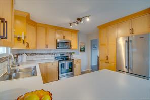 Remodeled family home in popular Echo Area with Suite potential (subject to municipal approval). Main level features a large living room – dining area bright with access to an outdoor deck area, a spacious kitchen with beautiful maple cabinet, newer counters newer appliances including an induction oven and dishwasher, three bedrooms and a four piece bath. The lower level contains a multi-purpose family room, a 4th bedroom, den, 4 piece bath, a large laundry-utility room with direct access to the fenced back yard and a enclosed garage-workshop. Upgrades include newer natural gas furnace and hot water tank, newer flooring and paint. Walking distance to Echo Centre, recreation facilities, shopping and services, hospital and