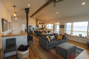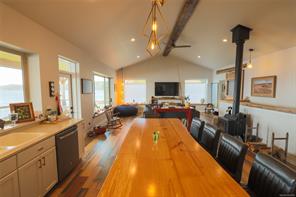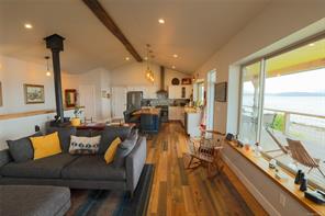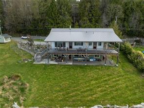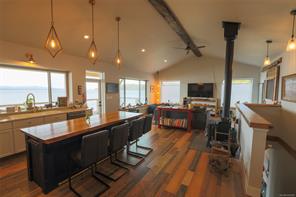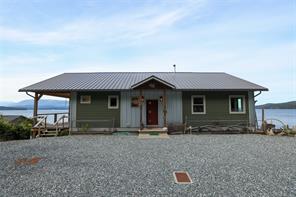 This rare waterfront gem sits on just under half an acre across a double lot, offering unobstructed south-facing ocean views. Built in 2019, the home blends modern design with rustic Sointula charm. The main level features a spacious entry, large laundry/mudroom, powder room, and an open-concept kitchen with a custom barn wood island and cozy woodstove in the living area. The primary suite includes a walk-in closet and 4-piece ensuite, plus a den and a wraparound covered deck to take in the views. The walkout basement is currently a gym, with plumbing in place for a kitchen—ideal for a future suite. A full bath and additional bedroom complete the lower level. A move-in-ready home or investment opportunity in a serene coastal setting.