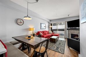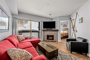 UPDATED, SLOPESIDE! Located in Deer Lodge, a true ski in/ski out complex, this cozy 2-bedroom, 2-bathroom condo has been wonderfully renovated. The interior updates include: vinyl plank flooring, newer furniture, appliances, fixtures, lighting, quartz countertops, ceramic backsplashes, rock surround on the fireplace, entry built ins and paint. The lock-off unit is north facing with plenty of natural light and views of the ski runs. Everything viewed in the unit is included in the price. The building features a large hot tub and easy access to the slopes. Each unit has one underground parking stall and a 7’x5′ private storage locker. Monthly strata fees of $761 include Wifi, cable, propane and hot water, snow removal plus regular strata expenses. This property is rented almost 100% of the time when not used by the owner. It is a short walk to the restaurants and hub of activities. GST is payable on top of the purchase price. Quick possession is available.