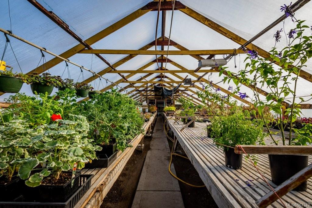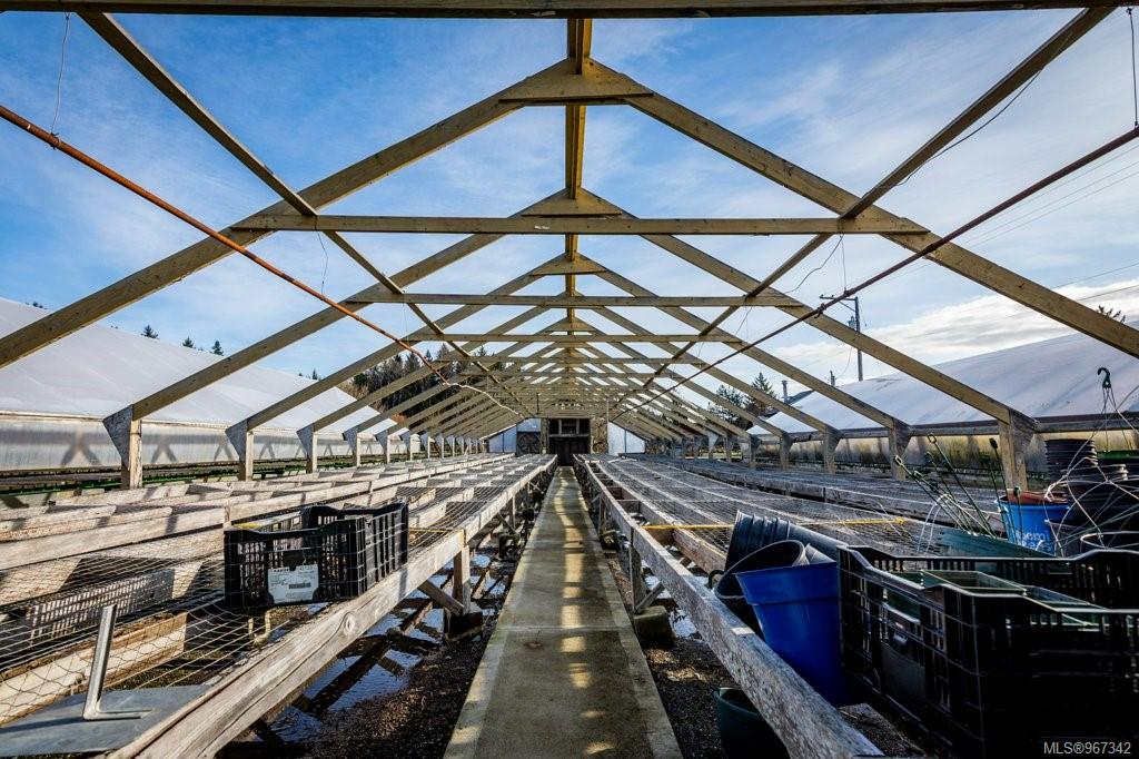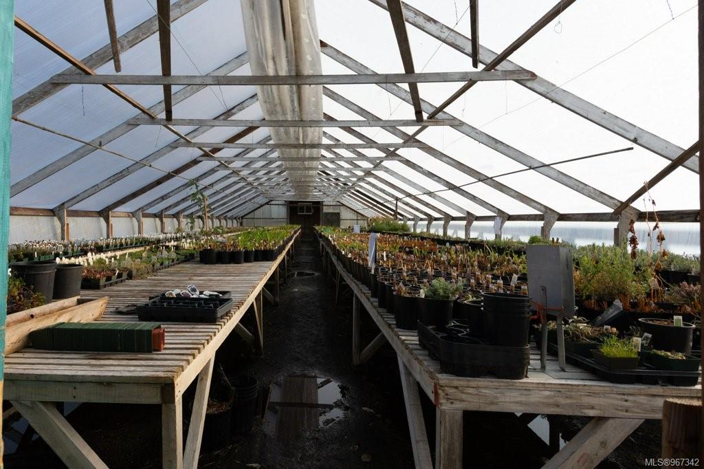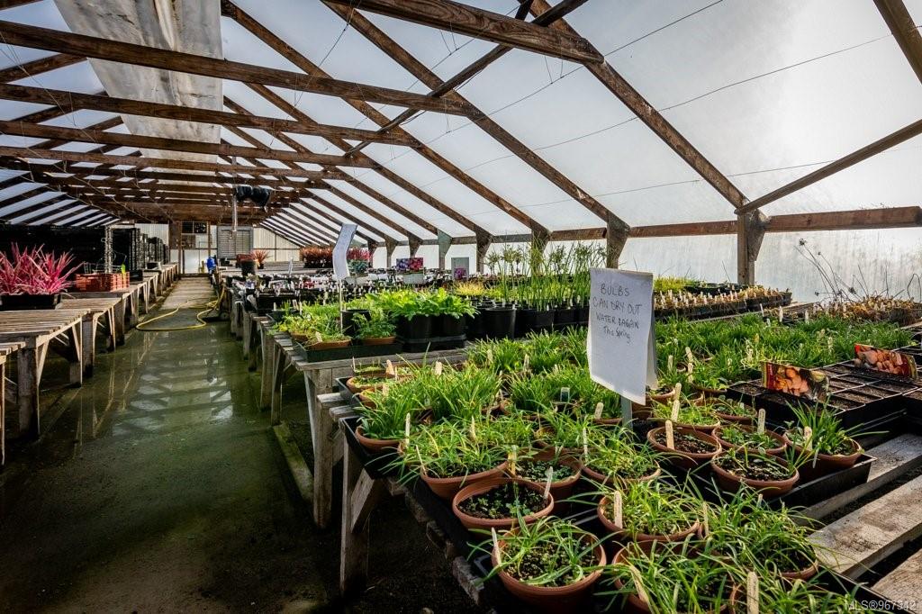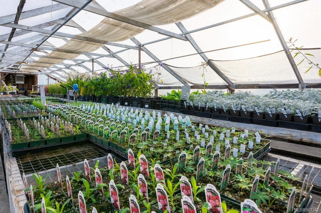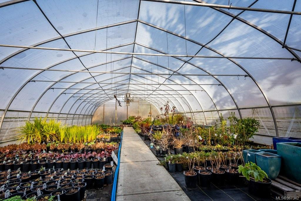 Work, live, and thrive with this well-established and flourishing nursery, perfectly situated in the heart of the Comox Peninsula. This incredible property spans two separately titled lots (20 and 18.48 acres), with the business and residence on the front parcel. The property features a spacious 2500+ sq ft residence, 16 greenhouses, a beloved therapeutic garden (leased), several outbuildings including a barn and shop area, and all the sales and operational areas of the nursery. Enjoy a high-quality and abundant water supply, sourced from an artesian spring and pond.