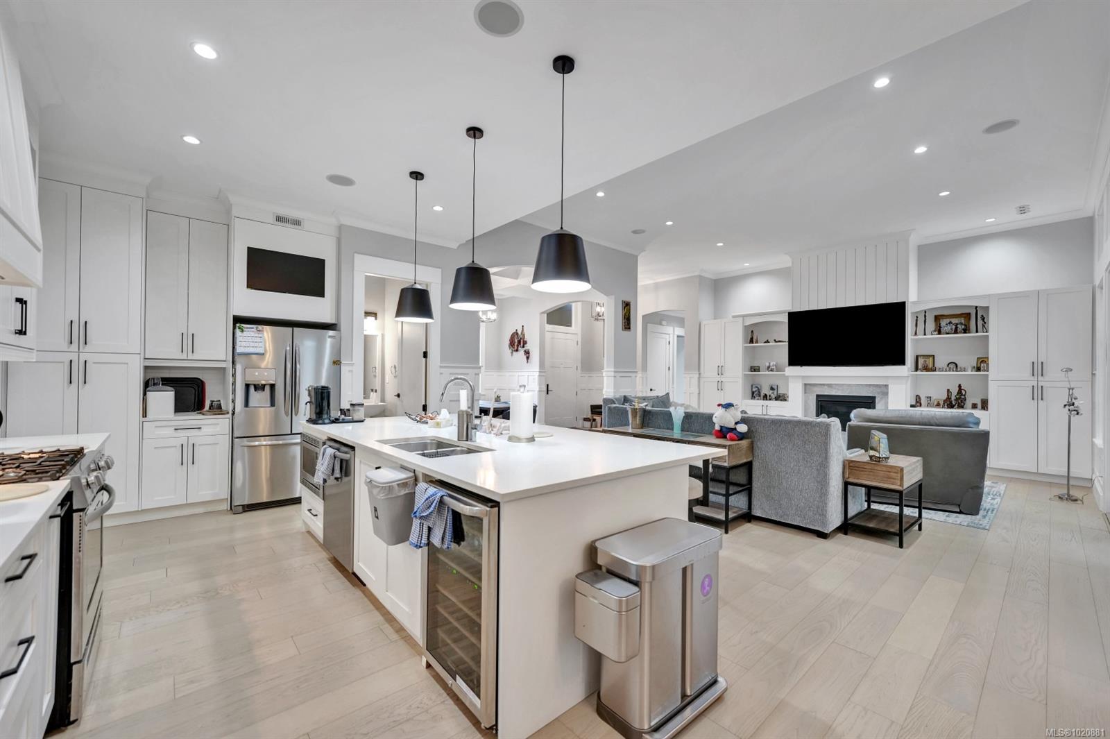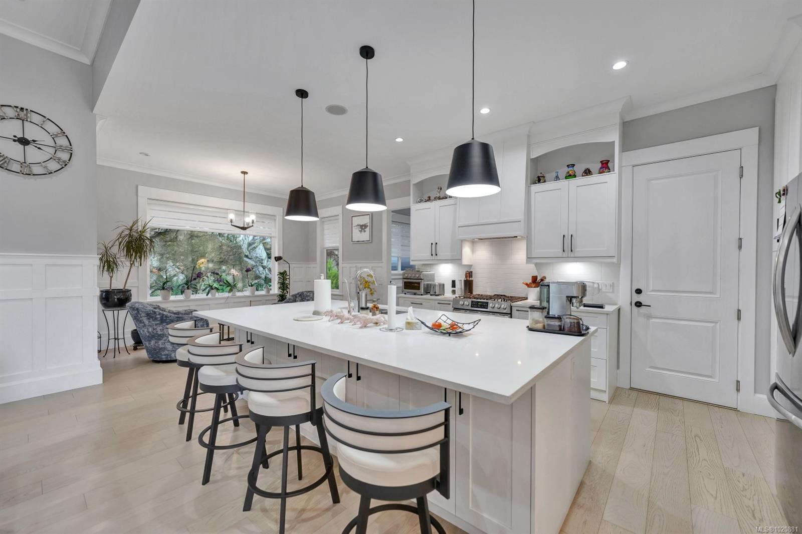 Elegant custom-built rancher in the prestigious Fairwinds Golf Resort community. Just 4–5 years old and still under new home warranty, this home showcases an open-concept design with high ceilings, crown moulding, built-in cabinetry, and a natural gas fireplace. The spacious kitchen features a large island, ideal for entertaining. Enjoy the private, low-maintenance backyard with natural rock landscaping. Triple-car garage plus RV parking with space for up to seven vehicles. Located on the desirable flat section of the golf course, walking distance to oceanfront parks with water access. Minutes from two marinas, the Fairwinds Golf Club, Wellness Centre, and scenic walking and biking trails. Experience luxury coastal living in one of Vancouver Island’s most sought-after communities. See the home in 3D virtual tour and book your private showing. All measurements are approximate and should be verified.