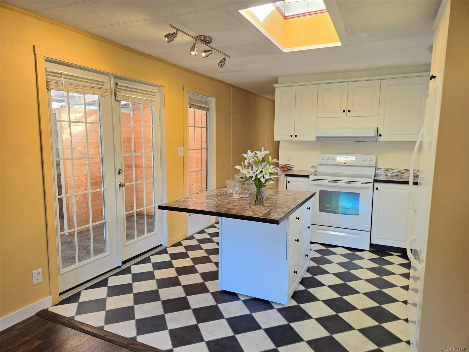 Great value in this well-located home in the sought-after Parksville Mobile Home Park. Just a short walk to the ocean and the sandy beaches of Rathtrevor and Craig Bay, this peaceful 55+ community offers the relaxed island lifestyle you’ve been looking for. This 2-bedroom home with a spacious den features an updated kitchen with an island, a bright living room with an electric fireplace, and a bathroom with a jetted tub and solid-surface countertops. Recent updates include a new furnace blower motor, new washer and dryer, and a completed electrical safety inspection. With some TLC, there’s excellent potential to add value. Outside offers a large covered deck, carport, two storage sheds, and a partially fenced, level lot in a quiet, treed area of the park. Move-in ready with room to make it your own.