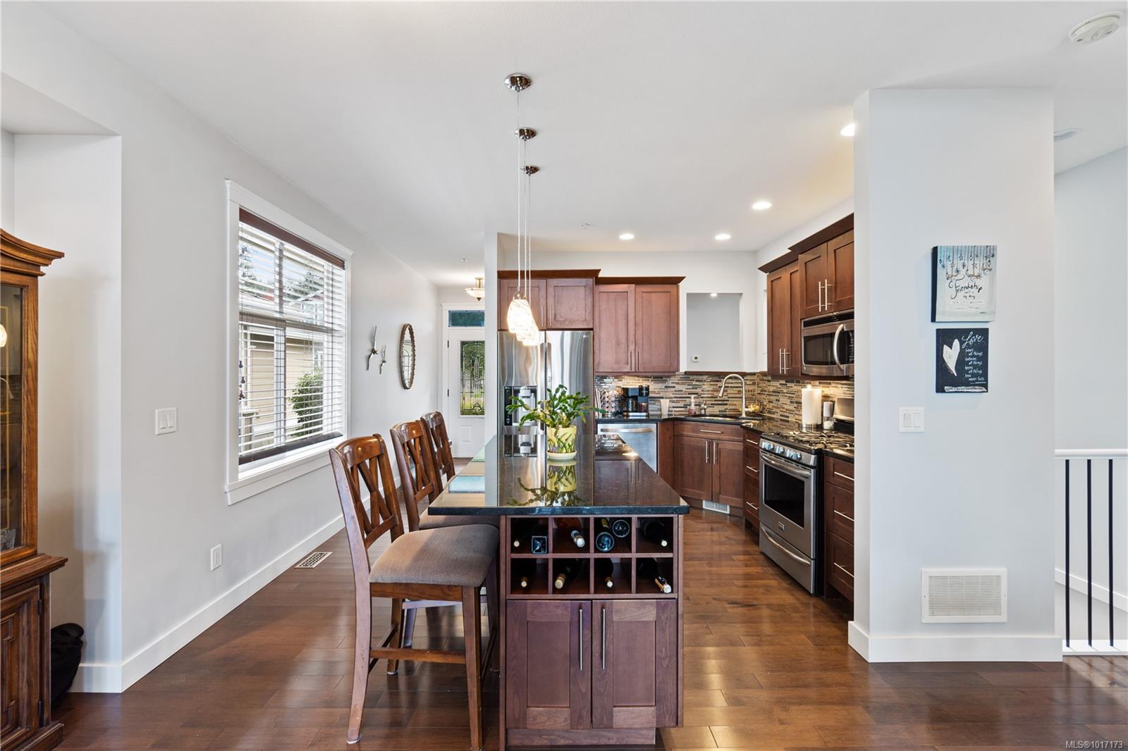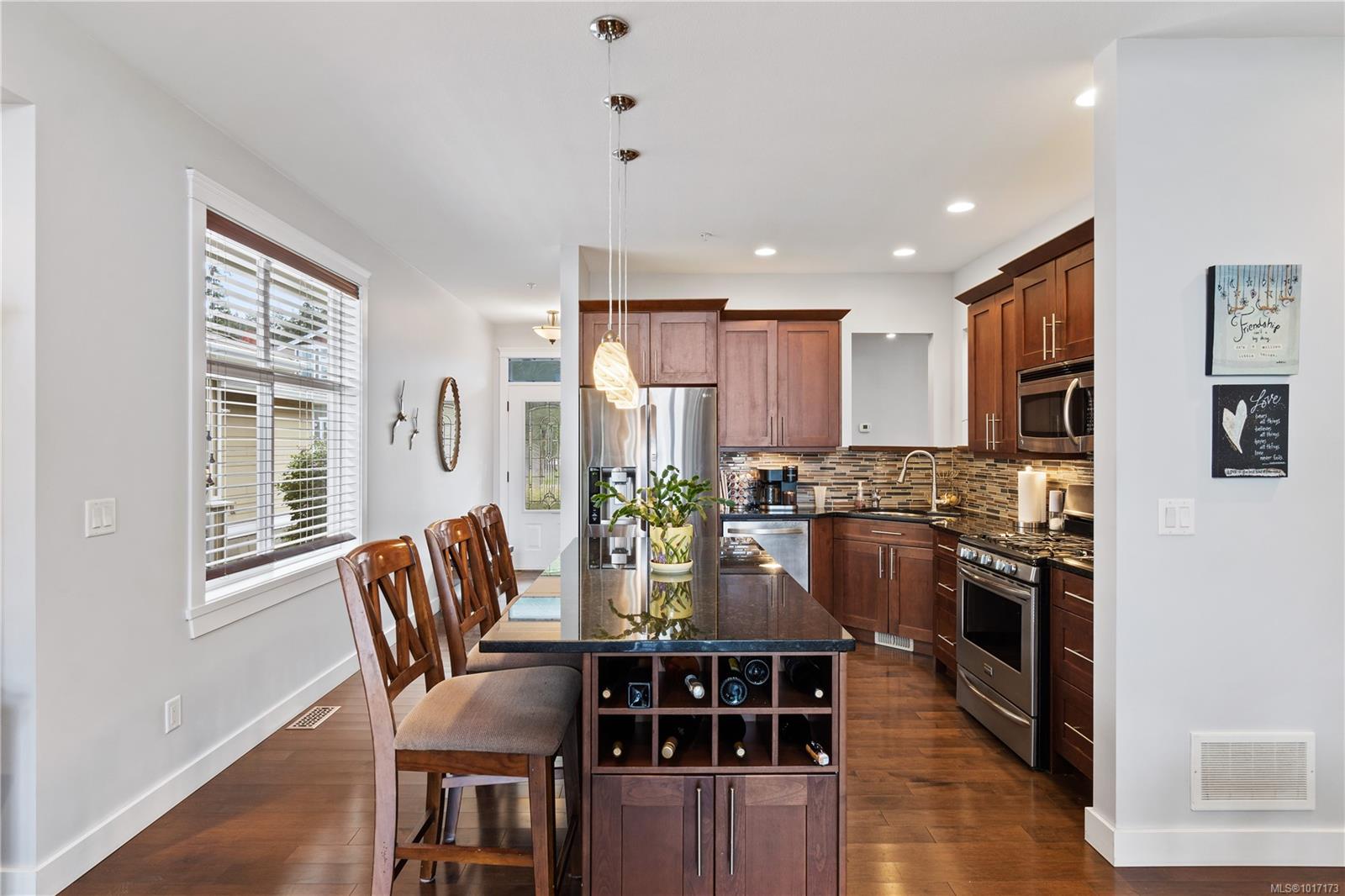 North Nanaimo, 6166 Arlin Place is a beautiful Level entry walk out basement offering 3 bedrooms, 3 bathrooms & den. This great location in North Nanaimo, walking distance to shopping and most amenities, 2043 sq/ft town-home is the perfect layout with Primary bedroom walk-in closet 5 piece ensuite and access to the deck on the main floor, Beautifully designed with open floor concept, with kitchen dining and living room, all tastefully done, Living room with gas fireplace, high ceilings & access to the upper deck, perfect for entertaining you will also find a den, a nice 2 piece bathroom, and laundry on this floor. The lower floor offers large family room with covered patio, 4-piece bathroom, two more bedrooms, a flex room for hobby or storage & access to the crawl space. The home has double garage plus driveway parking & visitor parking. Great location, great layout