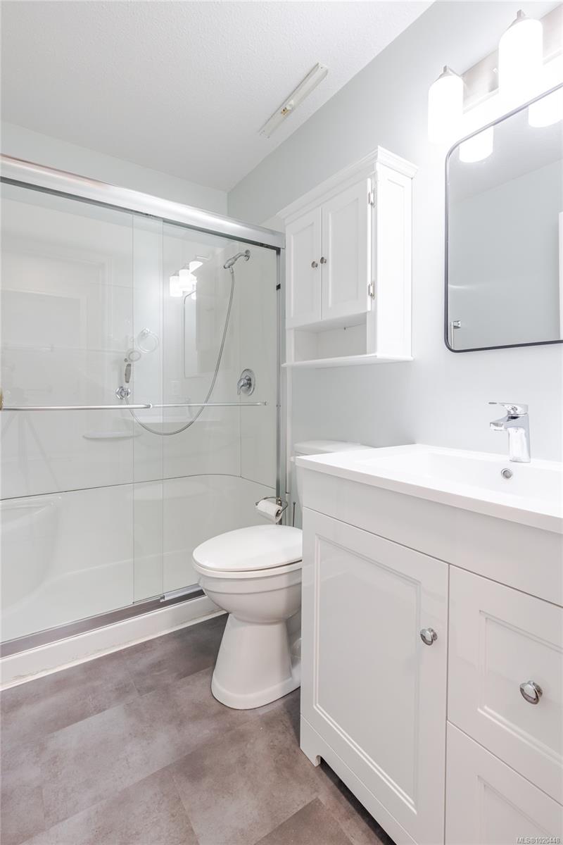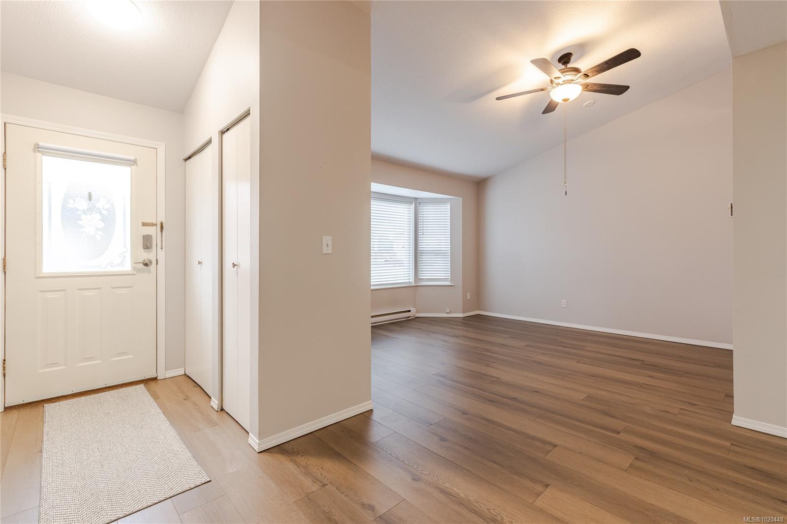 You’ll be impressed by this nicely updated patio home located in quiet Ashlar Place. This clean and bright two bedroom end unit features a good sized living area with vaulted ceiling, open eating area, newer kitchen and bathroom renovations and updated flooring throughout. There is a good sized laundry area and as a bonus the storage room has inside access that other units don’t have. A nice touch indeed. There is a covered rear patio area along the back with more storage in the outside shed which the seller says is the only one in the complex. There is a covered parking spot right beside the home with visitor parking in front. Overall this is a well maintained home in a quiet 55+ complex in a peaceful but central location