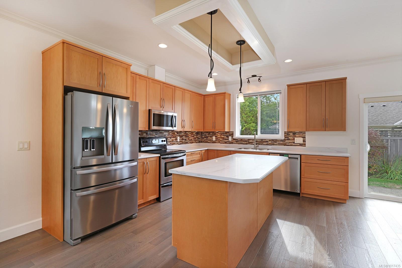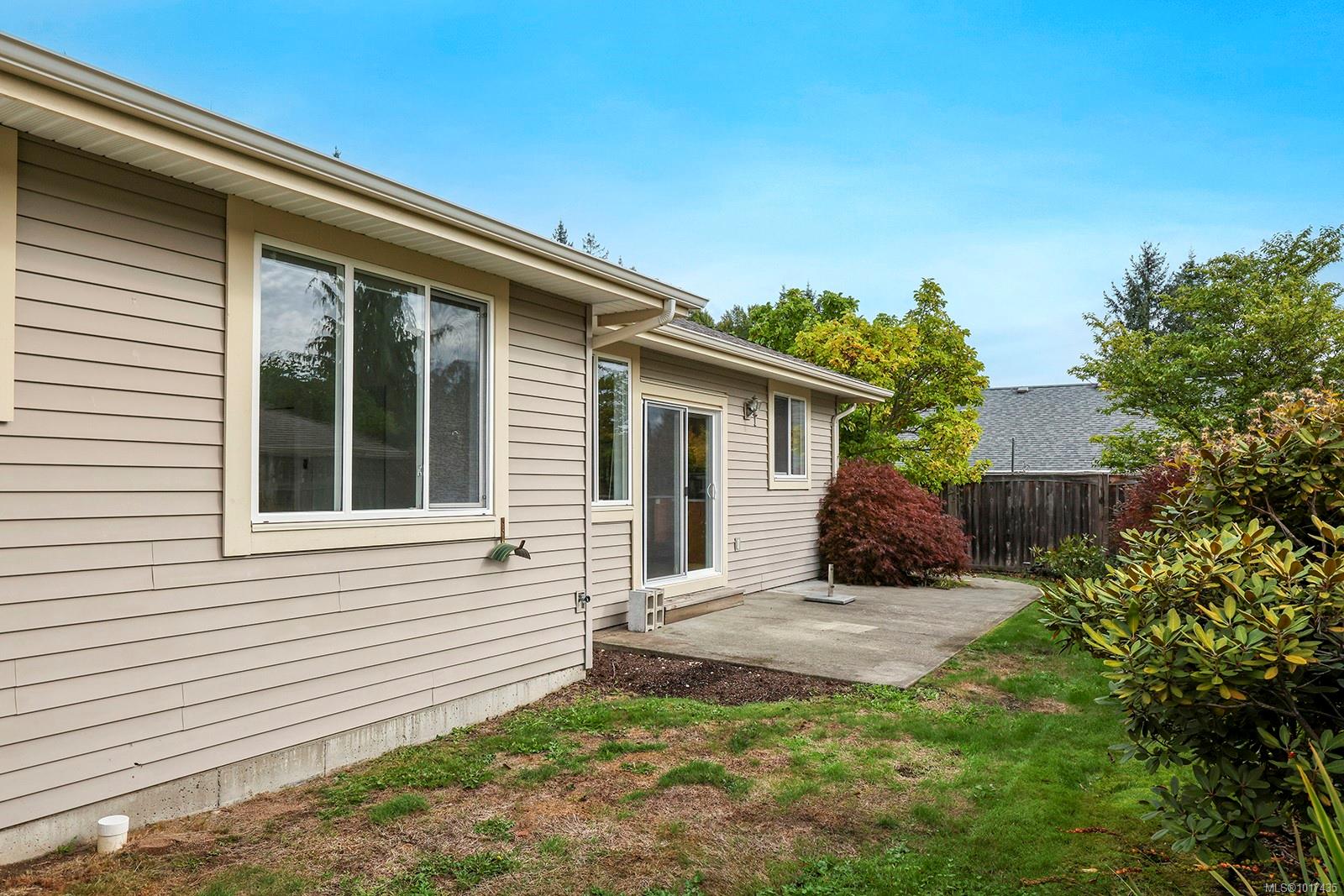 Well kept patio home close to amenities in Comox. This end unit, one level home, is south facing and flooded with natural light, and has extensive upgrades including hardwood and new carpet & paint, heat pump with air conditioning, extended patio and concrete pathway to the backyard, and a stunning ensuite bathroom renovation. Situated in the best location in the development, there is privacy, green space in the front, and a 21ft patio in the fully fenced backyard, plus a double garage and storage shed. This patio home offers tremendous value in today’s market, is move in ready, and walking distance to the grocery store and recreation.