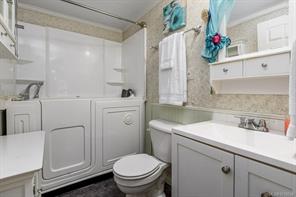 Welcome to Queneesh Mobile Park, a desirable 55+ community located on the K’omoks First Nation, minutes from all amenities. This is a rare opportunity to move into this gem of a park with it’s spacious yard there is tons of room to garden and entertain in your back yard oasis. This smart looking doublewide home offers a bright, open concept layout with a newer mini split heat pump and three bedrooms including a spacious primary with walk in closet and its own ensuite. The second bathroom is equipped with a step in bath tub / shower unit to make for a perfect aging in space scenario. Lots of character and charm throughout this dwelling. Outside, you will find plenty of drive way space for your RV, an attached workshop and even a separate single car garage. Spend time on your spacious, covered front deck. The park is a welcoming place for animal lovers allowing one small dog or cat. And the best part of all? An affordable, comfortable, private home in beautiful Comox by the Sea!