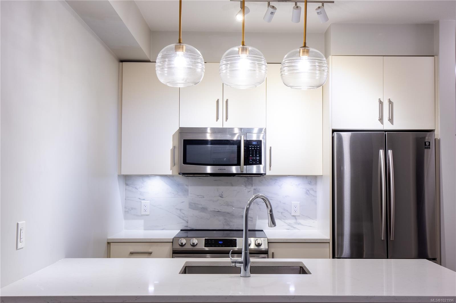 Welcome to modern coastal living at 212-20 Barsby Avenue. This thoughtfully designed one bedroom one bathroom condo offers 512 square feet of efficient and stylish living space in a contemporary building completed in 2021. Inside you will find a clean modern aesthetic featuring stainless steel appliances, quartz countertops and a smart open concept layout that maximizes every inch of space. Ideal for first time buyers, investors or anyone seeking a low maintenance lifestyle close to the city core. An EV car share program adds everyday convenience and flexibility. The location is exceptional with close proximity to downtown Nanaimo, the waterfront, seawall, seaplanes and the Hullo foot passenger ferry offering easy access to downtown Vancouver. Whether you are commuting working, remotely or enjoying the walkable urban setting this condo delivers comfort and convenience. Offered at $314,900 this is an excellent opportunity to own a nearly new home in a vibrant and growing neighbourhood.