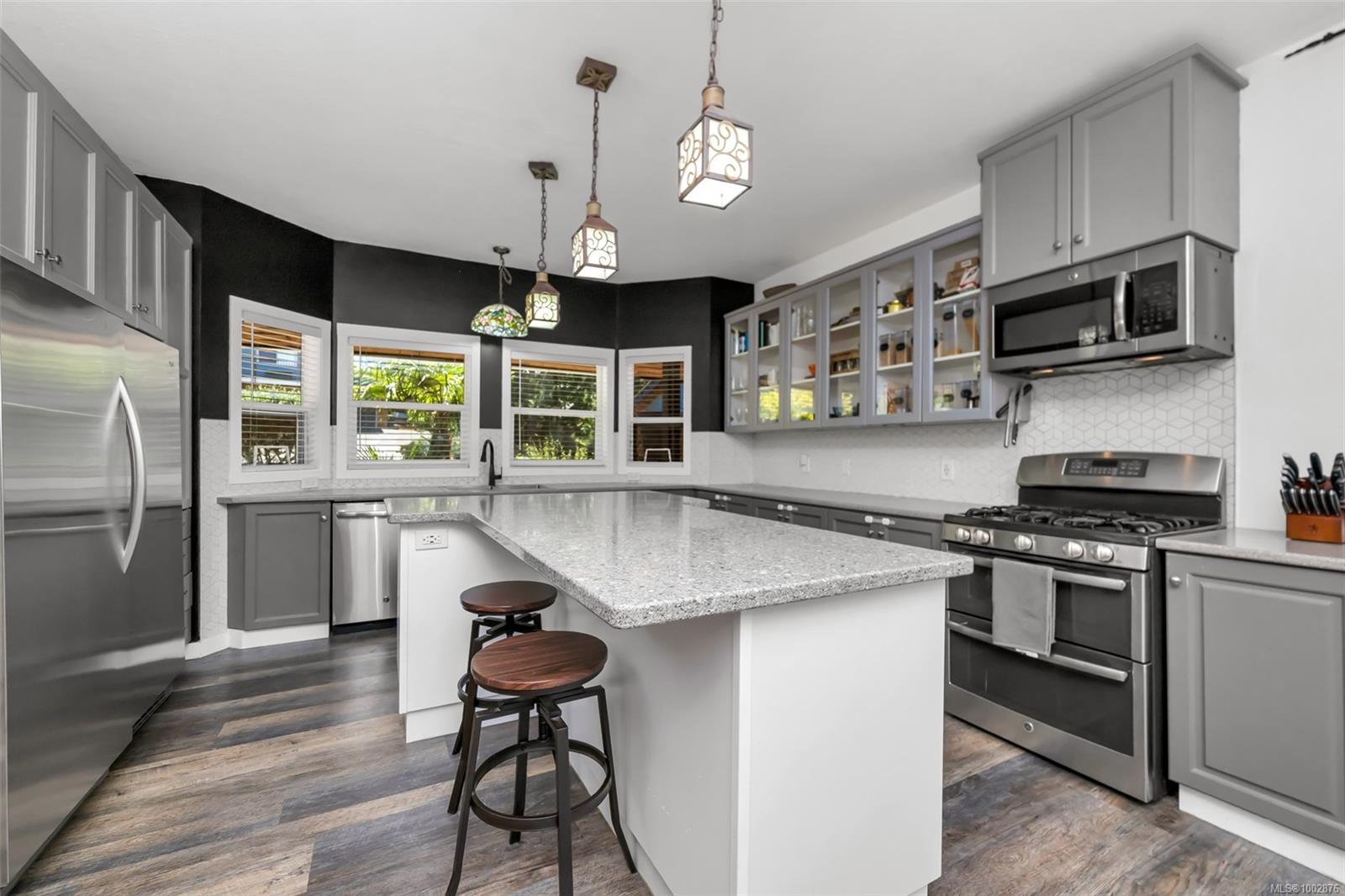 This delightful 3-level home has it all. Whether you are an avid gardener, chef, or love to entertain, this could be the home for you & your family. In addition to an abundance of living space, this home has a separate garage & a workshop for your hobbies. The main level entry leads into the home where you will find a large kitchen with a full-size side by side fridge & freezer, gas range, large island, & dining area leading out to a lovely private deck. A large living room & a bathroom complete the main level. Upstairs, you will find 3 large bedrooms and two additional bathrooms. The primary bedroom boasts a walk-in closet & an ensuite that has a stacking washer and dryer, a soaker tub, & a large shower. A deck wraps almost the entirety of the home, where you can relax and take in the views. Downstairs, you will find an unfinished basement, laundry area & 1 finished room/office. With a separate entrance & R3 zoning, there is suite potential (buyer to verify with North Cowichan).