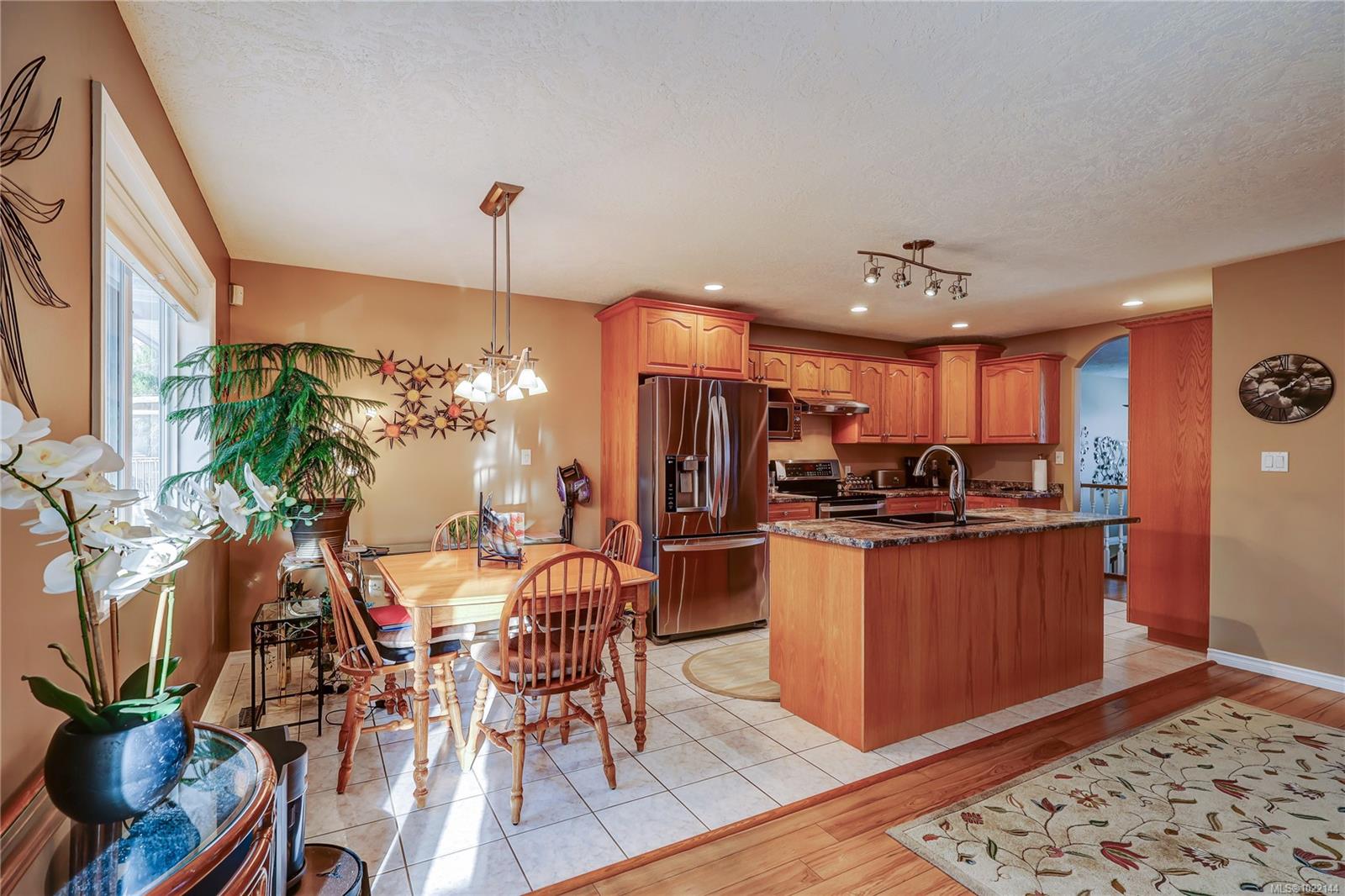 This is a prime opportunity to acquire a spacious 6-bedroom family home at 6169 Brickyard Road, nestled in the highly sought-after North Nanaimo. Built in 2003, this home has been recently upgraded for modern efficiency, featuring a brand new furnace, heat pump, and water heater for comfort and peace of mind. The main floor offers bright, welcoming spaces, including a living room with a vaulted ceiling and a family room adjacent to the kitchen with a cozy fireplace. The total of six bedrooms includes a generous, 2-bedroom suite on the lower level, providing an excellent mortgage helper or accommodation for extended family. The property boasts a fully fenced yard, as well as an oversized area for RV parking. Located for an ideal quality of life, this home is conveniently close to excellent schools, minutes away from major shopping at Woodgrove Centre, and near numerous recreation options including Oliver Woods Community Centre and the stunning waterfront at Piper’s Lagoon.
