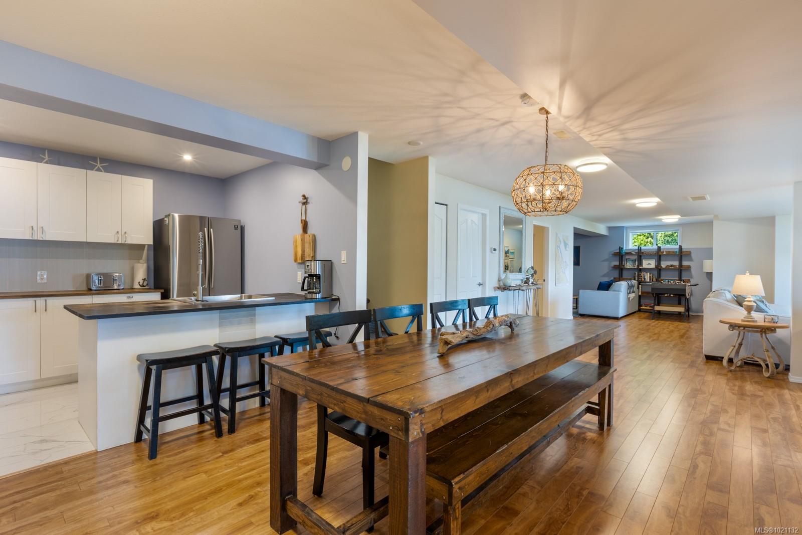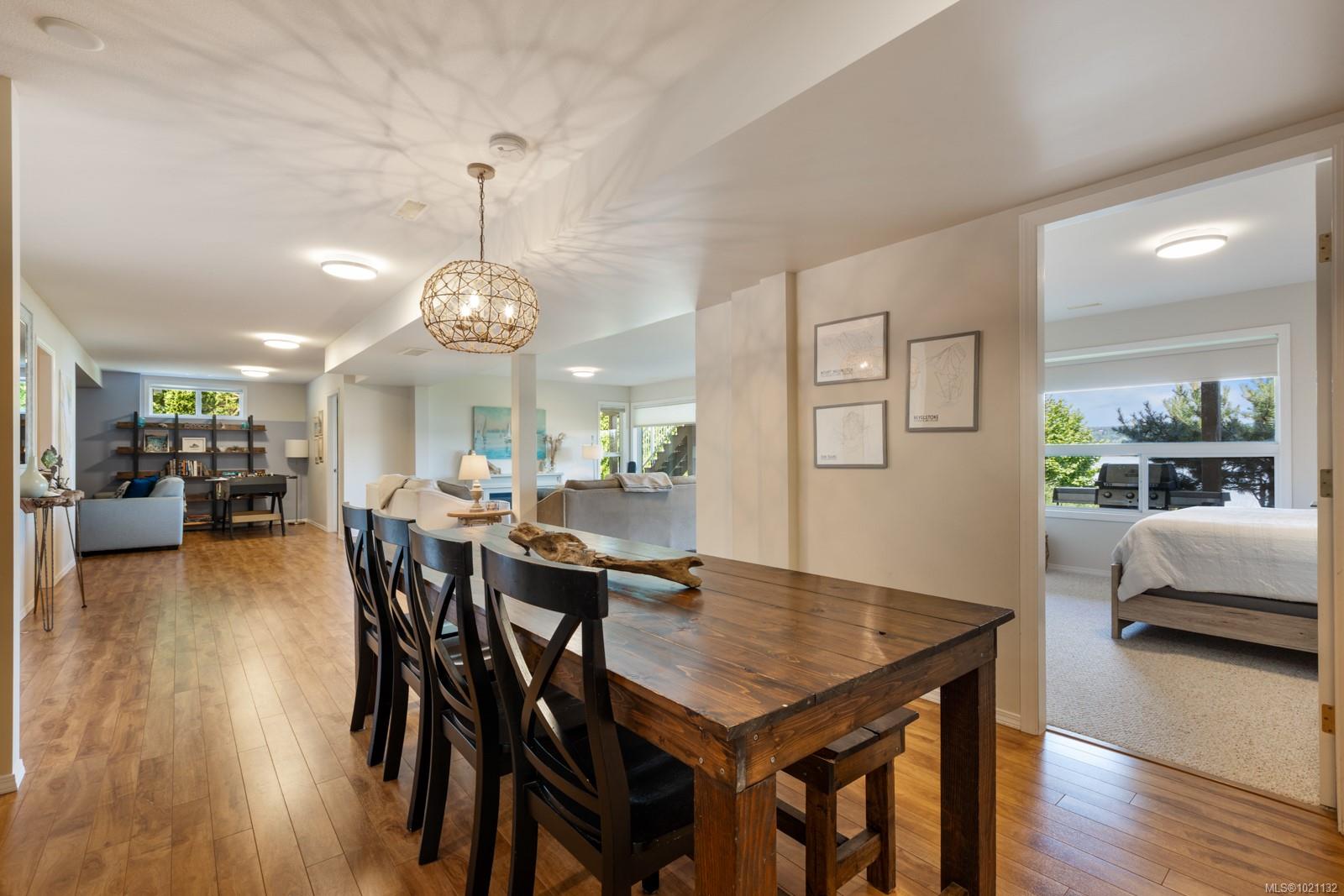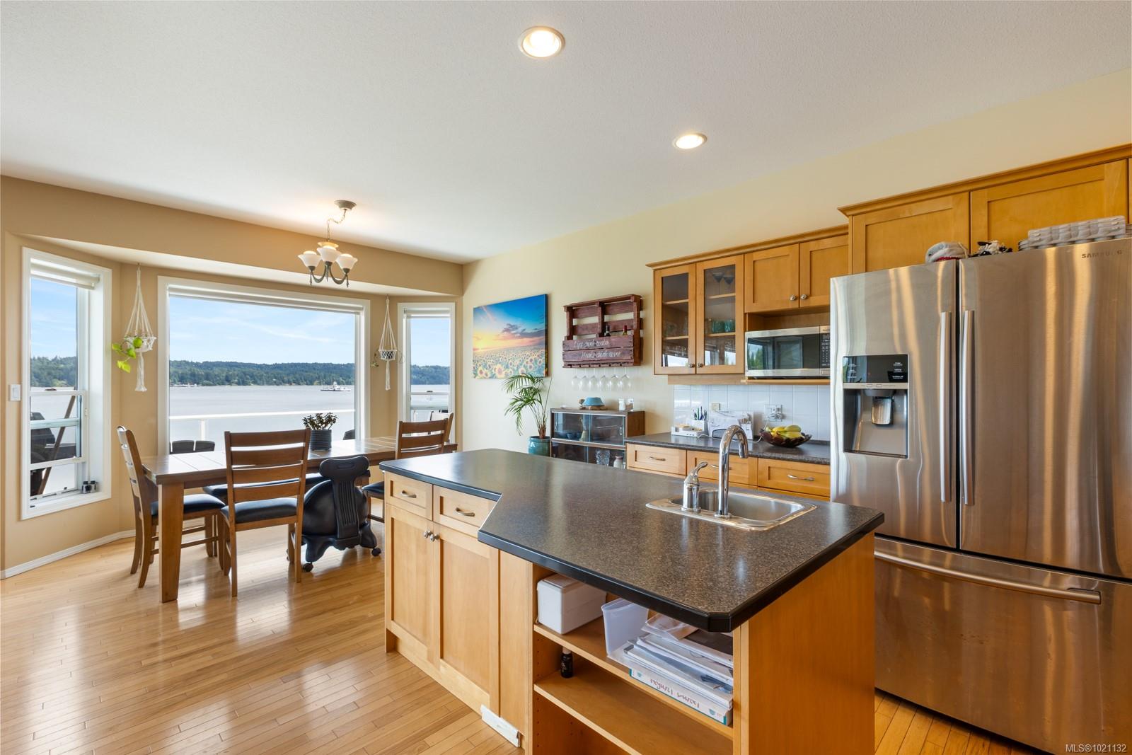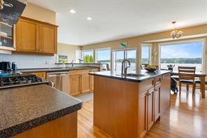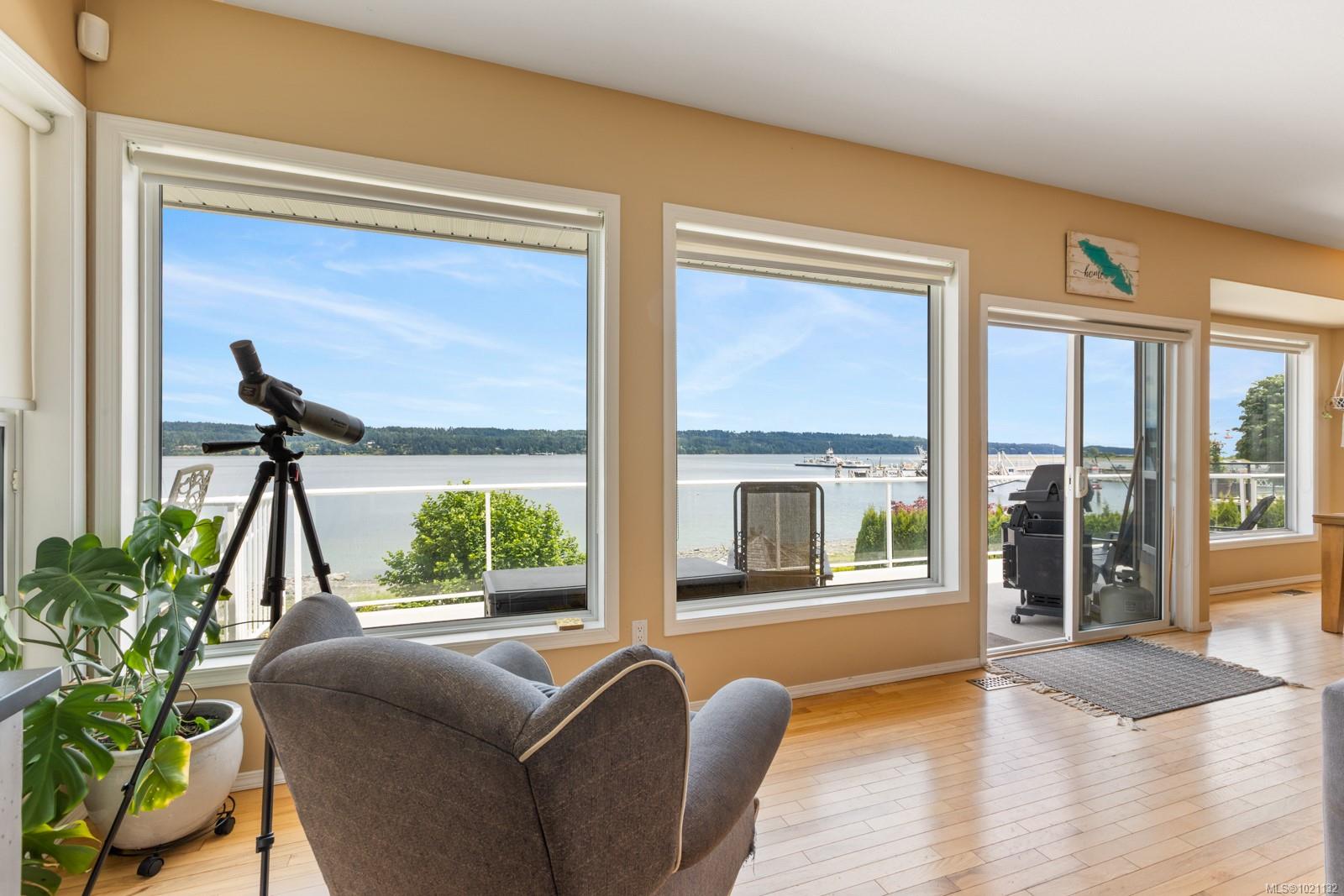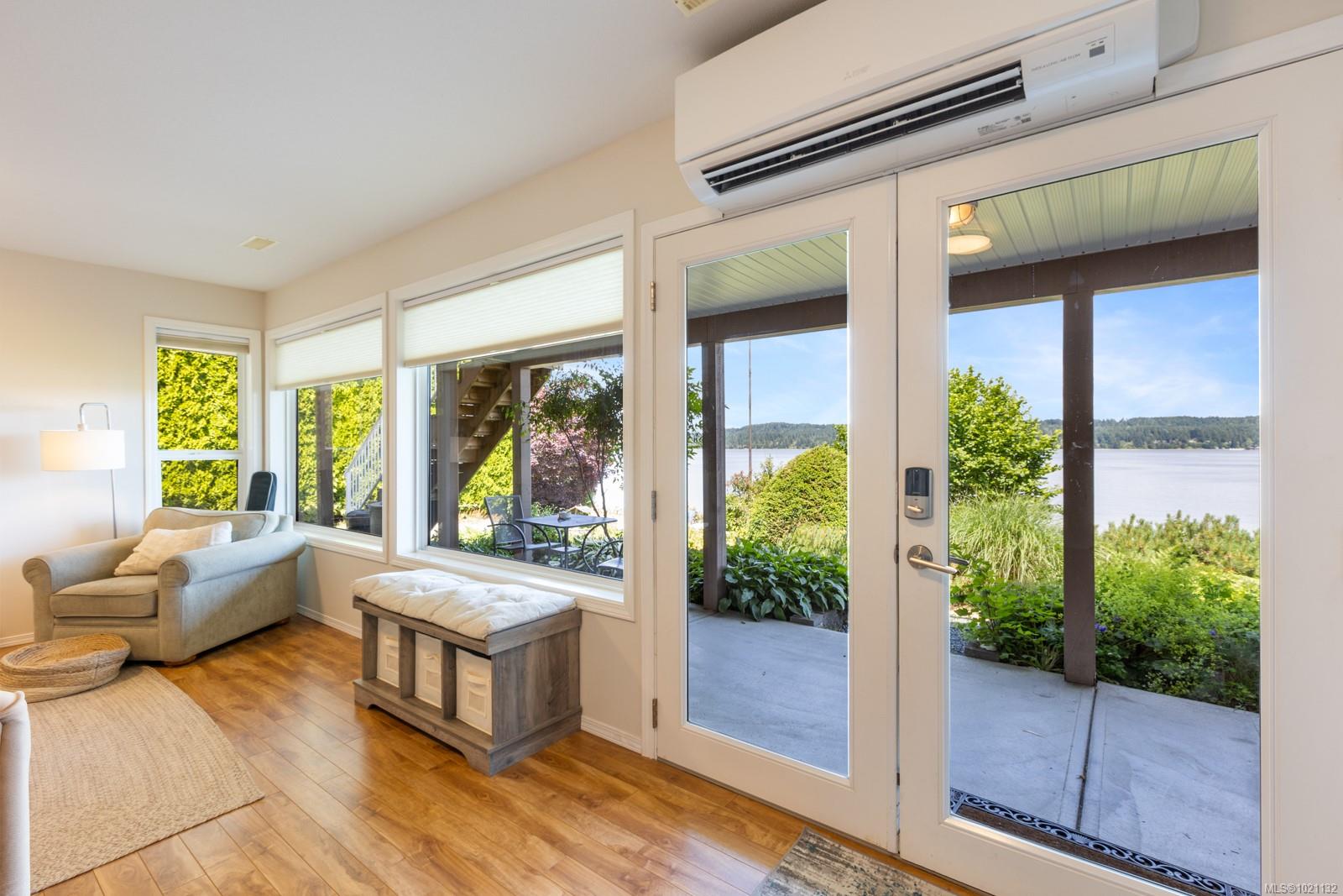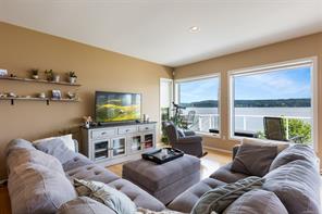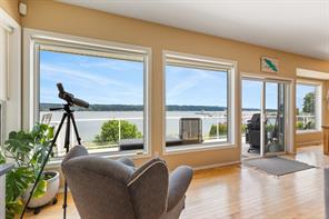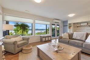 This stunning 5-bed, 3-bath home boasts over 3,600 sq ft of beautifully finished living space, thoughtfully designed to showcase sweeping ocean views from both levels. With walk-on beach access and a gently sloped driveway reaching the high tide line, launching a kayak or heading out for a shoreline stroll is effortless. From the moment you enter, the vistas steal the show. The bright, open-concept main floor features expansive windows, a propane fireplace, and easy flow to the oceanfront deck. The kitchen is built for entertaining, offering a large island, prep sink, raised eating bar, and convenient roll-out shelving. The private primary suite sits in the south wing, while two additional bedrooms and a full bath occupy the opposite side. The walk-out lower level adds two bedrooms, a full bath, office, & a generous rec room, ideal for guests, media, or hobbies. Outdoors, enjoy the beautifully landscaped yard with a gazebo, and unwind in the hot tub while soaking in the coastal views.
