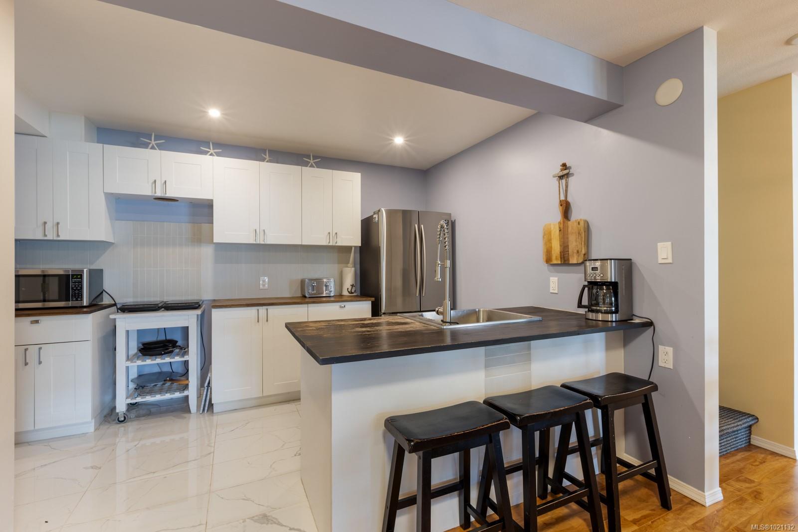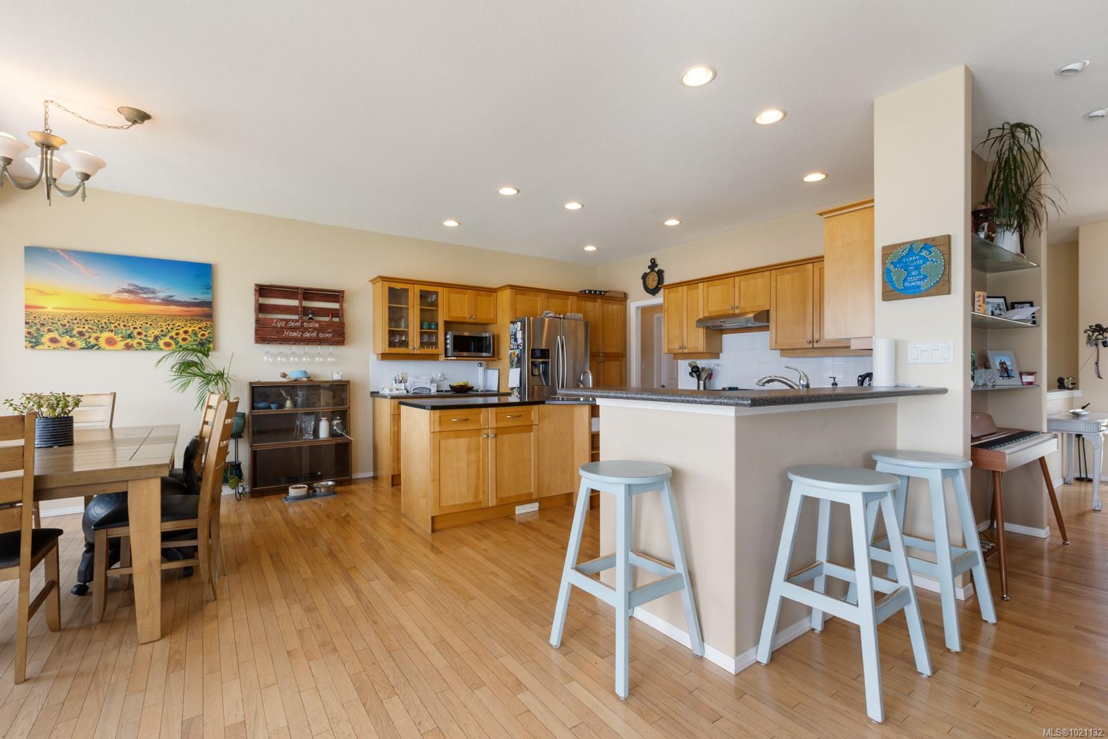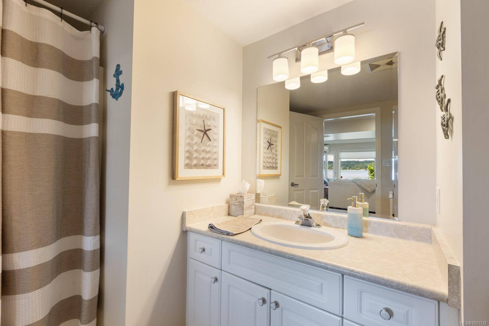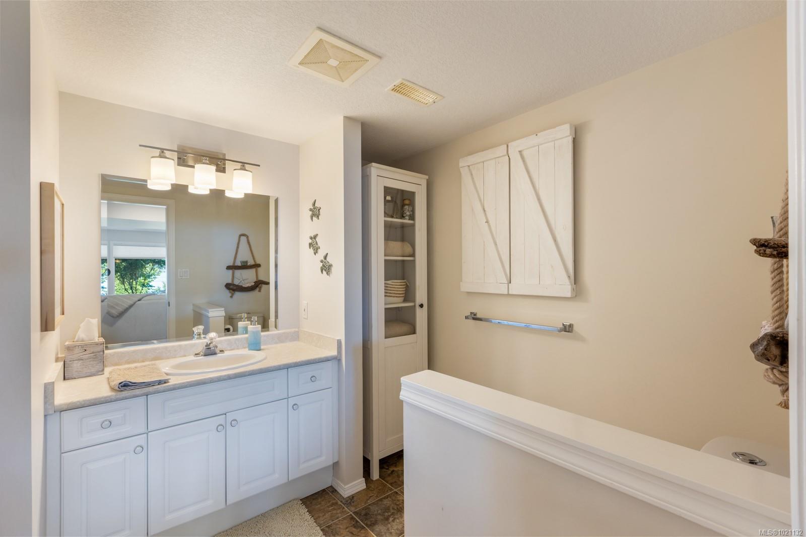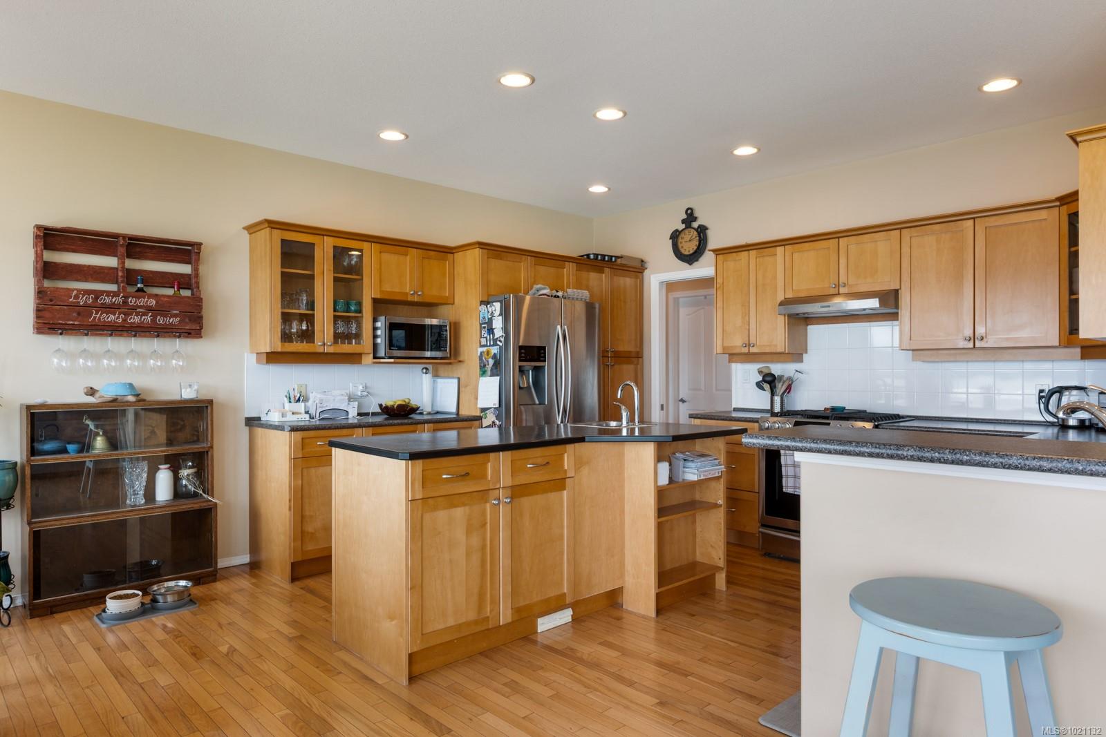 This stunning 5-bed, 3-bath home boasts over 3,600 sq ft of beautifully finished living space, thoughtfully designed to showcase sweeping ocean views from both levels. With walk-on beach access and a gently sloped driveway reaching the high tide line, launching a kayak or heading out for a shoreline stroll is effortless. From the moment you enter, the vistas steal the show. The bright, open-concept main floor features expansive windows, a propane fireplace, and easy flow to the oceanfront deck. The kitchen is built for entertaining, offering a large island, prep sink, raised eating bar, and convenient roll-out shelving. The private primary suite sits in the south wing, while two additional bedrooms and a full bath occupy the opposite side. The walk-out lower level adds two bedrooms, a full bath, office, & a generous rec room, ideal for guests, media, or hobbies. Outdoors, enjoy the beautifully landscaped yard with a gazebo, and unwind in the hot tub while soaking in the coastal views.