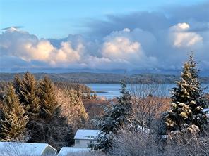 Tastefully updated 3-bedroom + bonus room, 2-bathroom home with stunning ocean and mountain views. Enjoy sunsets year-round from the covered deck. Renovated 6 years ago with quality materials, plus new kitchen, deck and stairs (2025), and a 4-year old roof. The main floor features a spacious rec room with built-in bar, 3 piece bath, den, laundry and a workshop/storage room. Upstairs offers 3 bedrooms and a 4-piece bath with heated tile floors and double sink Vanity. Fireplace-ready and includes a hardwired 8 kw generator for backup power. Wiring behind mantle ready for wall-mounted TV. Some original windows remain, offering potential for future upgrades. The private, low-maintenance yard is partially fenced and bordered by a mature privacy hedge. Located in a quiet neighbourhood, close to North Island outdoor recreation. A move-in-ready home with comfort, function and West Coast charm.