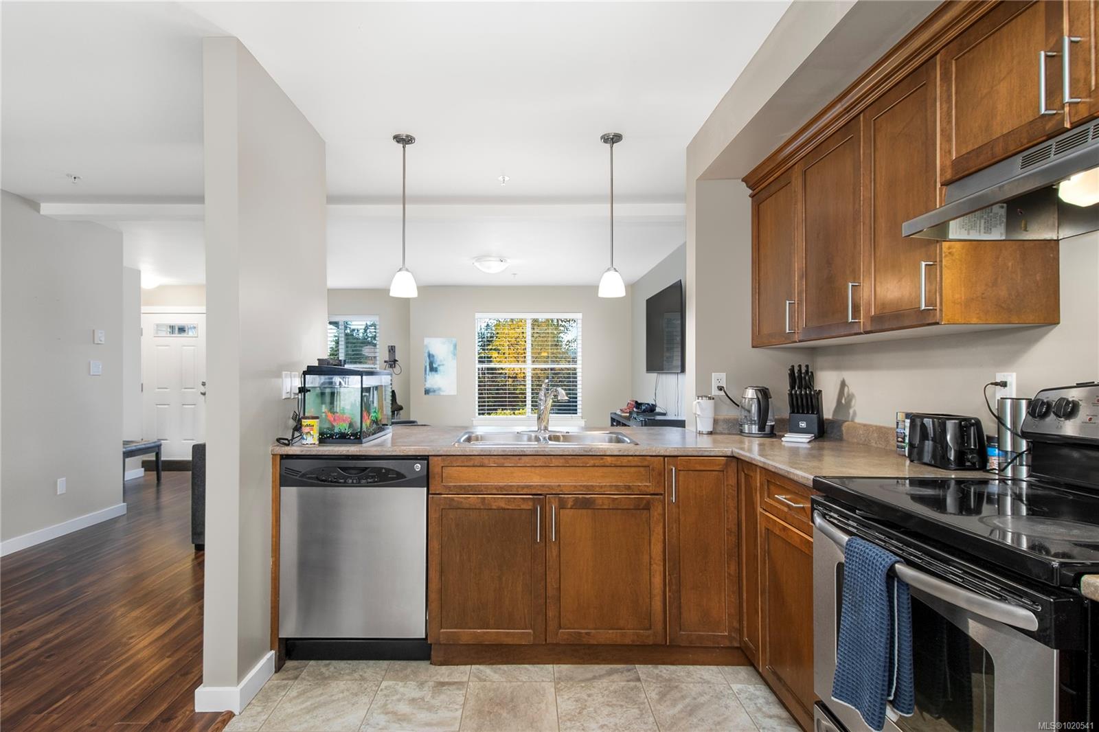 Welcome to this beautifully designed two-storey townhome in a charming four-unit strata complex. This bright and spacious home offers three bedrooms and three bathrooms, including a large primary suite with a full ensuite and walk-in closet. The main level features a generous open-concept layout with a stylish kitchen showcasing stainless-steel appliances, bar seating, and pendant light. Perfect for entertaining, the kitchen flows effortlessly into the dining and living areas, while large windows fill the space with natural light.