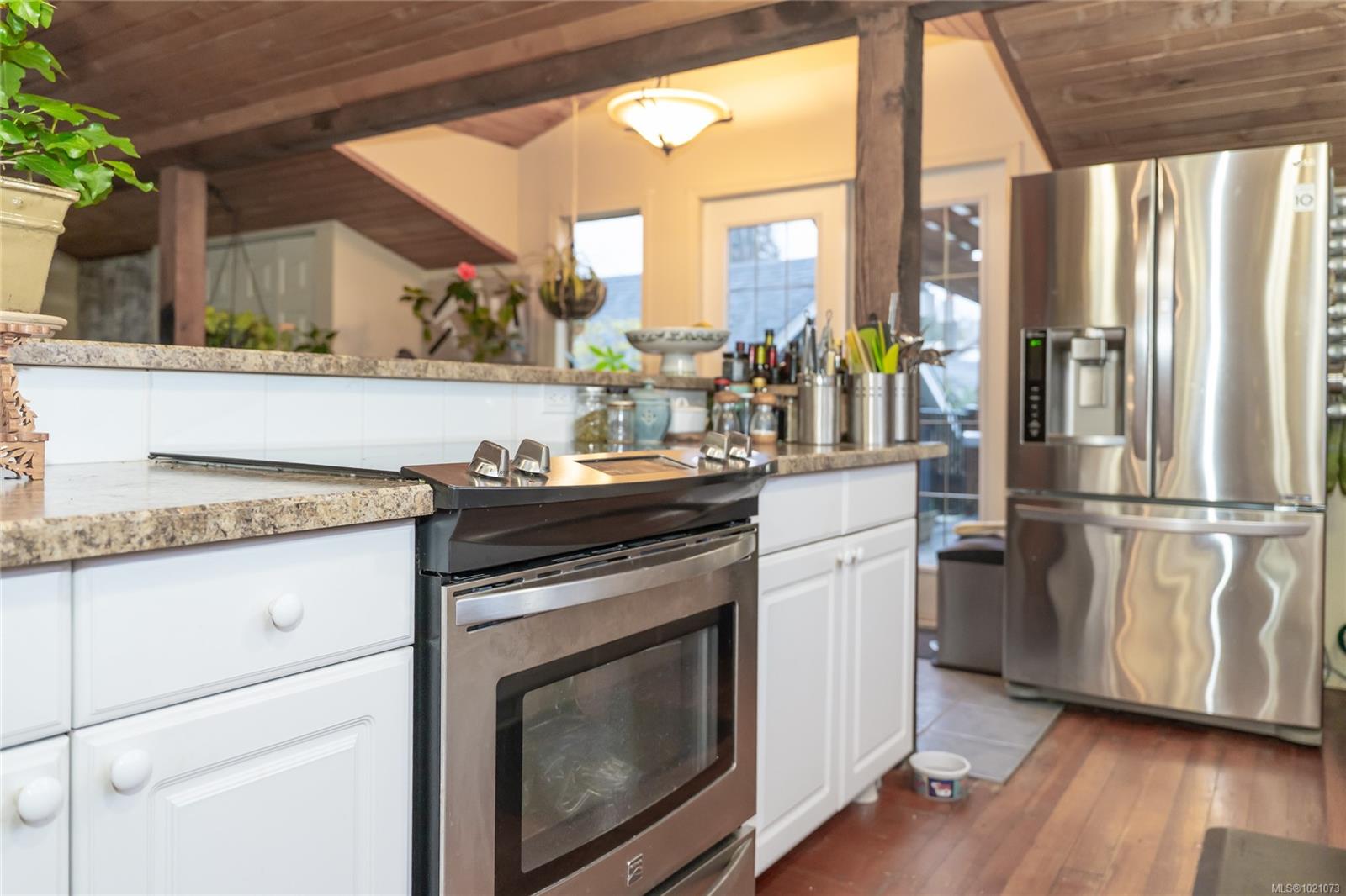 Warm and inviting West Coast home in one of Chemainus’ most desirable neighbourhoods. Set on a generous lot with beautiful ocean views, this property offers comfort and privacy. The bright, open main level features large windows filling the home with natural light. The living and dining areas flow together, creating a welcoming space. The kitchen is well laid out. The bedrooms are comfortable and filled with soft light, offering quiet retreats. The fenced yard provides opportunities for gardening or outdoor entertaining. Two driveways offer parking for up to four vehicles. Large double garage for hobbies and storage. Home features an on-demand hot water system and a 5-year-old furnace. This home is funky and functional with a large ground-level entry space that can be used for a studio or revenue potential. Located near the beach, shops, schools, and downtown Chemainus. Enjoy the charm of a small coastal community. Measurements are approximate and should be verified by the buyer.