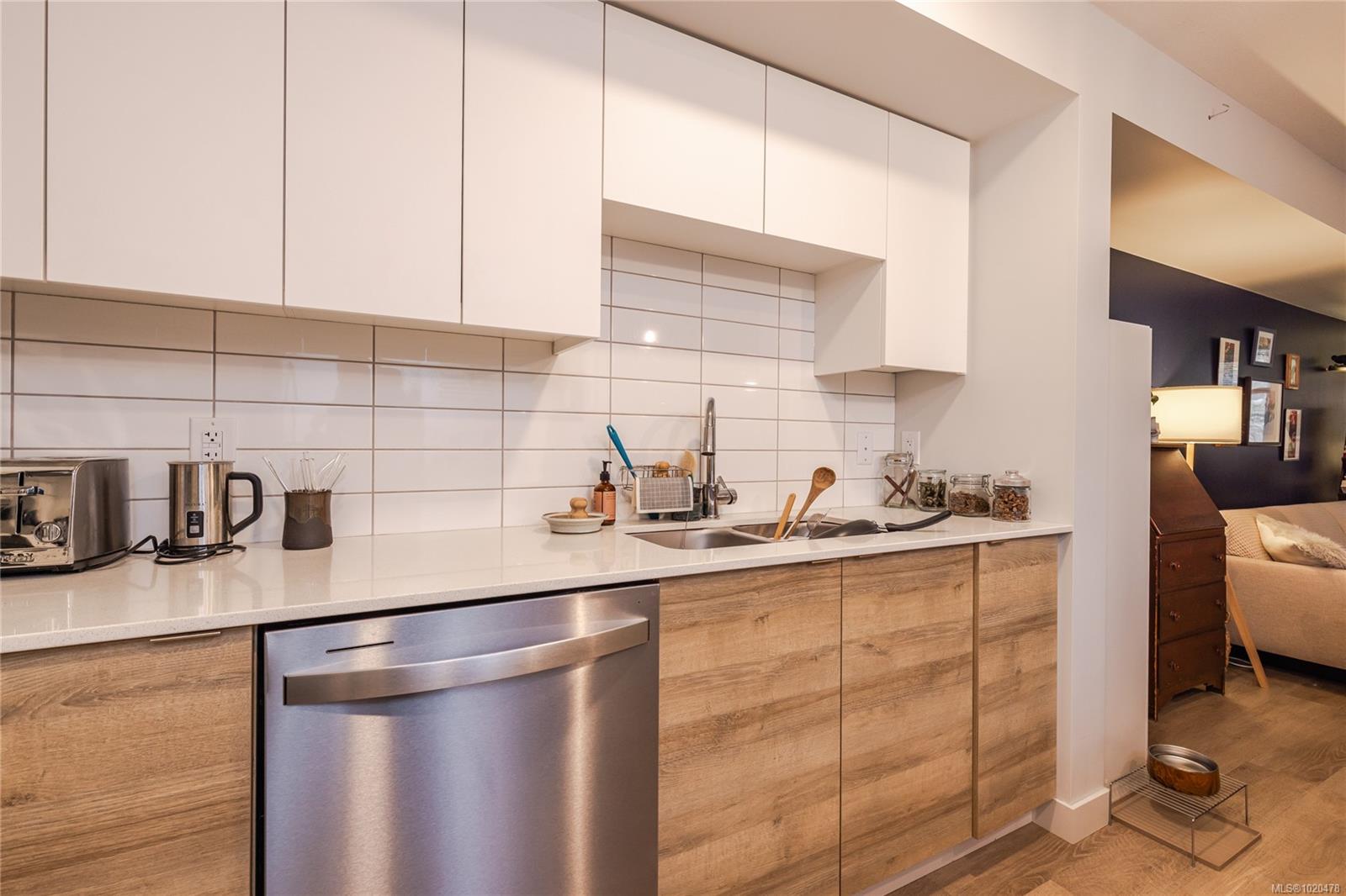 Hers’s a modern 1 bedroom 1 bath ground level condominium with its own private entrance off the patio. Offering a large open living area with high ceilings, a beautiful kitchen with quartz countertops and high end cabinetry, spacious bedroom and in-suite laundry. Lakeside Terraces is a Built Green community featuring triple pane windows, solar panels, HRV system and LED lighting. There is secure underground parking with bike storage and EV capability. The complex also features a large amenity building with a gorgeous lounge, games room, kitchen, gymnasium and even a yoga room. Overall this is a well built complex and just a short walk to Long Lake and North Town Center.