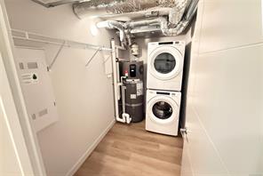 Just Listed! 2 bdrm condo on the rear of the building (facing trees/lake). No elevator required from lobby. This south-facing spacious modern space includes an open living/dining/kitchen with island/breakfast bar, leg walk-in closets in both bedrooms, a sizeable storage/utillity room, and a dedicated underground parking stall. Built in 2022 , this enviro-friendly building includes rooftop solar pads, high efficiency heating, and low-impact landscaping. Also included is access to the clubhouse that includes rec centre, gym, lounge, yoga rooms, outdoor patios, and more. Pet friendly. Rental friendly. Walking distance to North Town Centre (“Rutherford Mall”). Long Lake, bus routes, walking trails, theatres, restaurants and cafes, and city recreational facilities. Vacant. Immediate Possession possible. Shows like new. Make an appointment to view today!