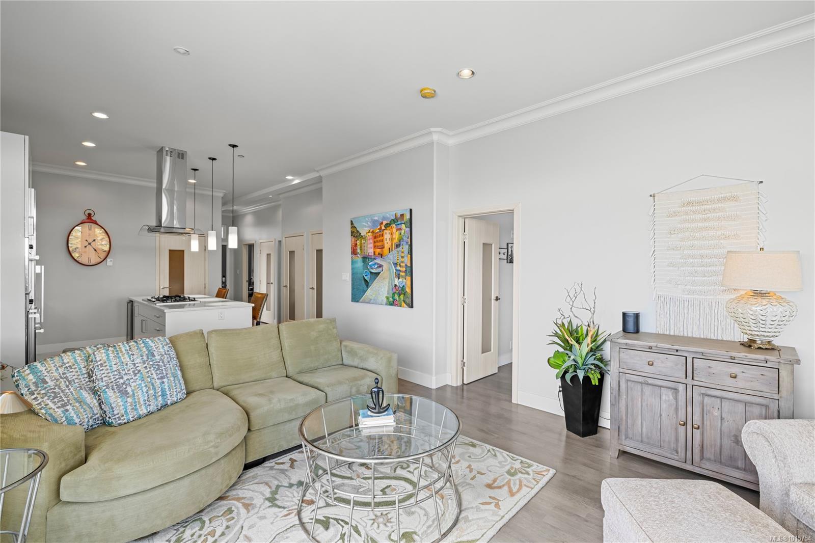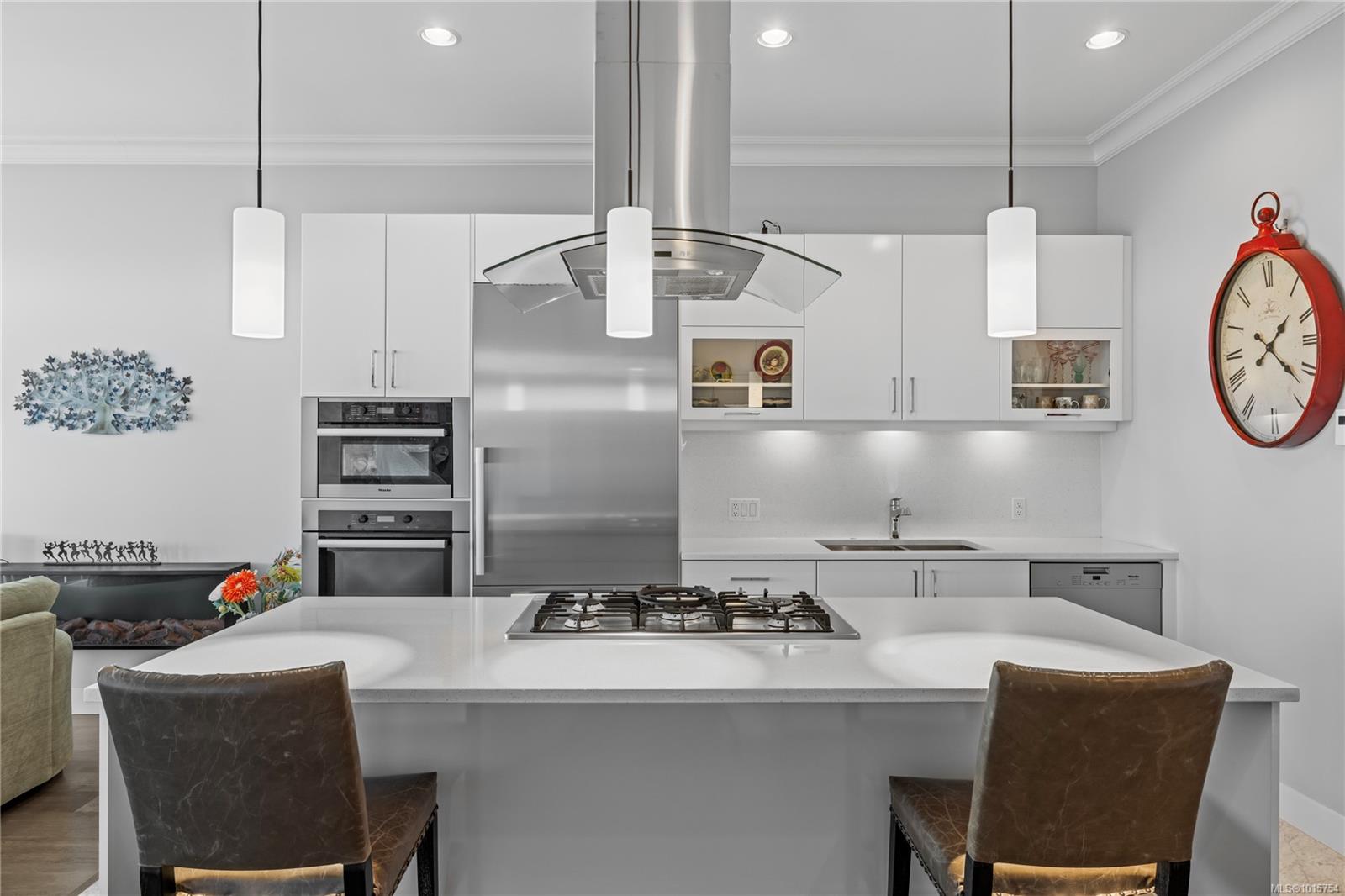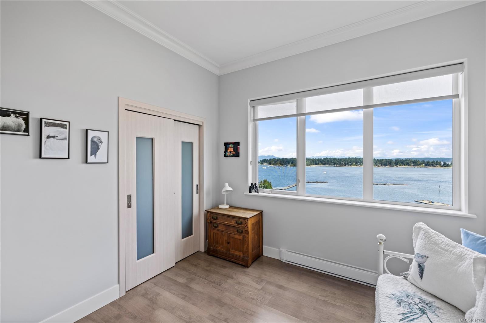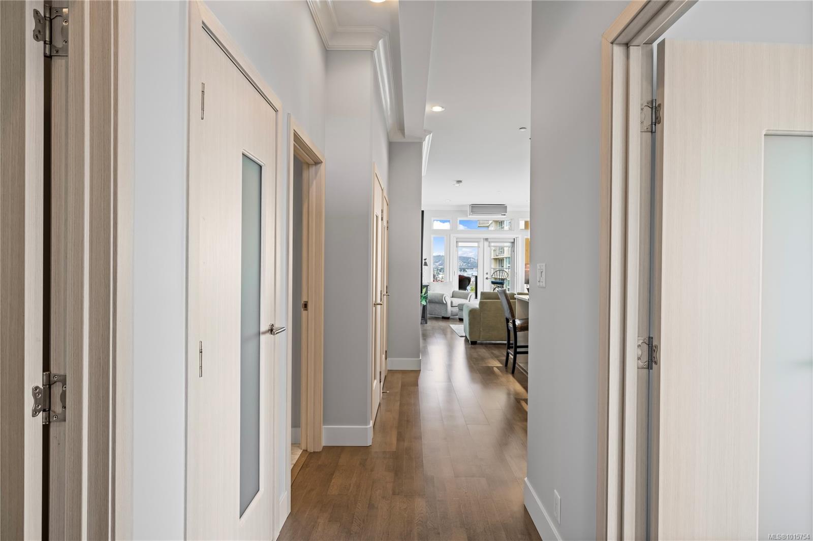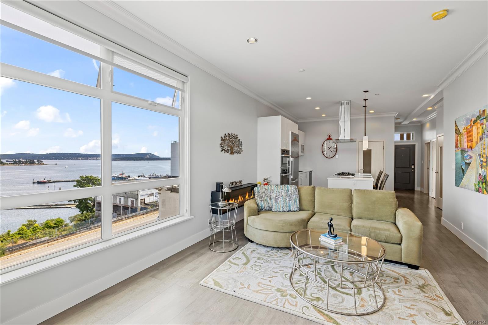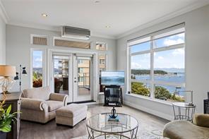 Located just steps from Nanaimo’s waterfront & vibrant downtown core, Unit 404 at the Aqua Residences offers the ultimate in West Coast living. This luxurious 3-bedroom, 2-bathroom corner unit is filled w/ natural light & features a contemporary open layout, perfect for entertaining or quiet nights at home. The chef’s kitchen boasts quartz countertops, soft-close cabinetry, a walk-in pantry & a premium Miele appliance package. Both the living room & primary bedroom open onto a large, covered patio with sensational views of the Harbour Channel & coastal mountains. The primary suite includes a walk-in closet and spa-inspired ensuite w/ heated floors, a soaker tub, walk-in shower & hidden TV in the mirror. With 10′ ceilings, dual heat pumps, in-suite laundry & hot water on demand, every detail is designed for comfort & efficiency. This pet & rental-friendly building has no age restriction, includes underground parking, a gym & easy access to the float plane, Helijet & Hullo Ferry.