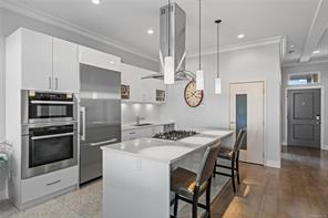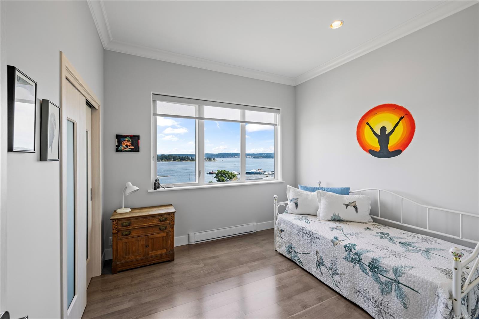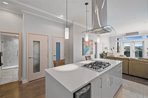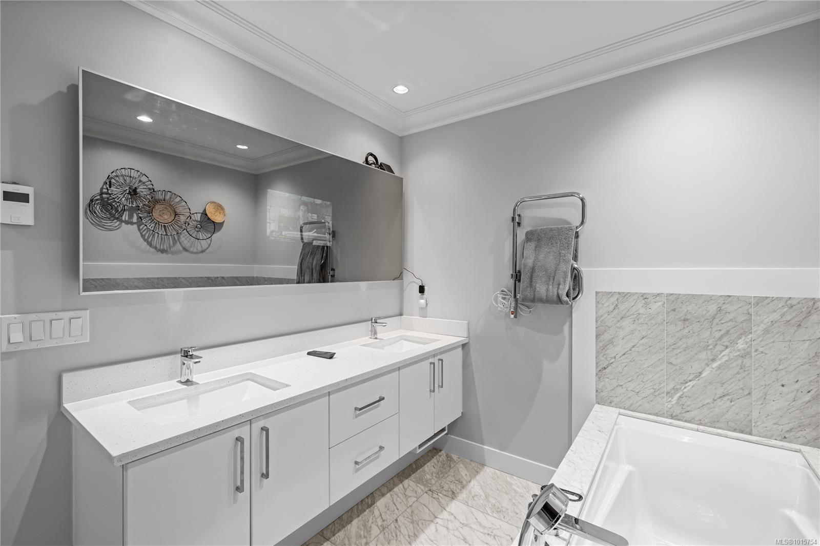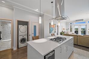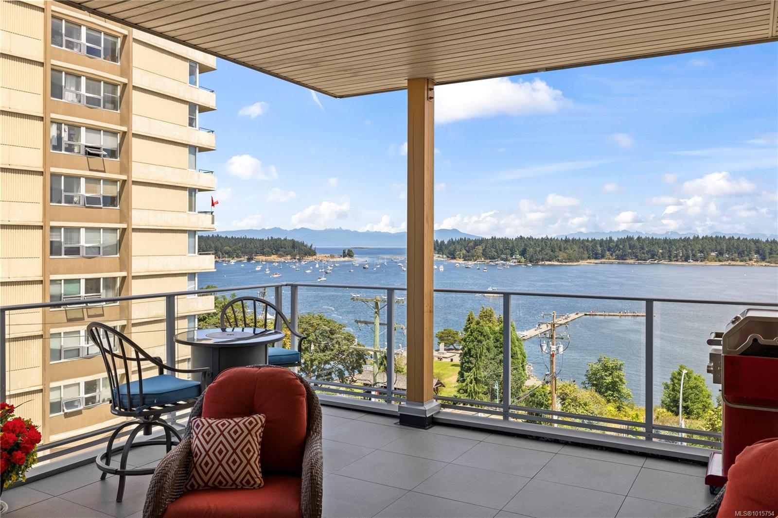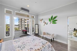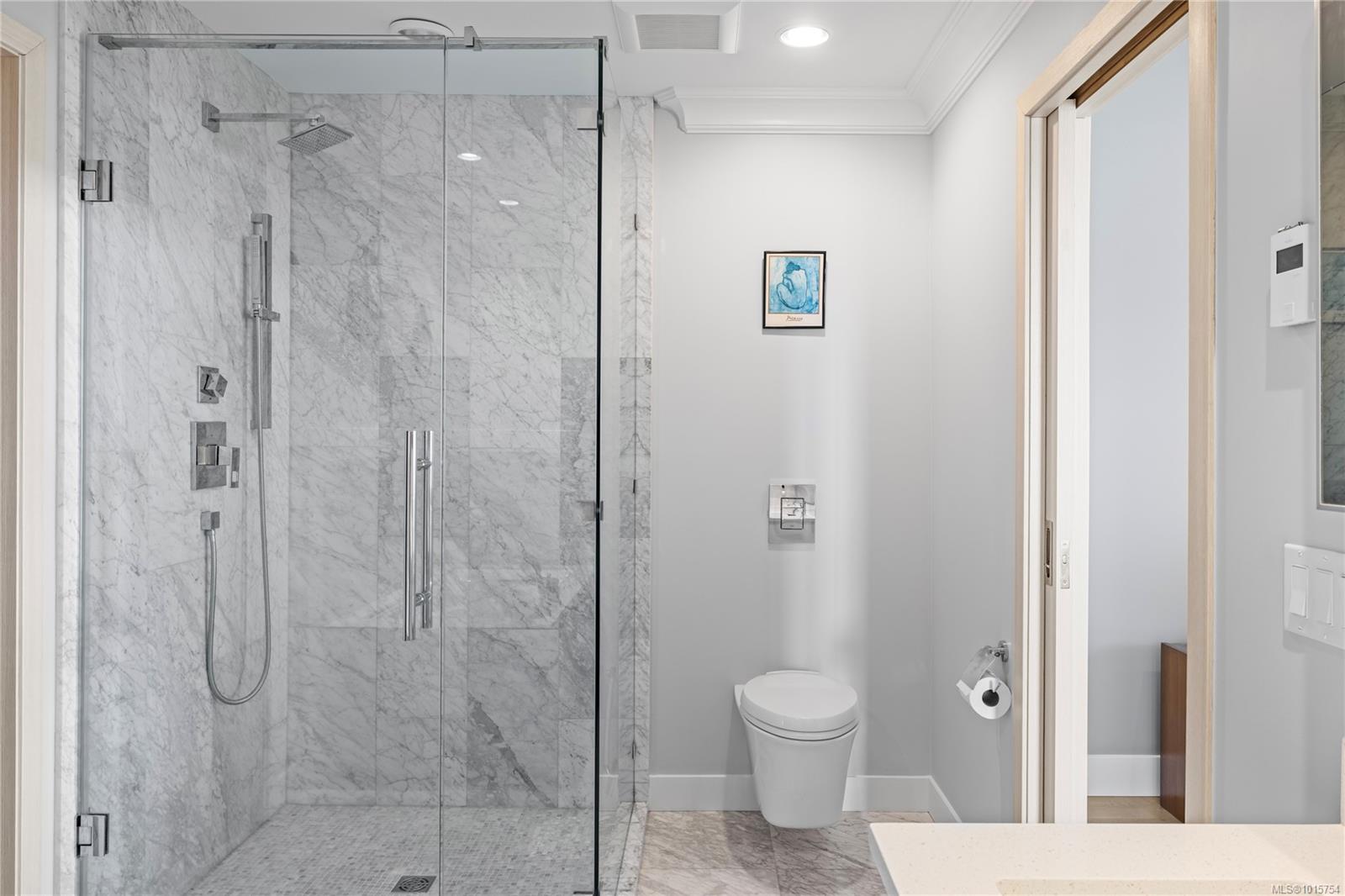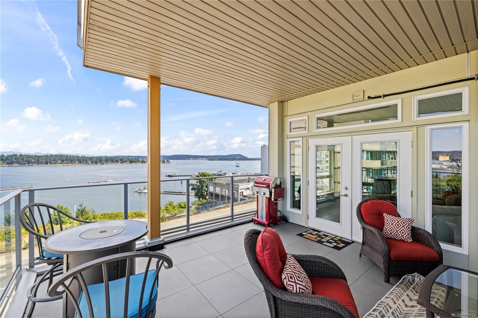 Located just steps from Nanaimo’s waterfront & vibrant downtown core, Unit 404 at the Aqua Residences offers the ultimate in West Coast living. This luxurious 3-bedroom, 2-bathroom corner unit is filled w/ natural light & features a contemporary open layout, perfect for entertaining or quiet nights at home. The chef’s kitchen boasts quartz countertops, soft-close cabinetry, a walk-in pantry & a premium Miele appliance package. Both the living room & primary bedroom open onto a large, covered patio with sensational views of the Harbour Channel & coastal mountains. The primary suite includes a walk-in closet and spa-inspired ensuite w/ heated floors, a soaker tub, walk-in shower & hidden TV in the mirror. With 10′ ceilings, dual heat pumps, in-suite laundry & hot water on demand, every detail is designed for comfort & efficiency. This pet & rental-friendly building has no age restriction, includes underground parking, a gym & easy access to the float plane, Helijet & Hullo Ferry.