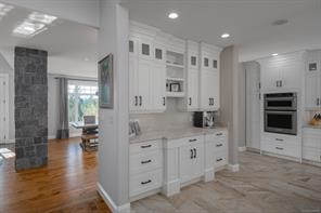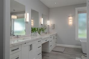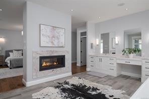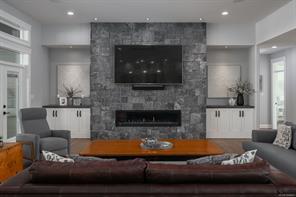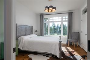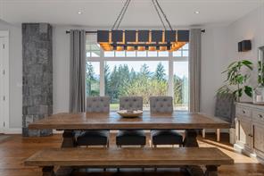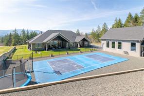 This exquisite custom-built 4-bed, 3-bath home spans 3,899 sq ft on a sunny acre with stunning mountain views. Located on a quiet, no-through road, it offers abundant natural light and a spacious, open layout. The great room features wood floors, a striking gas fireplace with stone surround, and built-in cabinetry. The gourmet kitchen is a chef’s dream, with a large island, six-burner gas range, wall oven, soft-close cabinetry, coffee bar, wine fridge, and double pantry. The tranquil primary suite boasts a see-through fireplace, luxurious ensuite with a soaker tub, glass-walled shower, and walk-in closet. Three additional bedrooms, a powder room, and a spacious laundry room complete the interior. Outside, enjoy a covered patio, manicured lawn, pickleball court, and a detached 3-bay garage with kitchenette, woodstove, bath, and storage. This private estate combines luxury with convenience, just minutes from amenities. All measurements are approximate, please verify if important.
