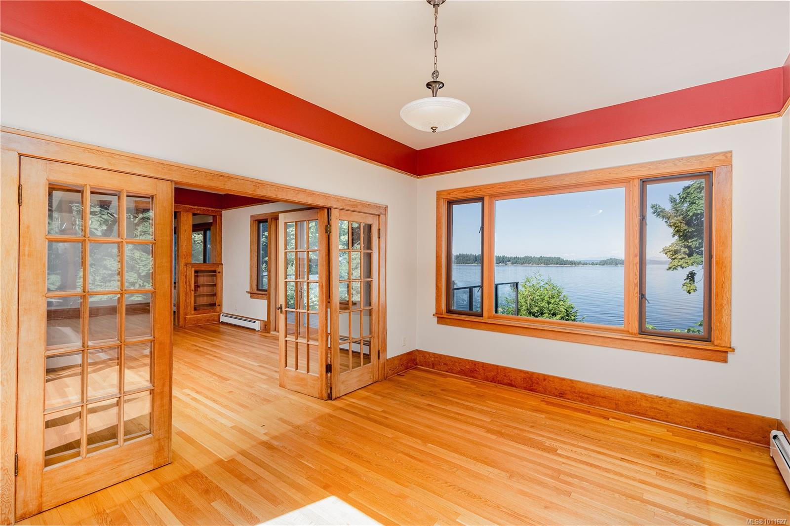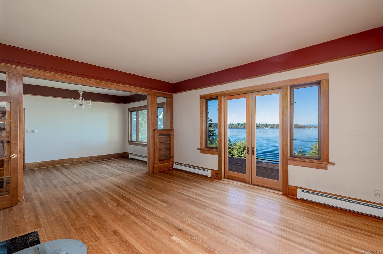 Rare low bank waterfront in Saltair! This 4.3-acre property offers approximately 460 ft of walk-on oceanfront with pebbled beach access. The charming 1929 Arts & Crafts home features 10’ ceilings, original hardwood floors, and exquisite wood craftsmanship throughout. Expansive windows showcase sweeping ocean views, while French doors open to a sunlit deck—perfect for morning coffee as the sun rises. Set among vibrant gardens and landscaped grounds, the upper acreage is filled with mature fir and cedar, providing ultimate privacy. A separate 2-bedroom cottage offers rental income or space for guests, and a garden shed adds practicality. This is a truly unique opportunity to enjoy character, charm, and serene oceanfront living. All information should be verified if fundamental to purchase