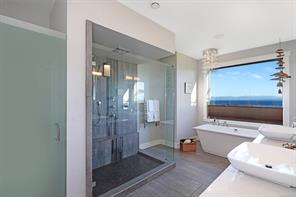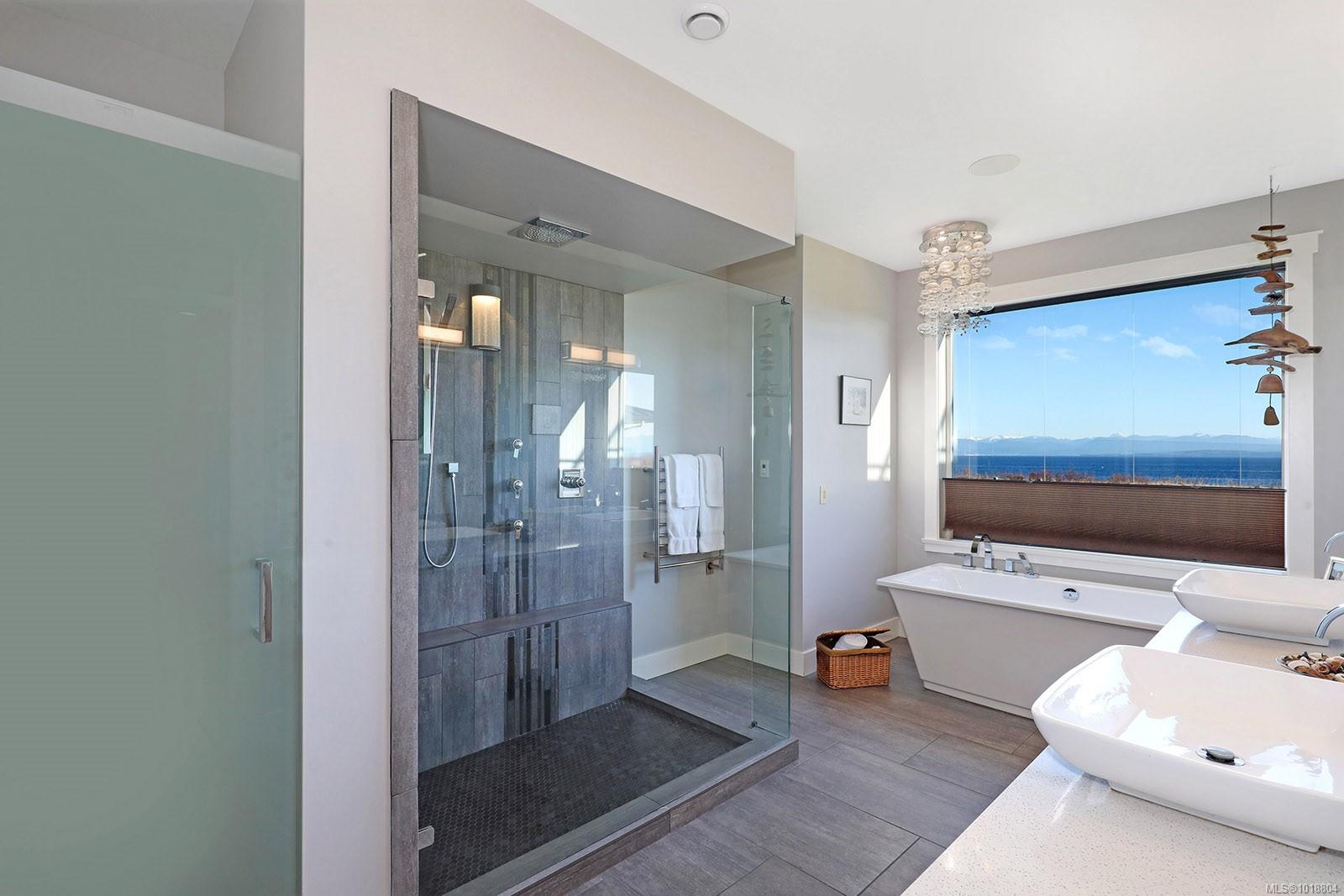Stunning West Coast Ocean views across the Strait of Georgia to the snow-capped Coast Mountains beyond. Delivering panoramic views from all levels, this high-bank waterfront home of 3,415 sf, 4 BD/ 3 BA offers chic contemporary styling incorporating simple luxury and refined elegance. Streaming sunlight highlights the bright open plan w/ floor to ceiling windows & 15’5†ceilings in the Great Room, striking bronze tiled propane gas fireplace w/ fir timber mantle. Bright white kitchen w/ contrasting wood finished island, Wolf gas cooktop, Jennair dbl oven, pantry, & access to the covered patio w/ 4 skylights. Adjacent to the kitchen is a den/bedroom/formal dining room. The primary suite offers luxury, solitude, and 5 pce ensuite w/ soaker tub, glass & tile shower, dual sinks and views! Upstairs there are 2 bedrooms, den/small bedroom, & entertainment room w/ wet bar, ideal for media, pool table, & access to the deck. Doggie shower, 6’ crawl, Longboard aluminum siding ‘Built to last.’