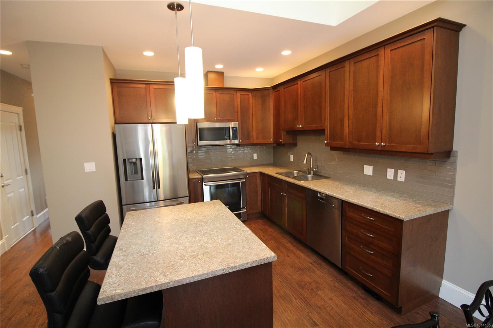 Welcome to Unit 28 at Applewood Estates, one of the largest townhomes in this desirable enclave, boasting 2,096 square feet. This rancher is designed for main level living with the added benefit of a full basement w/walkout, accessible storage and plenty of room for guests. The main level is bright, functional and spacious. Upgraded light fixtures and ceiling fans add a modern elegance. Open concept kitchen, dining and living room w/gas FP, + a west facing balcony w/retractable awning. The primary bedroom includes a walk-thru closet and four piece ensuite. A second bedroom/office off the front entrance overlooks the front patio and garden. The lower level offers a versatile den with French doors to the family room, and access to the guest bedroom, full bathroom and laundry. There is also a rough-in for laundry on the main level. Applewood Estates is ideally located within walking distance to amenities, downtown Chemainus, the Cowichan Valley Trail and just minutes from beach access.