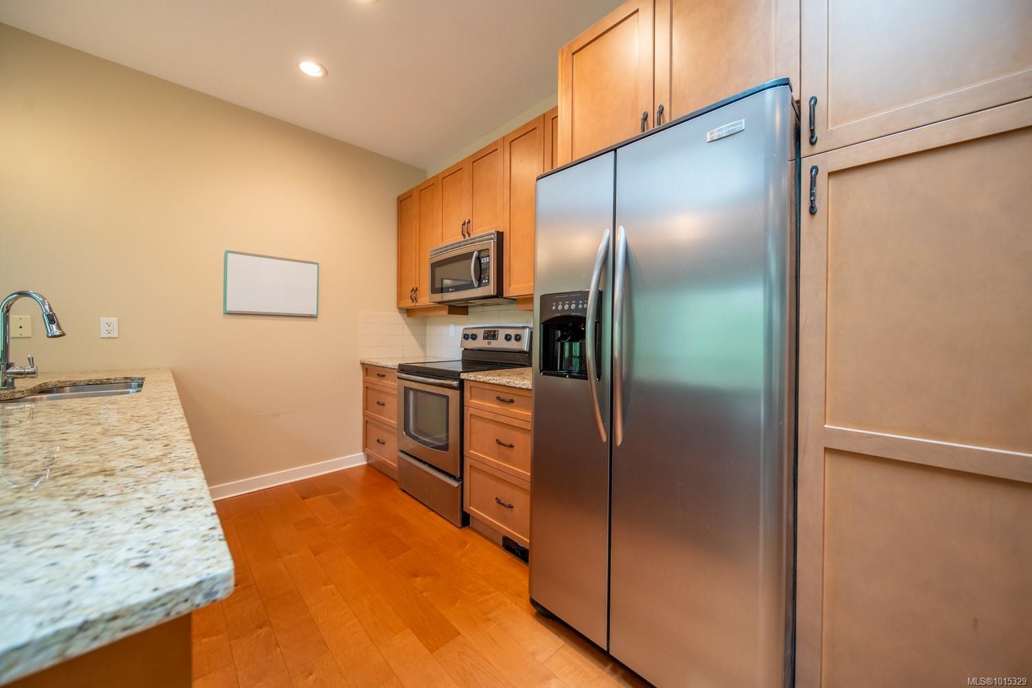 Welcome to Creekside Estates – a quiet community offering the perfect blend of privacy and convenience, just minutes from all of Parksville’s amenities. This single-level 2 bedroom, 2 bathroom townhome features 10-foot ceilings and a cozy gas fireplace in the main living area, connecting to the dining space and gourmet kitchen with granite countertops and stainless steel appliances. Step outside to your covered patio with a gas BBQ hookup, backing directly onto Shelly Creek Park which has walking trails. The spacious primary bedroom overlooks the park and includes a walk-in closet and a spa-inspired 5-piece ensuite. A generous second bedroom, full 4-piece bath, and double garage complete the home. Additional features of this home include, in floor natural gas heating, hot water on demand, a dedicated laundry room with builtins, and hardwood floors throughout. (Measurements and data approximate; verify if important.)