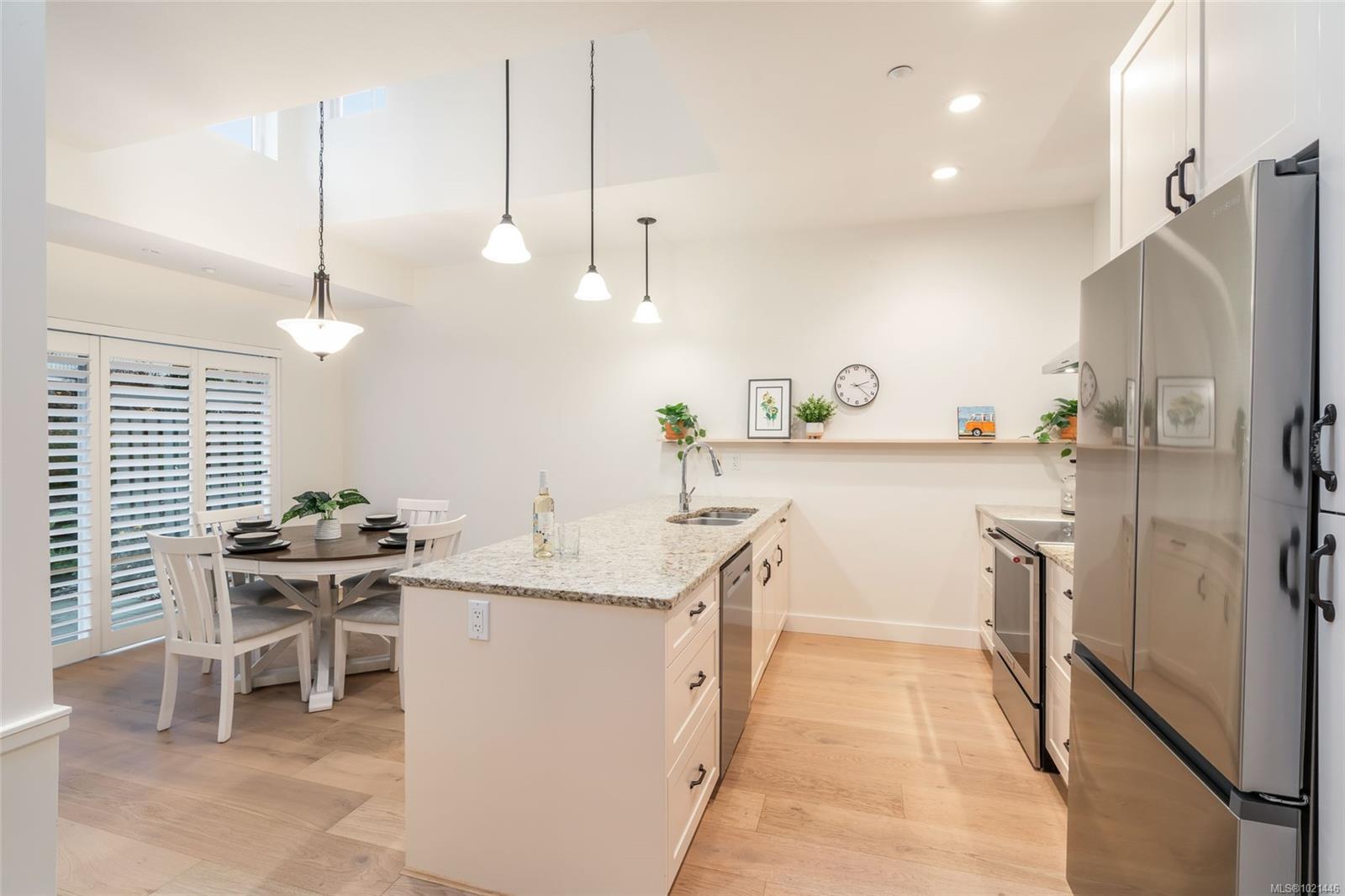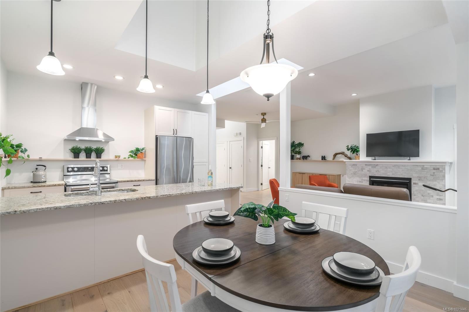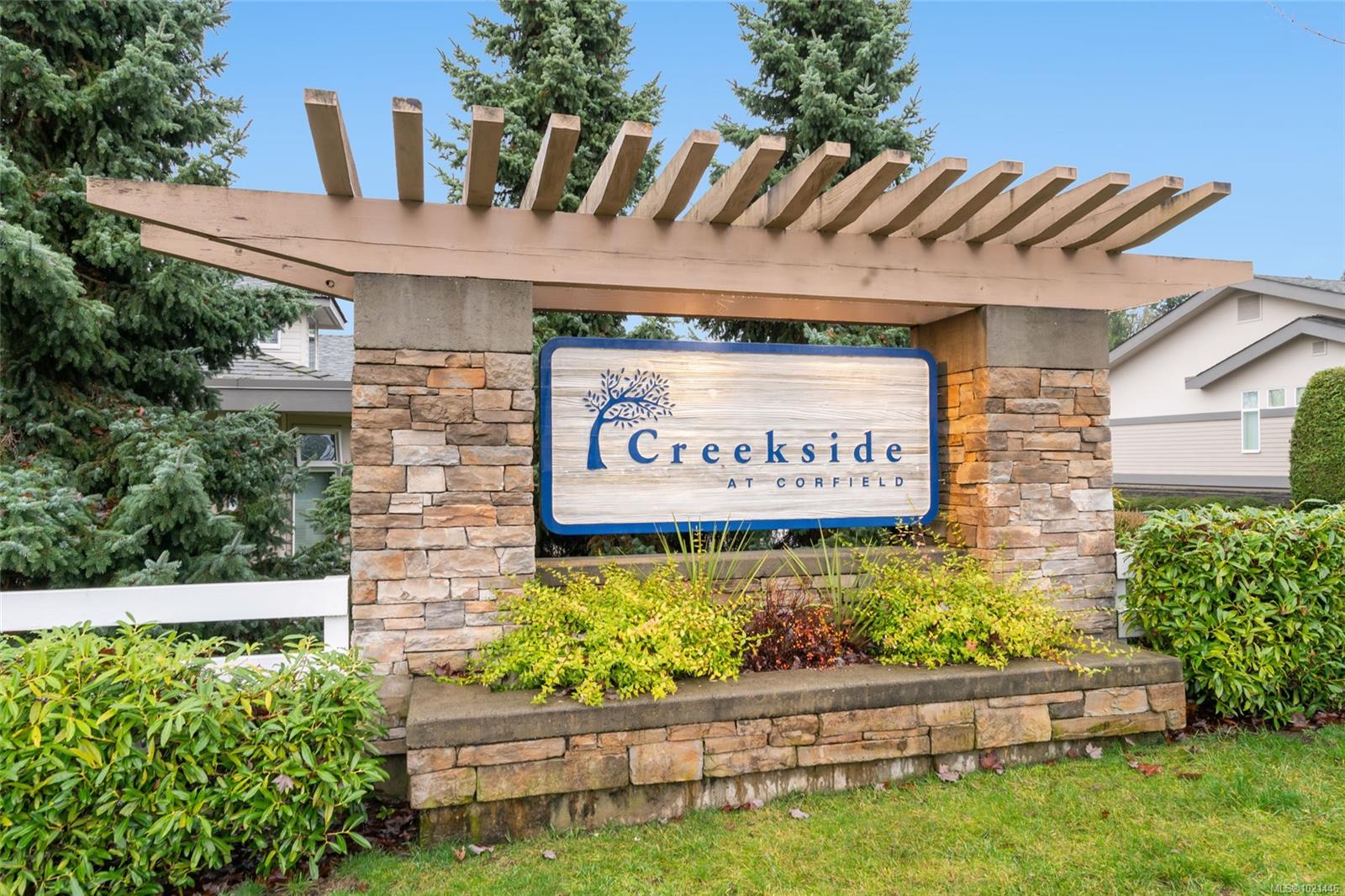 Contemporary Parksville Patio Home! A fabulous Patio Home in an amazing location just steps from Shelly Creek Nature Park and only mins to downtown shopping. This light, bright, and spacious 2 Bed + Den/Office, 2 Bath ‘Evergreen Model’ boasts stylish architectural details, varied ceiling heights, quality fixtures and finishes, thoughtful updates, guest accommodations, energy-efficient design, skylights, clerestories and picture windows, along with a courtyard patio plus two south-facing patios. Bright foyer with overheight dormer ceiling leads to open Kitchen/Living/Dining Room with skylight, wall of windows, and nat gas fireplace. Deluxe Kitchen with shaker cabinetry, granite counters, and stainless appliances. Primary Suite with spa ensuite, plus Second Bedroom, skylighted Bath, and Den/Office with laundry. Located in pet-friendly ‘Creekside at Corfield’ with a wonderful connection to nature. Nice extras, visit our website for more.
