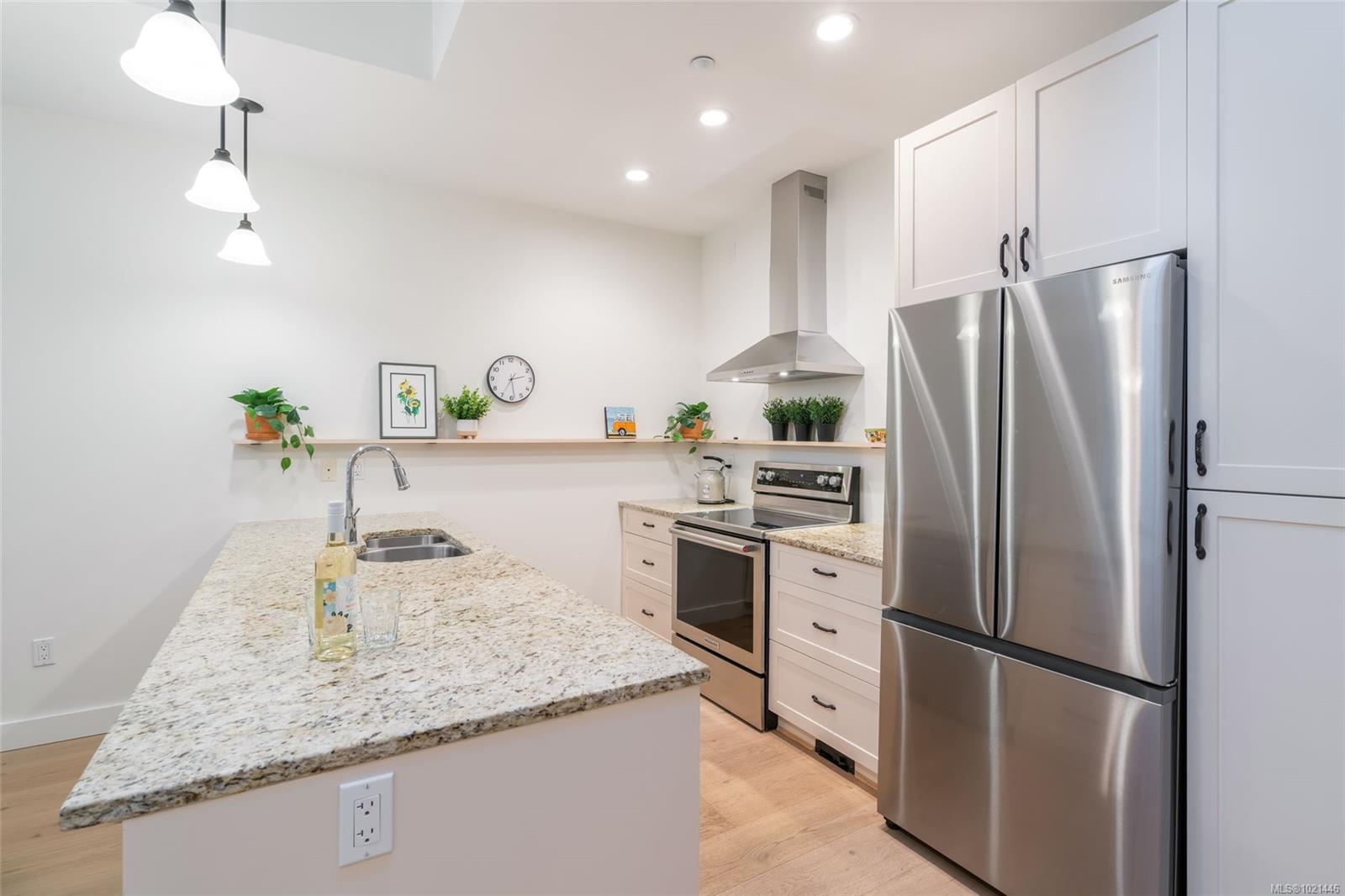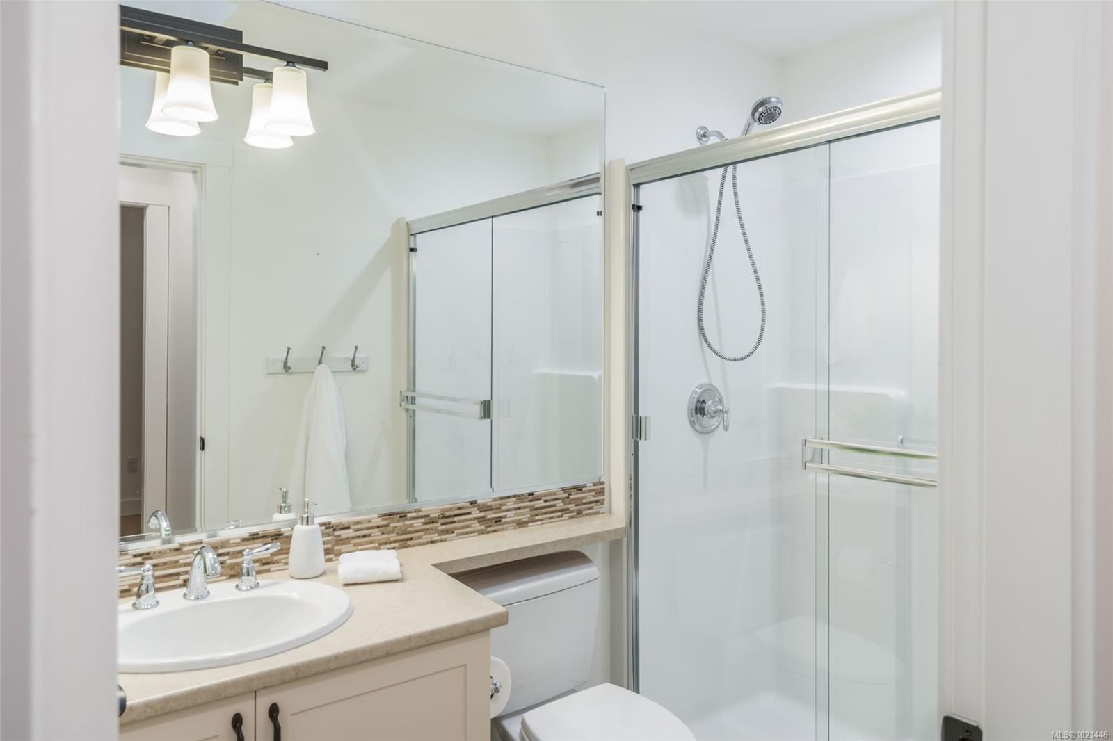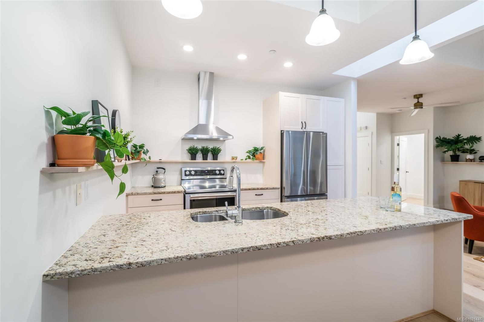 Contemporary Parksville Patio Home! A fabulous Patio Home in an amazing location just steps from Shelly Creek Nature Park and only mins to downtown shopping. This light, bright, and spacious 2 Bed + Den/Office, 2 Bath ‘Evergreen Model’ boasts stylish architectural details, varied ceiling heights, quality fixtures and finishes, thoughtful updates, guest accommodations, energy-efficient design, skylights, clerestories and picture windows, along with a courtyard patio plus two south-facing patios. Bright foyer with overheight dormer ceiling leads to open Kitchen/Living/Dining Room with skylight, wall of windows, and nat gas fireplace. Deluxe Kitchen with shaker cabinetry, granite counters, and stainless appliances. Primary Suite with spa ensuite, plus Second Bedroom, skylighted Bath, and Den/Office with laundry. Located in pet-friendly ‘Creekside at Corfield’ with a wonderful connection to nature. Nice extras, visit our website for more.