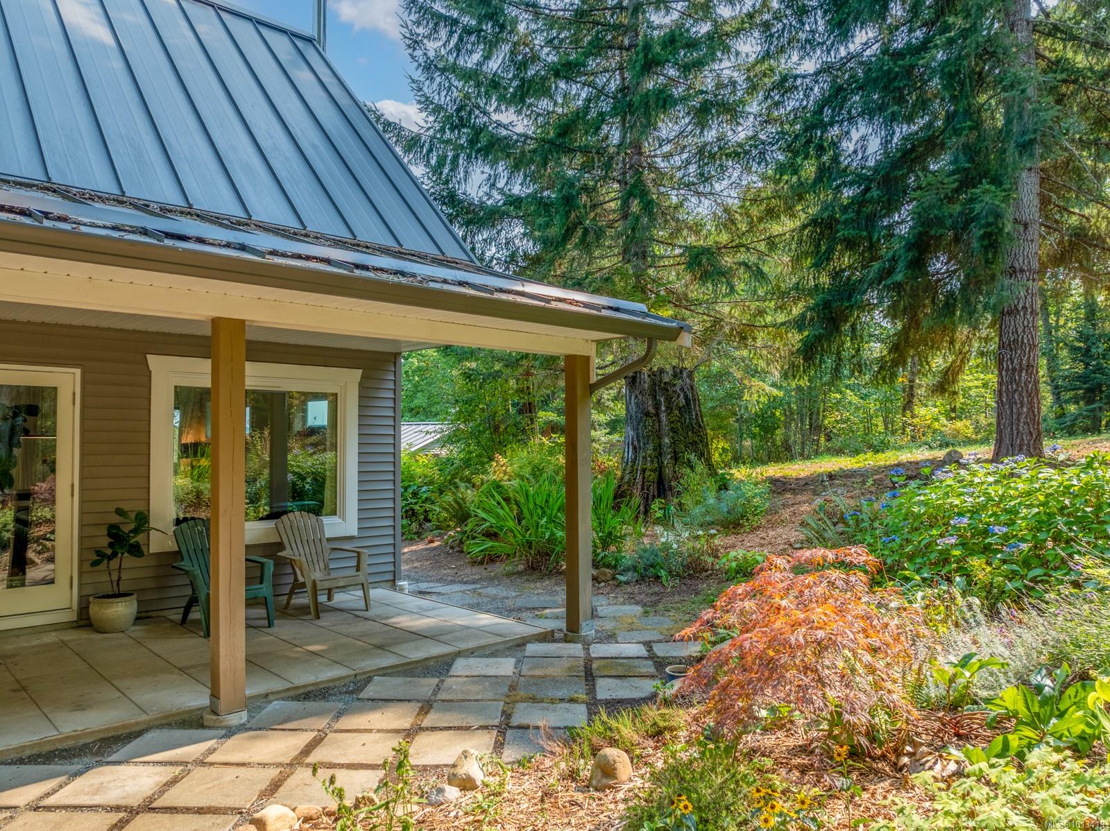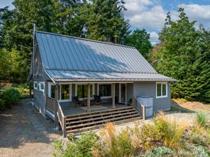This private 5+ acre property offers a newer (2014), thoughtfully designed, 1525 sqft home and detached garage/workshop in a quintessential West Coast setting. Rustic landscaping blends seamlessly with natural forest and contemporary design, all just steps from the Buckley Bay ferry and the bountiful waters of Baynes Sound. Inside, the home features a bright open-concept kitchen and dining area with 12′ ceilings, two bedrooms on the main level, and a versatile upstairs space perfect for an additional bedroom, office, or family room. The garage (built in 2018) is well powered (100 amp) with ample space for woodworking tools, sports gear and storage, plus a generous carport, perfect for boat parking. The CR-1 zoning provides for flexible expansion opportunities including the potential for a secondary dwelling and a carriage house. Enjoy the trails and natural beauty right on your own land, while still being within easy reach of Courtenay, Comox, and Cumberland. Book your showing today!