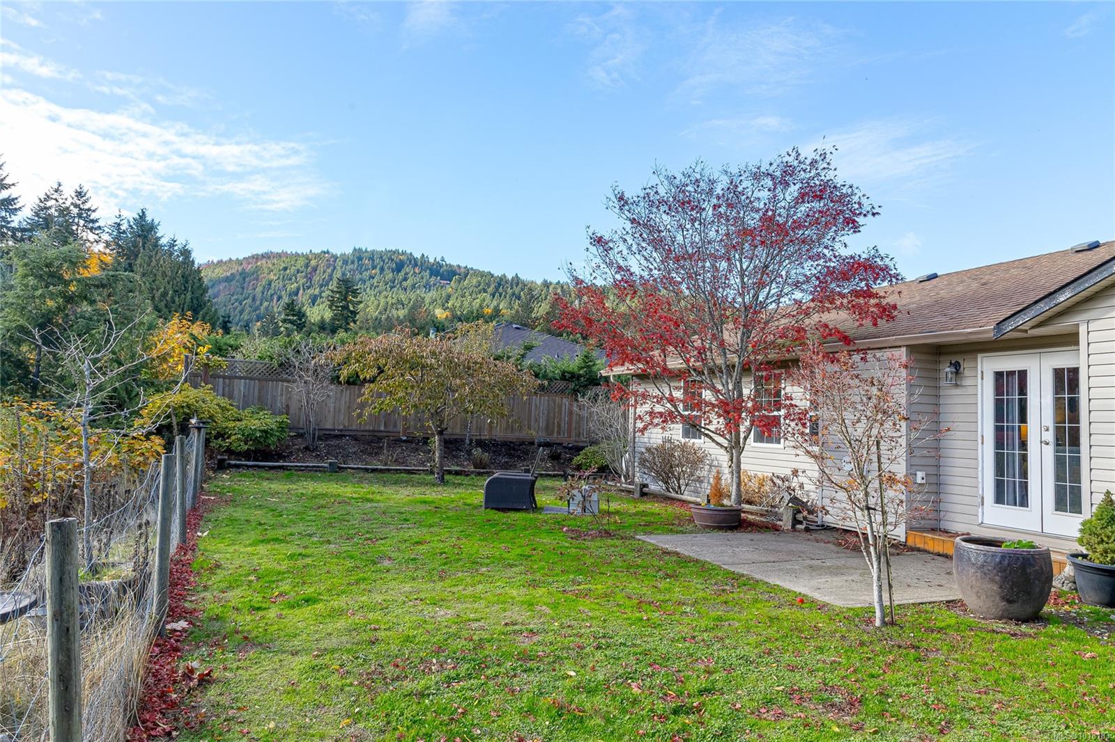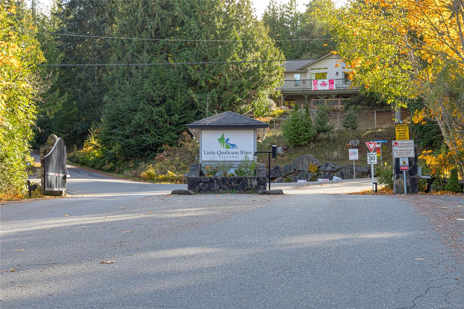 Stunning mountain view 3 bed, 2 bath rancher on a private 0.615-acre lot in the Little Qualicum River Village gated community. Step through French doors from the dining area onto your patio & take in the spectacular mountain vistas. Kitchen features quartz countertops, marble backsplash, & stainless steel appliances. Bathrooms also include quartz counters for a consistent, modern finish. Bright & open layout with hardwood floors throughout & a cozy propane fireplace in the living room for added warmth & comfort. Double car garage provides ample storage. Front yard is beautifully landscaped with mature shrubs & features a private wooden deck perfect for relaxing. The fully fenced backyard also provides excellent privacy with no rear neighbours. Located just 20 mins to downtown Qualicum Beach, & close to walking trails & Little Qualicum River Falls. A perfect blend of comfort, quality, & tranquility in a beautiful natural setting. This home is ready for you to move in & enjoy.
