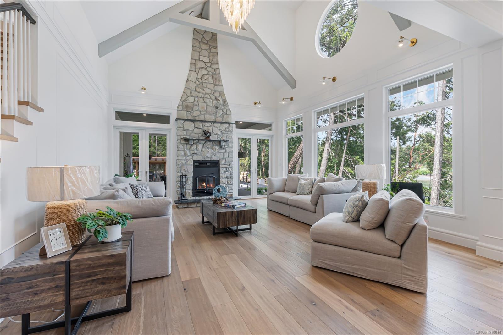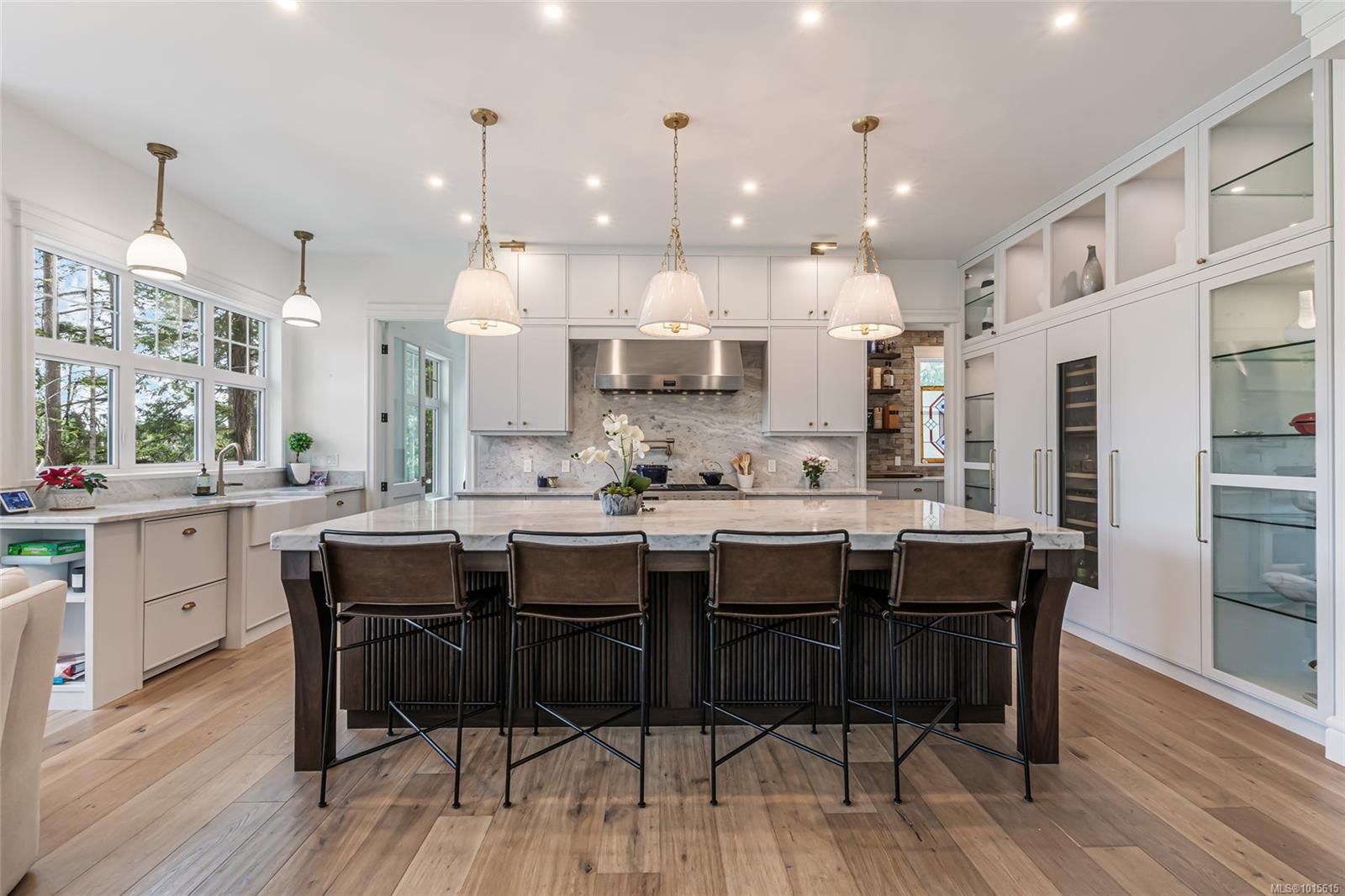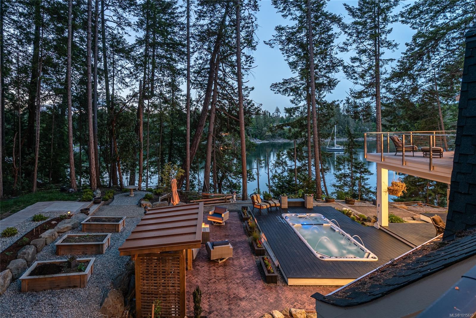 3 yr old Oceanfront home tucked down a private lane. The elegant waterfront masterpiece blends modern classical coastal design with luxury. Nestled in tranquil protected “Evening Cove†& offering excellent beach access plus own anchoring Buoy. This spectacular home boasts over 6000 sqft of opulent living space plus a 700 sqft garage. 5 beds, 6 baths, kitchen absolute showpiece w/ custom built walnut cabinetry. Appliances befitting this home three door Trio Liebherr fridge, freezer, wine fridge, Fisher Paykel double drawer dishwasher & Fulgor 48″ stove. You’ll love the spectacular stone fireplace, Russian Oak floors and grand staircase. Multi use flex suite over garage plus a lovely legal one bedroom in part of lower level. Beautiful grounds including amazing swim spa by waters edge, stamped driveway & walks, huge deck space(s). Some of the warmest waters North of California, great crabbing, prawning & fishing within minutes, 10 minutes to airport, golf, 25 minutes to ferry. Paradise!
