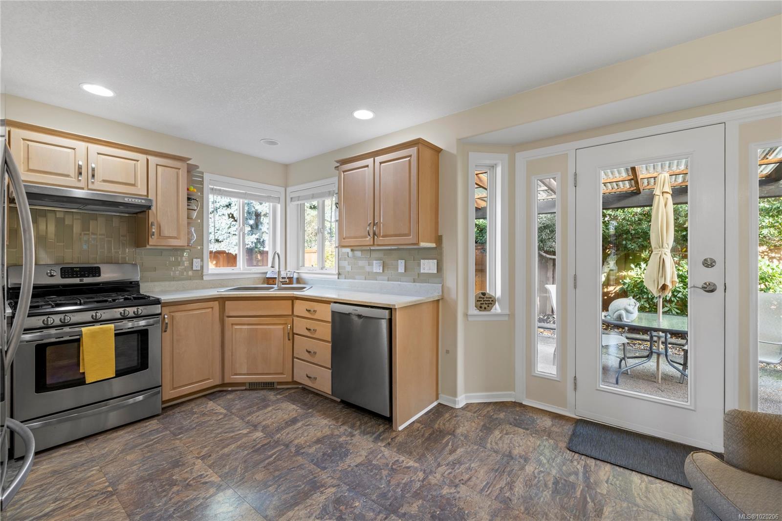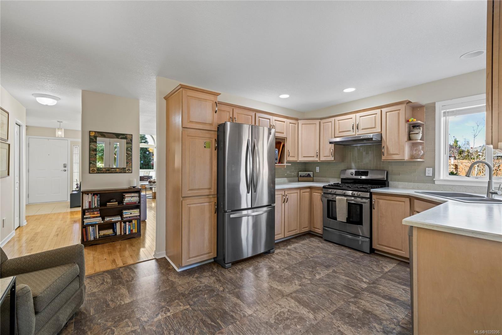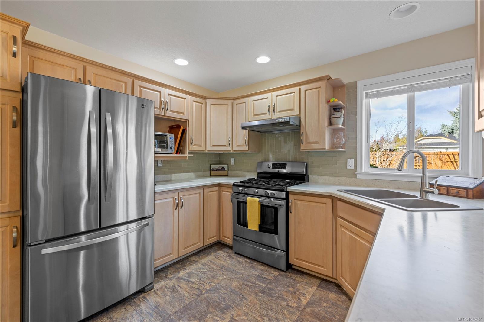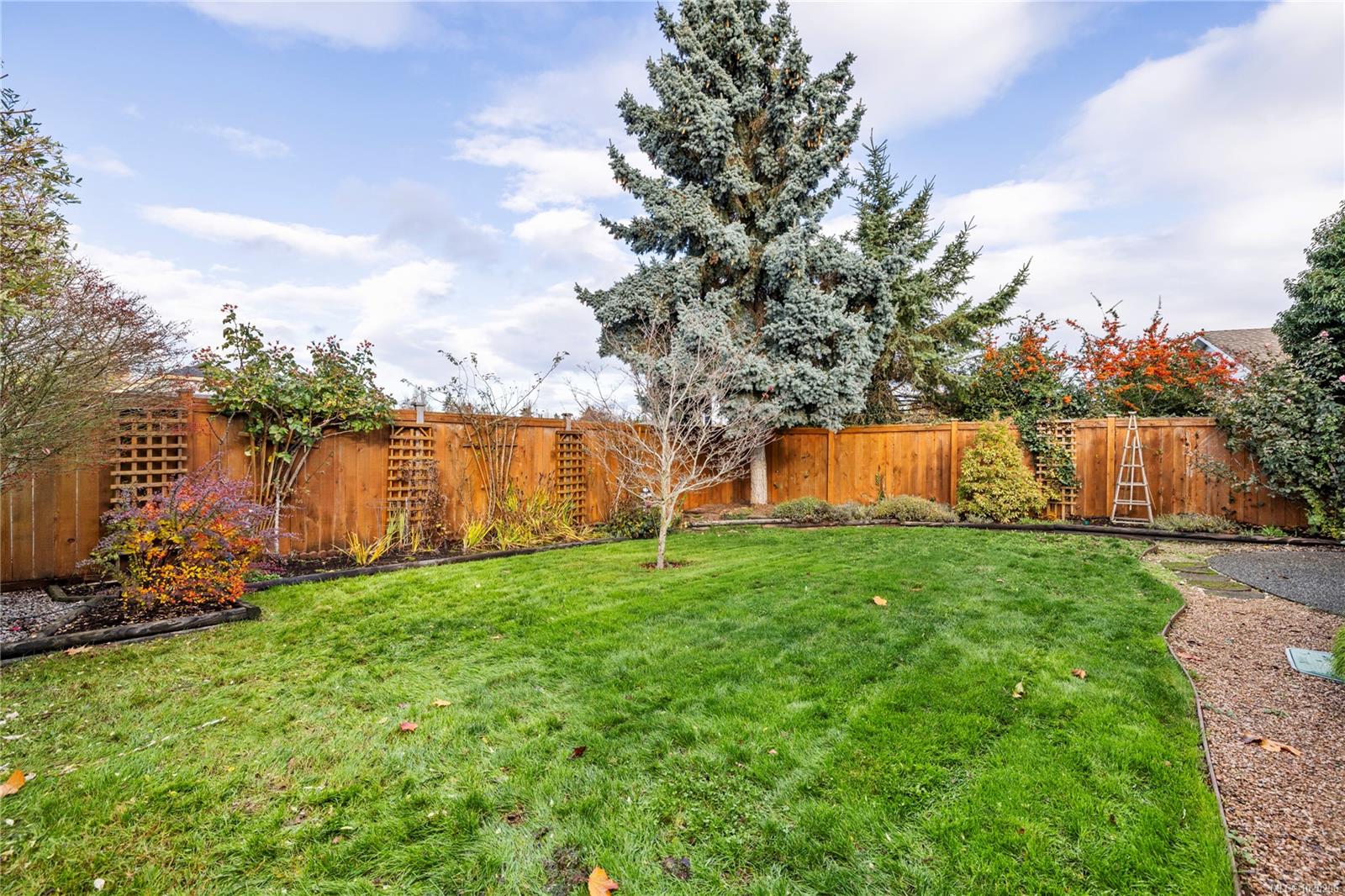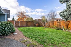 Well-maintained 3-bedroom, 2-bath rancher in quiet Maple Glen subdivision. Bright and spacious with vaulted ceiling and gas fireplace in living room. Kitchen opens to covered back patio and fully fenced, landscaped yard with raised garden beds, irrigation system, and garden shed. South-facing front yard offers great light. Primary bedroom features walk-in closet and 3-piece ensuite. Crawlspace has hydraulic hinges for easy access. Close to shopping and amenities. Quick possession possible. (NOTE: NO Poly B)