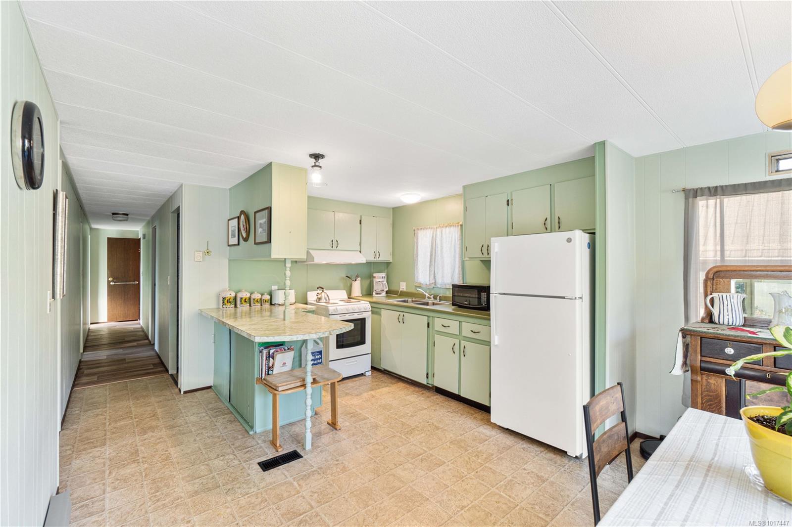 Welcome to Sunnyslope 55+ Manufactured Home Park! Discover comfort and convenience in this beautifully updated 3-bedroom, 2-bathroom double-wide home, perfectly situated within walking distance to Southgate Mall, Chase River amenities, and public transit. Step inside to find nearly 1200 sqft of bright, open living space, freshly enhanced with new flooring, paint, and a modern kitchen refresh. Large windows fill the home with natural light, creating an inviting atmosphere throughout the spacious living and dining areas. Recent upgrades include a new roof and heat pump in 2023 and numerous thoughtful improvements that make this home move-in ready. Outside, enjoy a low-maintenance yard with newly graveled beds and clean edging, ideal for those who love to garden. A wired workshop off the carport provides the perfect space for a handyman or extra storage. With its prime location, updated features, and welcoming community setting, this home truly has it all, comfort, style, and convenience.