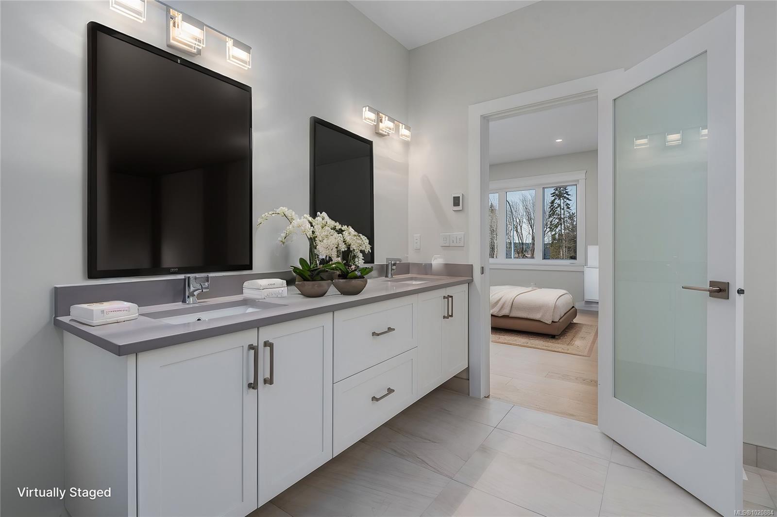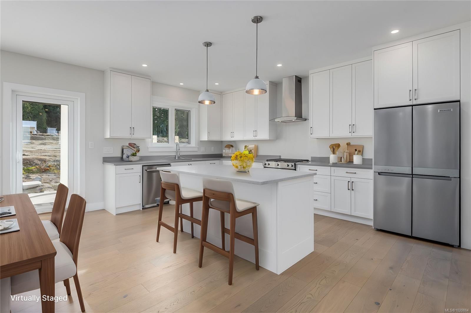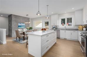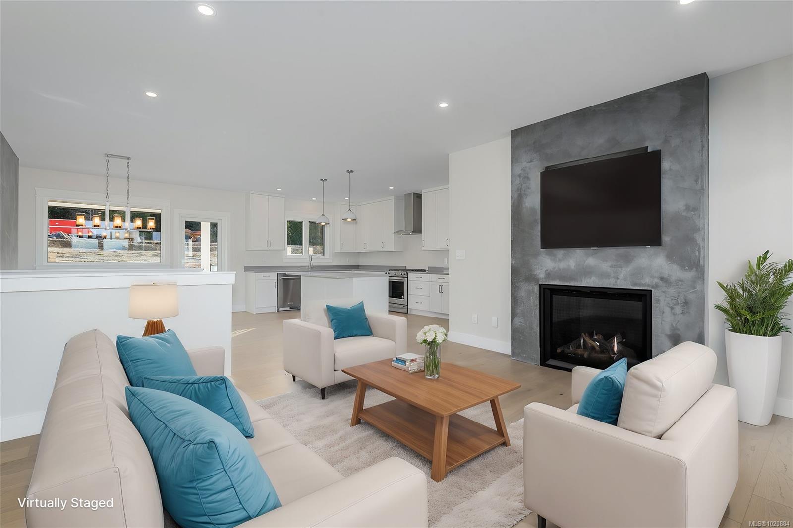 PRICED TO SELL! New BP2 Construction home designed for flexible living with 3,023 sq ft of space & 413 sq ft true double garage with 2 separate doors and EV charger wiring. Upper level features an open kitchen, dining, and living area with large windows, along with 2 bedrooms and 2 bathrooms. The kitchen includes an island, stone counters, a walk-in butler pantry, and KitchenAid appliances. Gas fireplace & front / rear decks complete the level. Lower floor of the main home adds 1 bedroom and a 4-piece bathroom. The primary bedroom offers a 5-piece ensuite with dual sinks, quartz, heated floors, a soaker tub, & walk-in closet. Upstairs laundry includes Samsung steam units. The legal suite provides one bedroom, a den, full bath, Hisense kitchen, separate hydro, mini-split, and its own laundry room. The fenced and landscaped yard and Low Carbon Step Code certification add value, and the home includes new home warranty. Close to the hospital, shopping, schools, golf and amenities!!