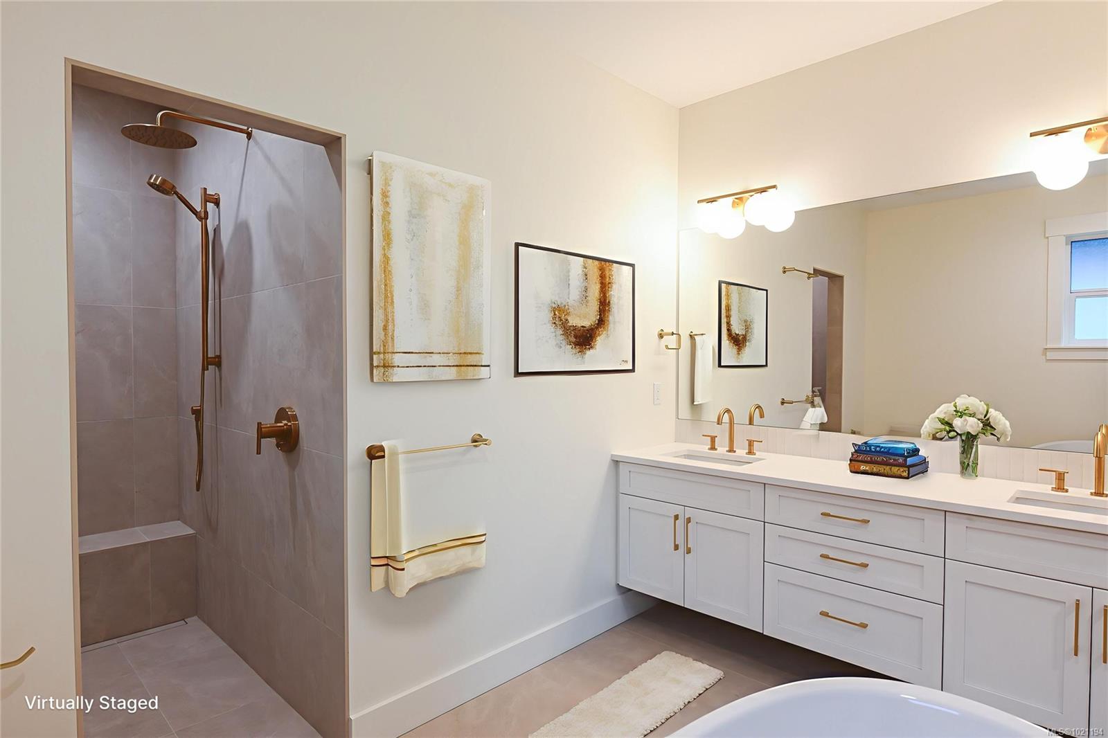 A quality built 5 bed bungalow with finished daylight basement including a legal 2-bedroom suite presented by Comox Builders. The main home features open plan ground-level living, 3 bedrooms including a spacious primary with walk-through closet and 5-piece luxury ensuite, a 13’10 x 13’6 deck, gas fireplace, on-demand hot water, heat pump w/electric coil backup, ICF (insulated concrete foundation) EV charger in garage, indoor sprinklers, and 409 sq ft of 9’ ceiling basement space for rec room & storage. The bright 2-bed legal suite features 9′ ceilings, private patio, a separate entrance w/ concrete walkway & stairs to upper level parking, its own hydro panel & water tank, and a single-zone heat pump for A/C. The suite may be accessed inside the home, but also has it’s own e entrance with concrete stairs and handrail. Landscaping, irrigation & fencing included. Built by a trusted team that has a great reputation and after sale service!