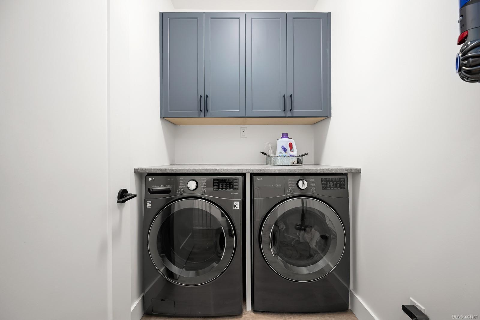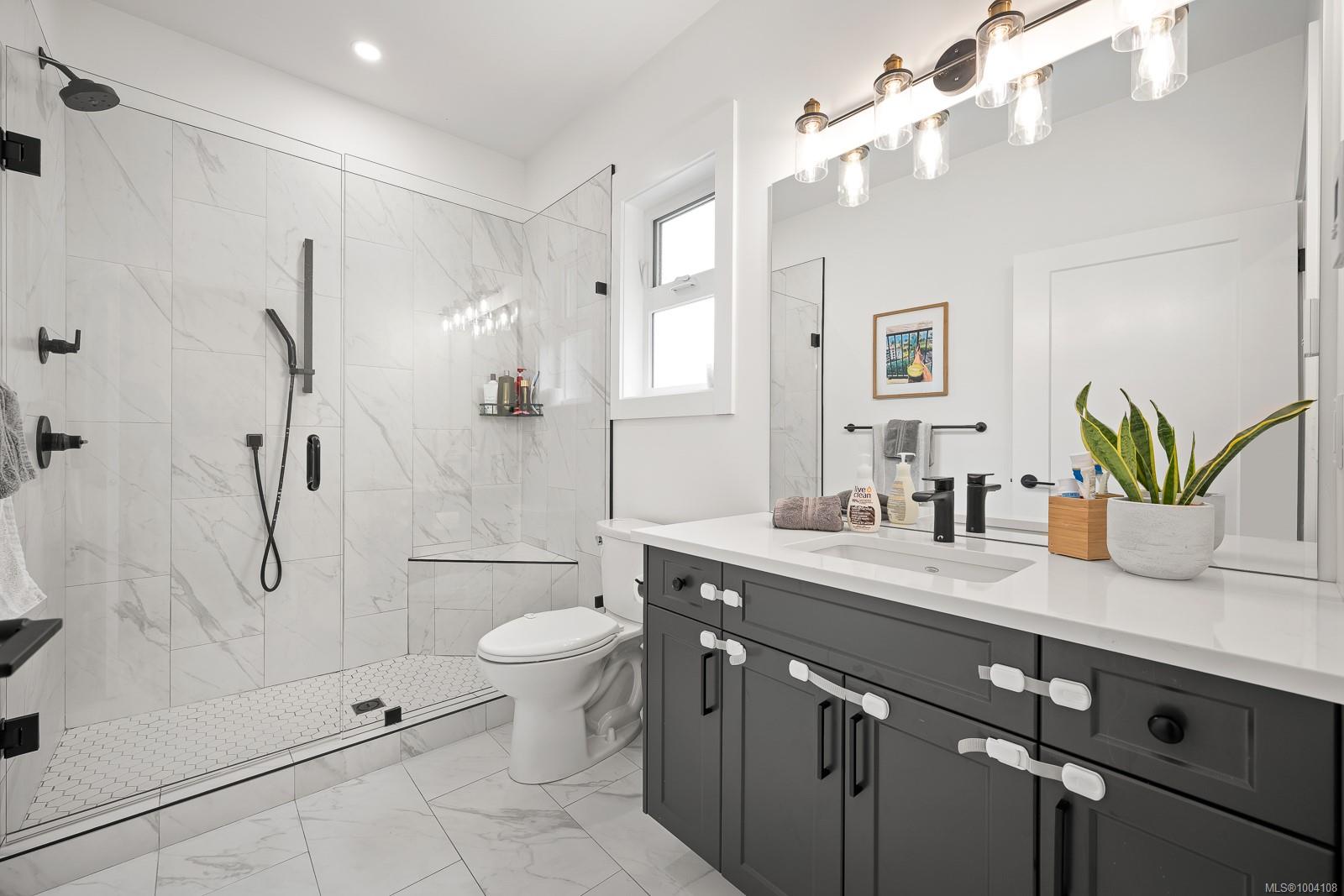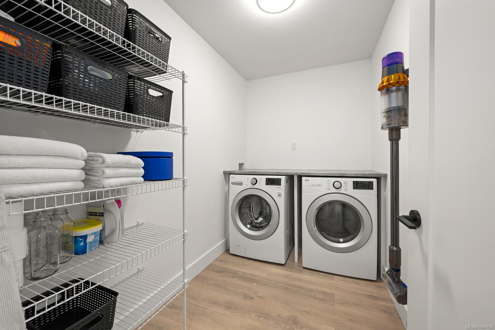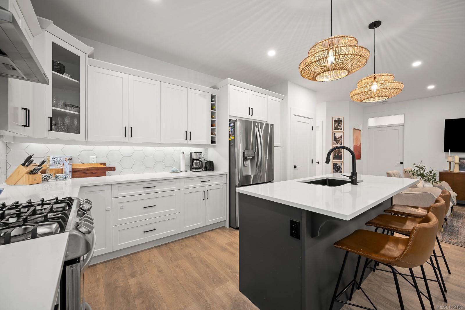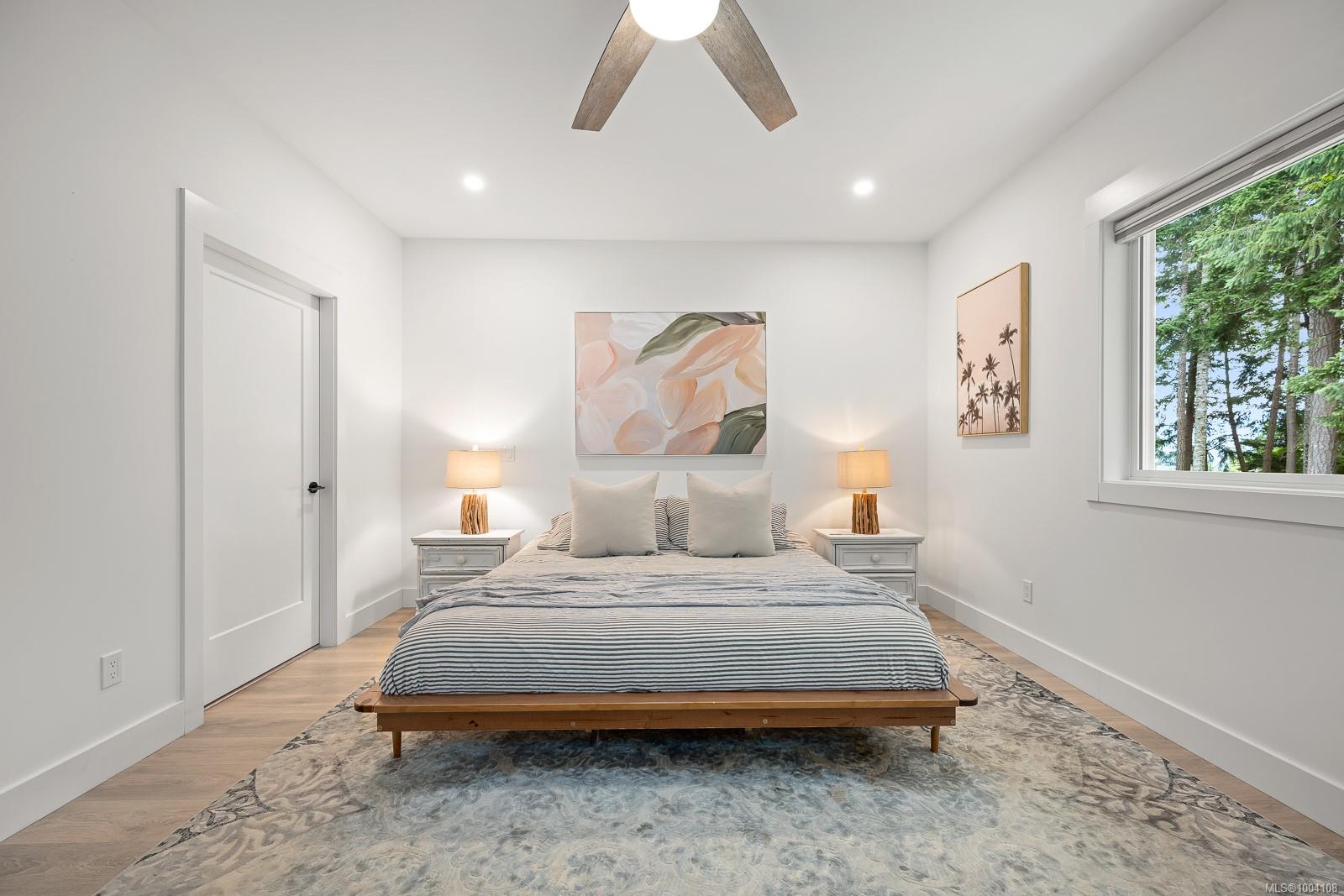 Modern living meets versatility in this stunning 2020-built 3 bed, 2 bath rancher with full walkout basement with over 3,200 sq ft of total space tucked away on a quiet cul-de-sac close to both Comox and Courtenay amenities and backing onto treed land. Downstairs offers a fully self-contained, spacious, legal 2 bedroom suite with its own laundry room and great parking—perfect for extended family or rental income, with optional interior access to main home. The main level features 9-ft ceilings, a beautifully appointed kitchen overlooking treed privacy, and a luxurious primary ensuite with a glass tile shower. Enjoy a fully fenced yard, irrigation system, RV parking, and a large unfinished area downstairs ideal for storage, a home office, or rec room. This property offers both beauty and the feeling of seclusion yet minutes to schools and amenities.