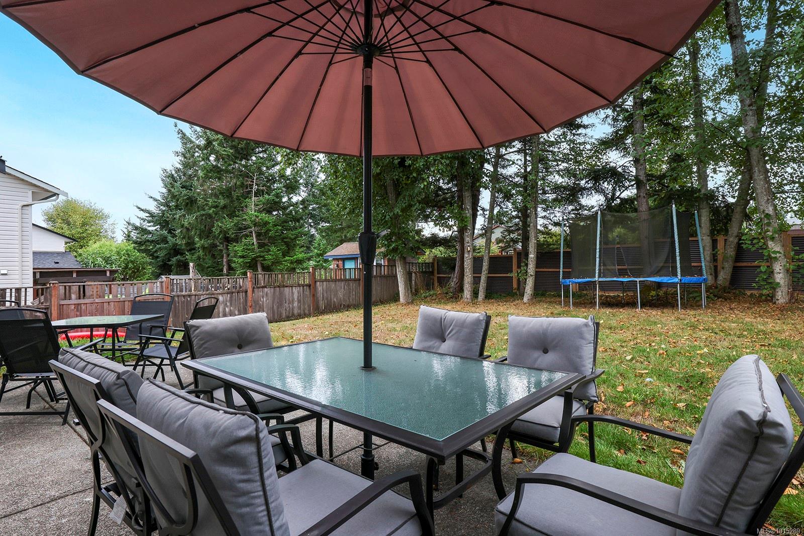 Welcome to 508 Deerwood Place, a well maintained main level entry home located on a quiet cul-de-sac in a highly desirable Comox neighbourhood. This home backs onto a spacious, fully fenced backyard with mature trees and a garden shed, providing privacy and plenty of outdoor space. The bright open concept main floor features a kitchen, dining, and living area with sliding doors that open to a private patio—ideal for entertaining or relaxing. Upstairs are three bedrooms, including a generously sized primary with a walk in closet and a 4 piece bathroom. Additional features include a covered entry, a 2017 roof, heat pump with air conditioning, EV charging station, and a garage with high ceilings and built in shelving for extra storage. Conveniently close to beaches, parks, downtown Comox, the military base, and the airport, this home offers comfort, convenience, and lifestyle.