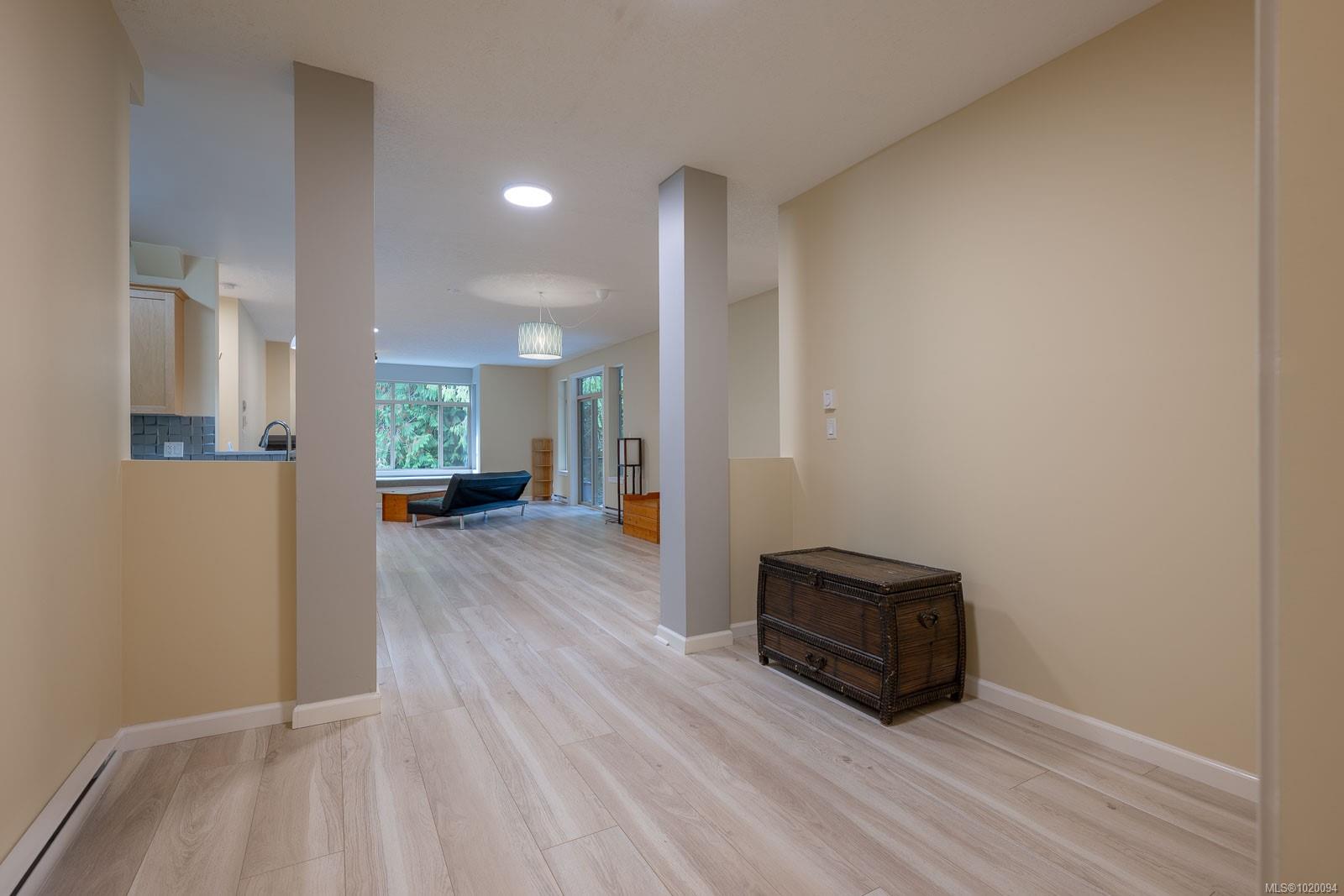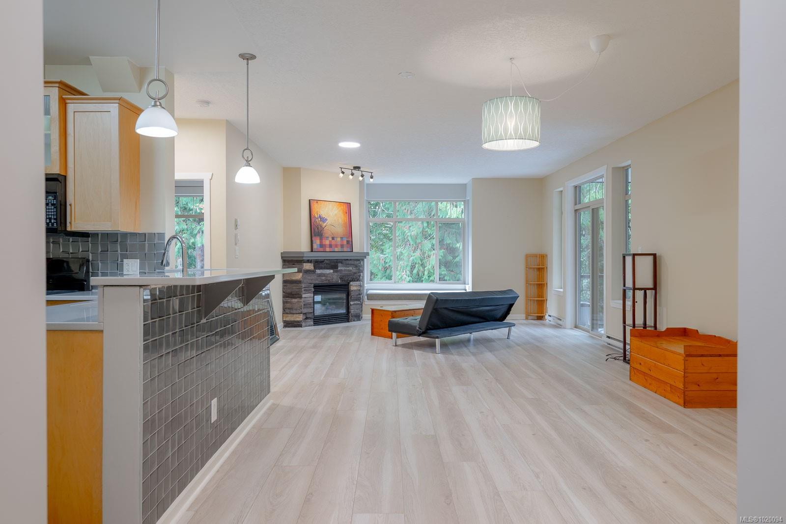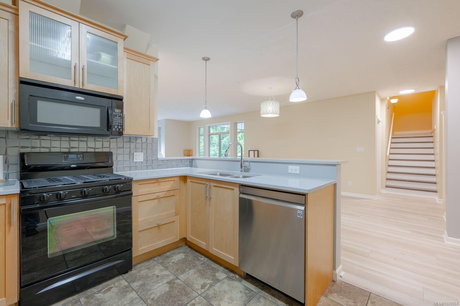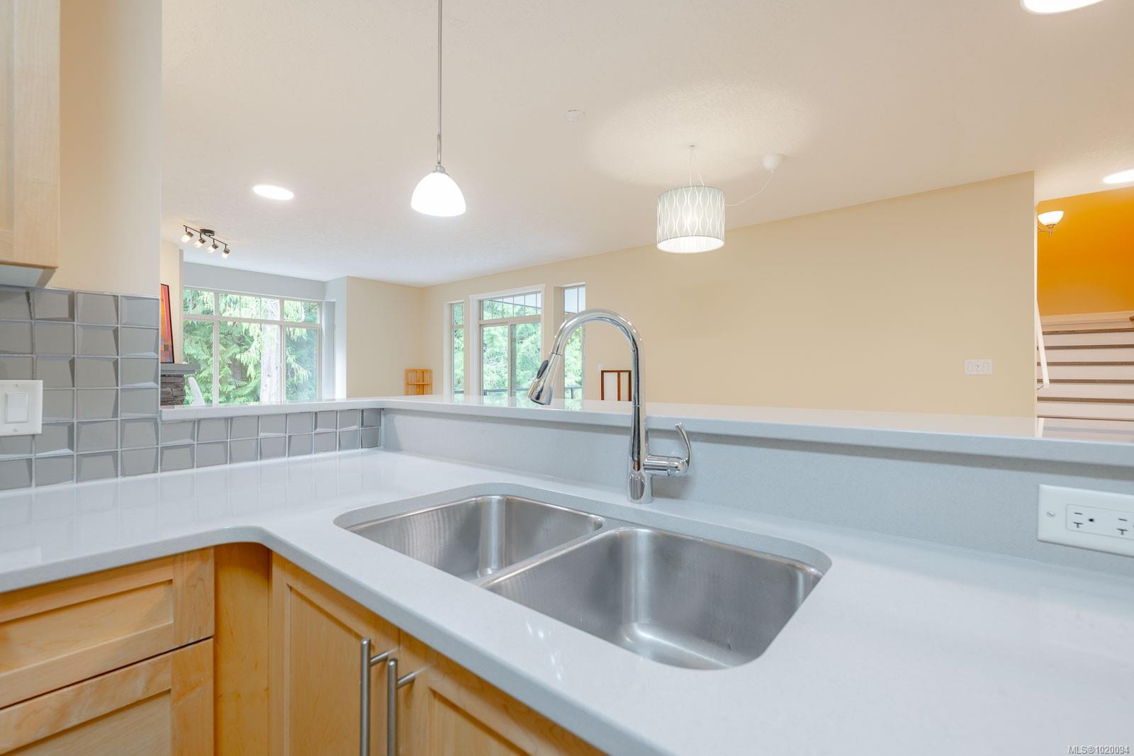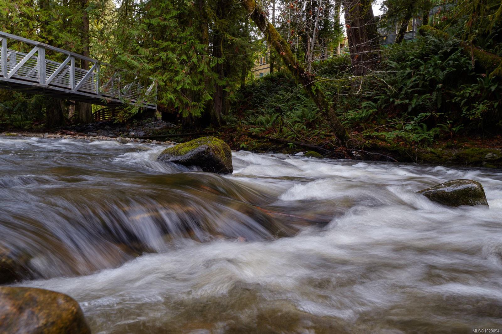Nestled among mature trees and lush landscape, this bright and inviting 2-bedroom plus den, 2-bathroom townhome overlooks the tranquil beauty of Demamiel Creek. Flooded with natural light, the open-concept layout features a welcoming living room with a cozy gas fireplace, charming window seat, and access to a private deck—perfect for soaking in the peaceful West Coast backdrop of forest and flowing creek. The kitchen offers granite countertops, a breakfast bar, and plenty of workspace for everyday living or entertaining. The spacious primary bedroom includes a walk-in closet and a 3-piece ensuite, while the versatile den provides the perfect spot for a home office, reading nook, or guest space. Additional features include an attached garage, loft storage, and an unbeatable location just minutes from scenic walking trails, Demamiel Creek Park, and the Sooke River. A rare opportunity to enjoy bright, creekside living in one of Sooke’s most desirable areas. Measurements approximate.