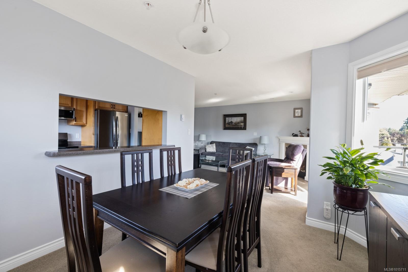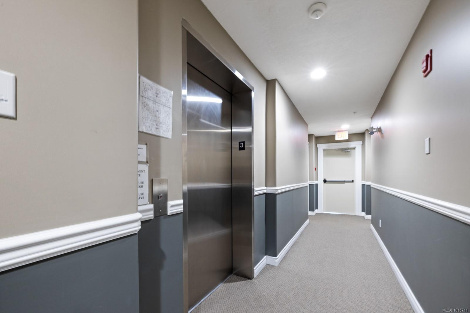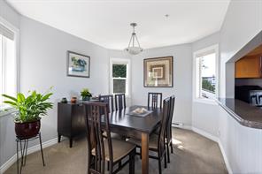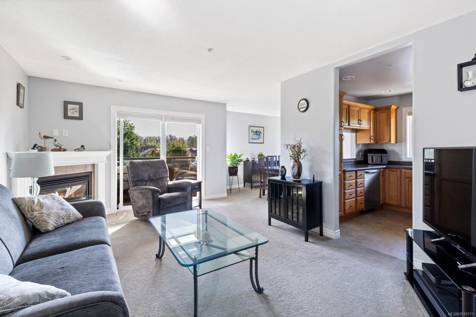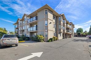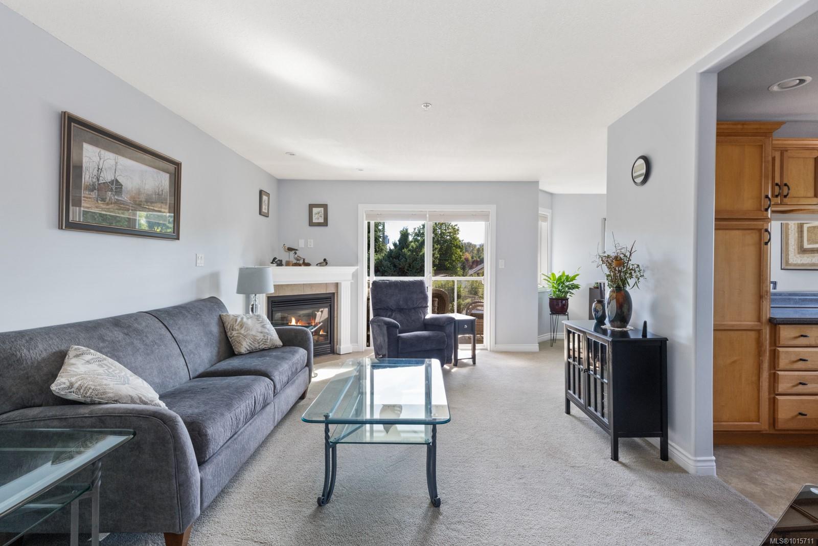 First time on the market! This top-floor corner unit is a rare opportunity in a beautifully maintained 55+ community. With 2 beds, 2 baths & 1084sqft. of sunlit living space, this condo sure is special. The original owners have thoughtfully updated it over the years: remodelled kitchen (2014) & brand-new appliances, both bathrooms redone in 2022, window coverings (2021), plus a lifetime-warranty hot water tank. Step inside & enjoy a spacious living room with a cozy gas fireplace, inviting dining area, handy office nook & a private deck for morning coffee or evening sunsets. Vaulted ceilings in the guest bedroom & primary suite create an airy, elegant feel, with the primary boasting a walk-in closet & gorgeous ensuite. One cat or small dog (under 22 lbs) permitted. Secure entry, elevator & one parking stall included. Steps from downtown, trails, & parks—ideal for walking or exploring with your dog. With reasonable strata fees & very low hydro and gas bills, this is one not to miss.