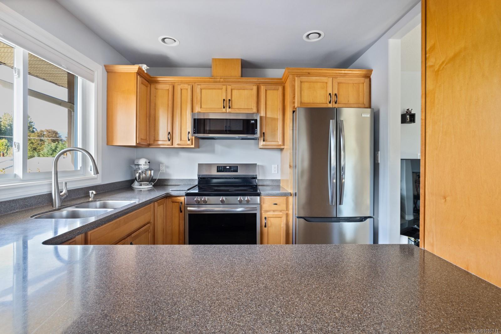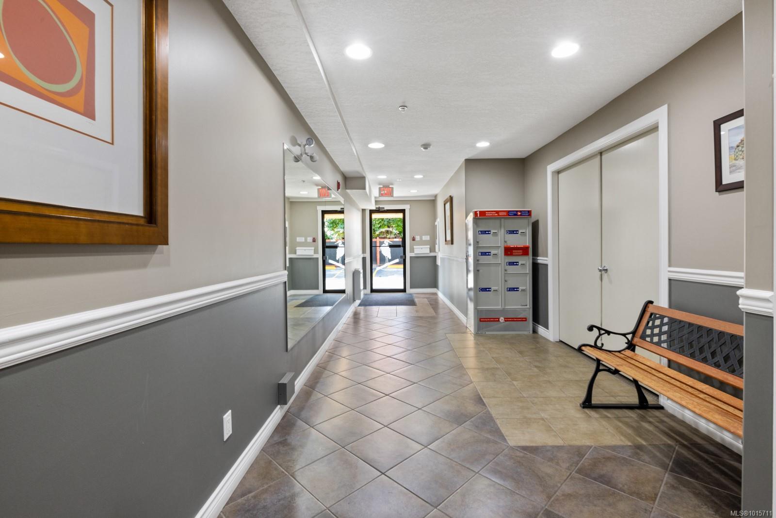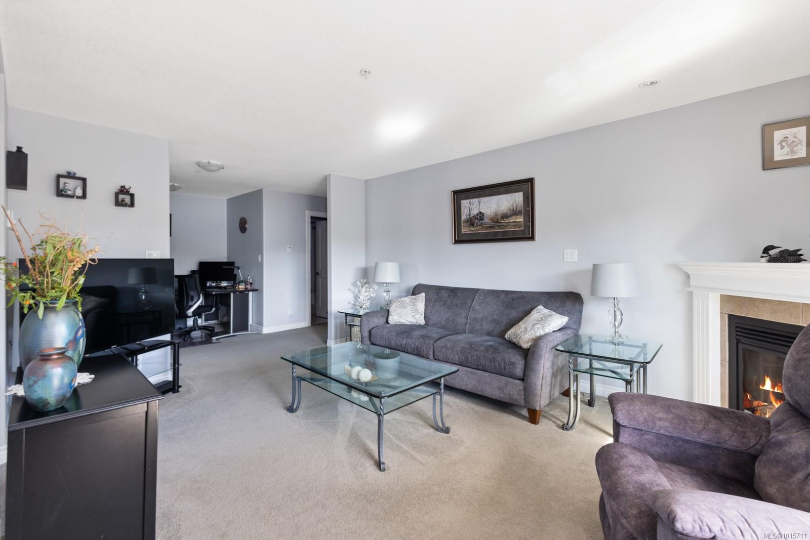 First time on the market! This top-floor corner unit is a rare opportunity in a beautifully maintained 55+ community. With 2 beds, 2 baths & 1084sqft. of sunlit living space, this condo sure is special. The original owners have thoughtfully updated it over the years: remodelled kitchen (2014) & brand-new appliances, both bathrooms redone in 2022, window coverings (2021), plus a lifetime-warranty hot water tank. Step inside & enjoy a spacious living room with a cozy gas fireplace, inviting dining area, handy office nook & a private deck for morning coffee or evening sunsets. Vaulted ceilings in the guest bedroom & primary suite create an airy, elegant feel, with the primary boasting a walk-in closet & gorgeous ensuite. One cat or small dog (under 22 lbs) permitted. Secure entry, elevator & one parking stall included. Steps from downtown, trails, & parks—ideal for walking or exploring with your dog. With reasonable strata fees & very low hydro and gas bills, this is one not to miss.