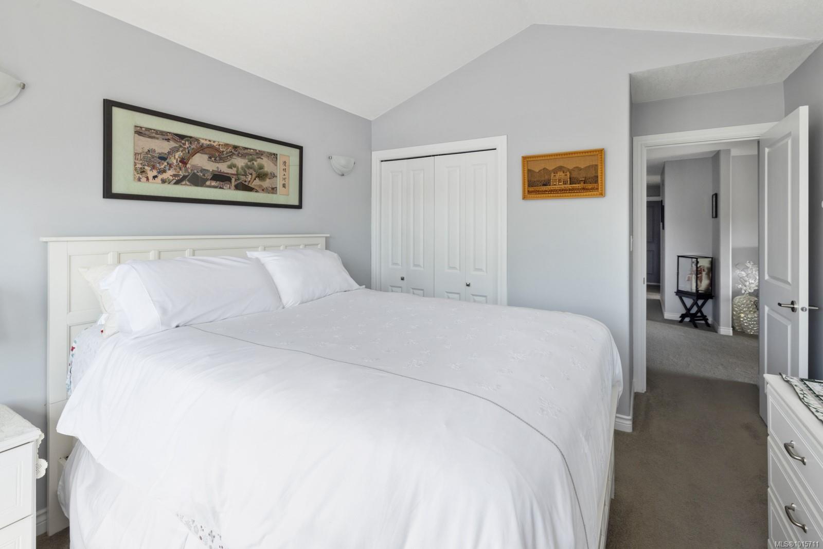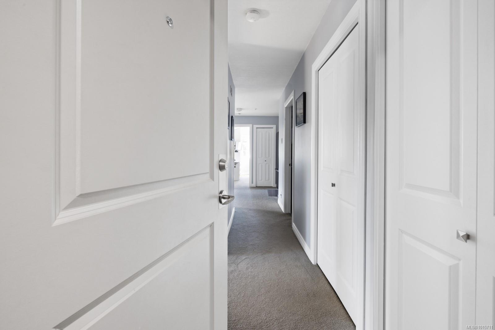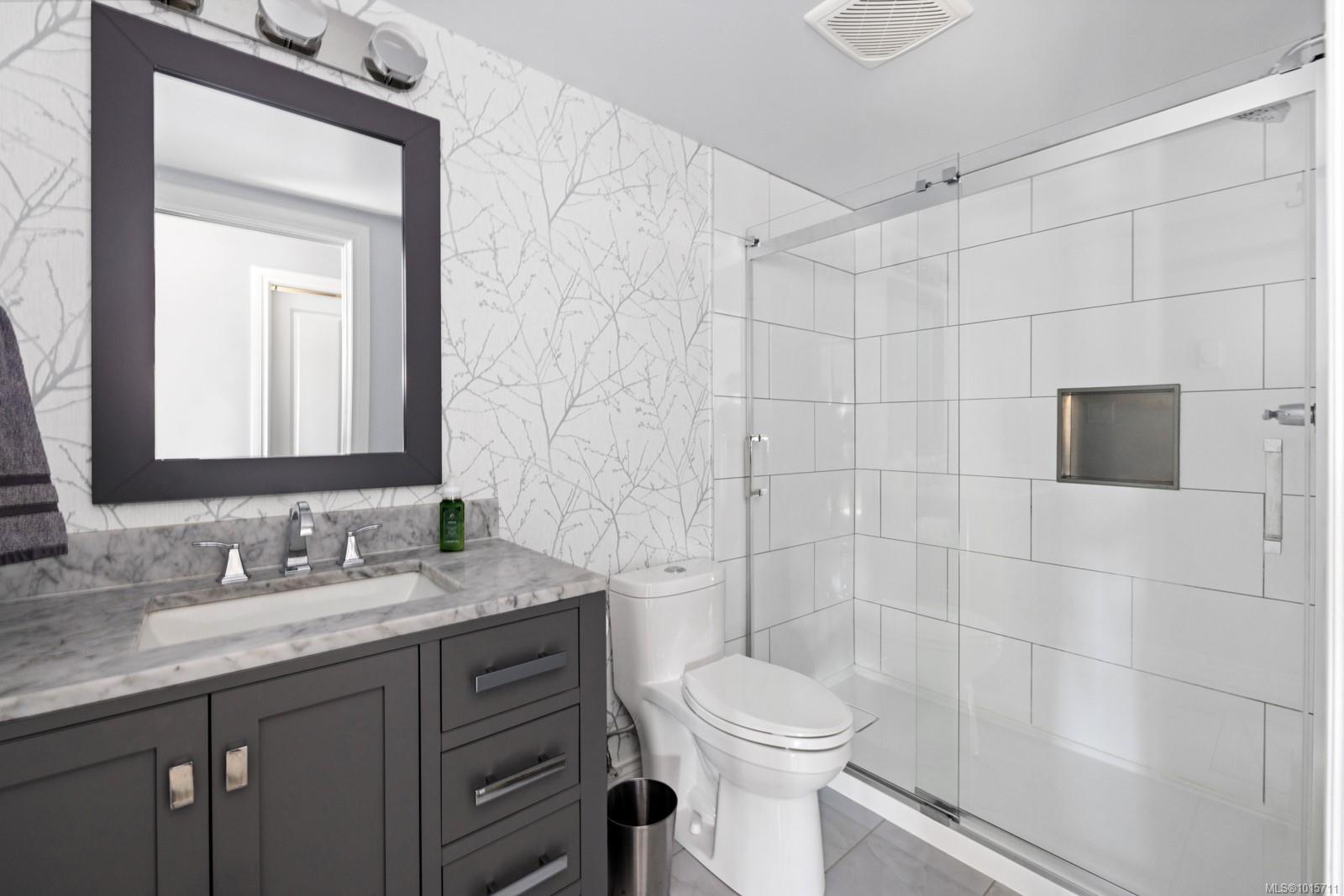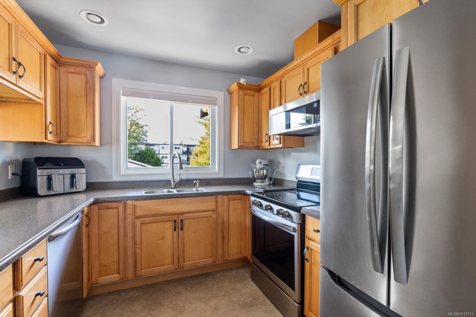First time on the market! This top-floor corner unit is a rare opportunity in a beautifully maintained 55+ community. With 2 beds, 2 baths & 1084sqft. of sunlit living space, this condo sure is special. The original owners have thoughtfully updated it over the years: remodelled kitchen (2014) & brand-new appliances, both bathrooms redone in 2022, window coverings (2021), plus a lifetime-warranty hot water tank. Step inside & enjoy a spacious living room with a cozy gas fireplace, inviting dining area, handy office nook & a private deck for morning coffee or evening sunsets. Vaulted ceilings in the guest bedroom & primary suite create an airy, elegant feel, with the primary boasting a walk-in closet & gorgeous ensuite. One cat or small dog (under 22 lbs) permitted. Secure entry, elevator & one parking stall included. Steps from downtown, trails, & parks—ideal for walking or exploring with your dog. With reasonable strata fees & very low hydro and gas bills, this is one not to miss.