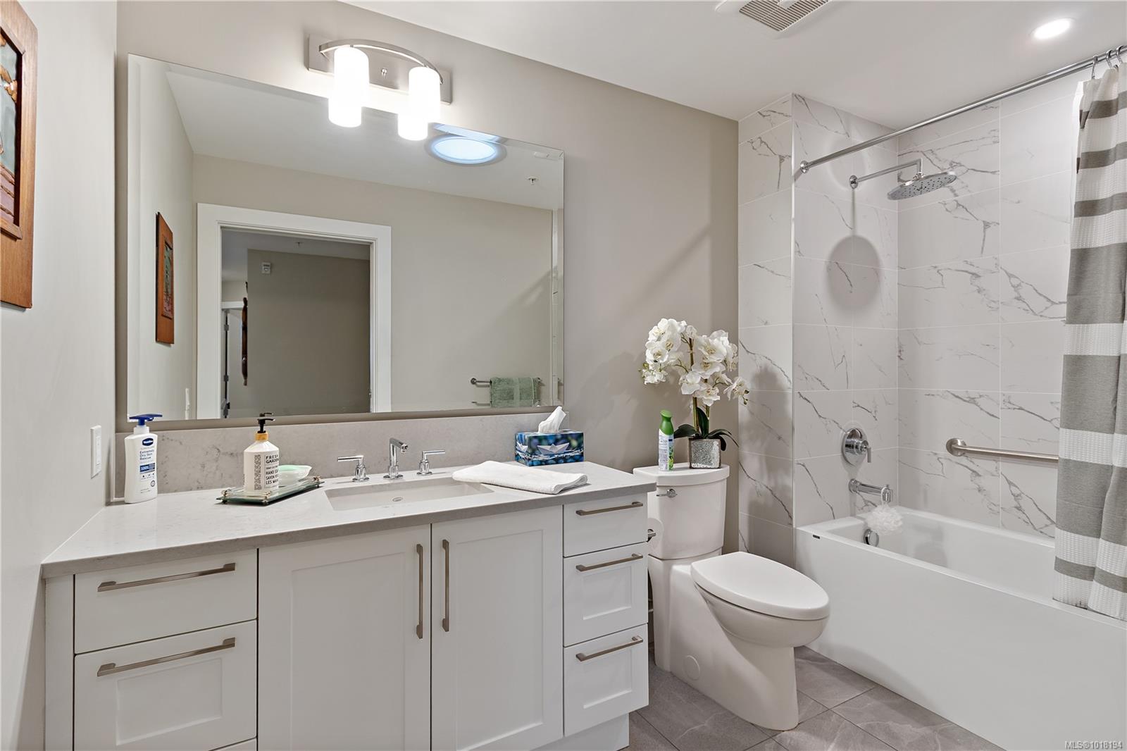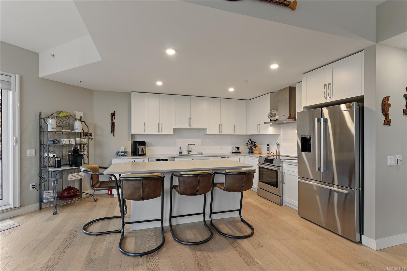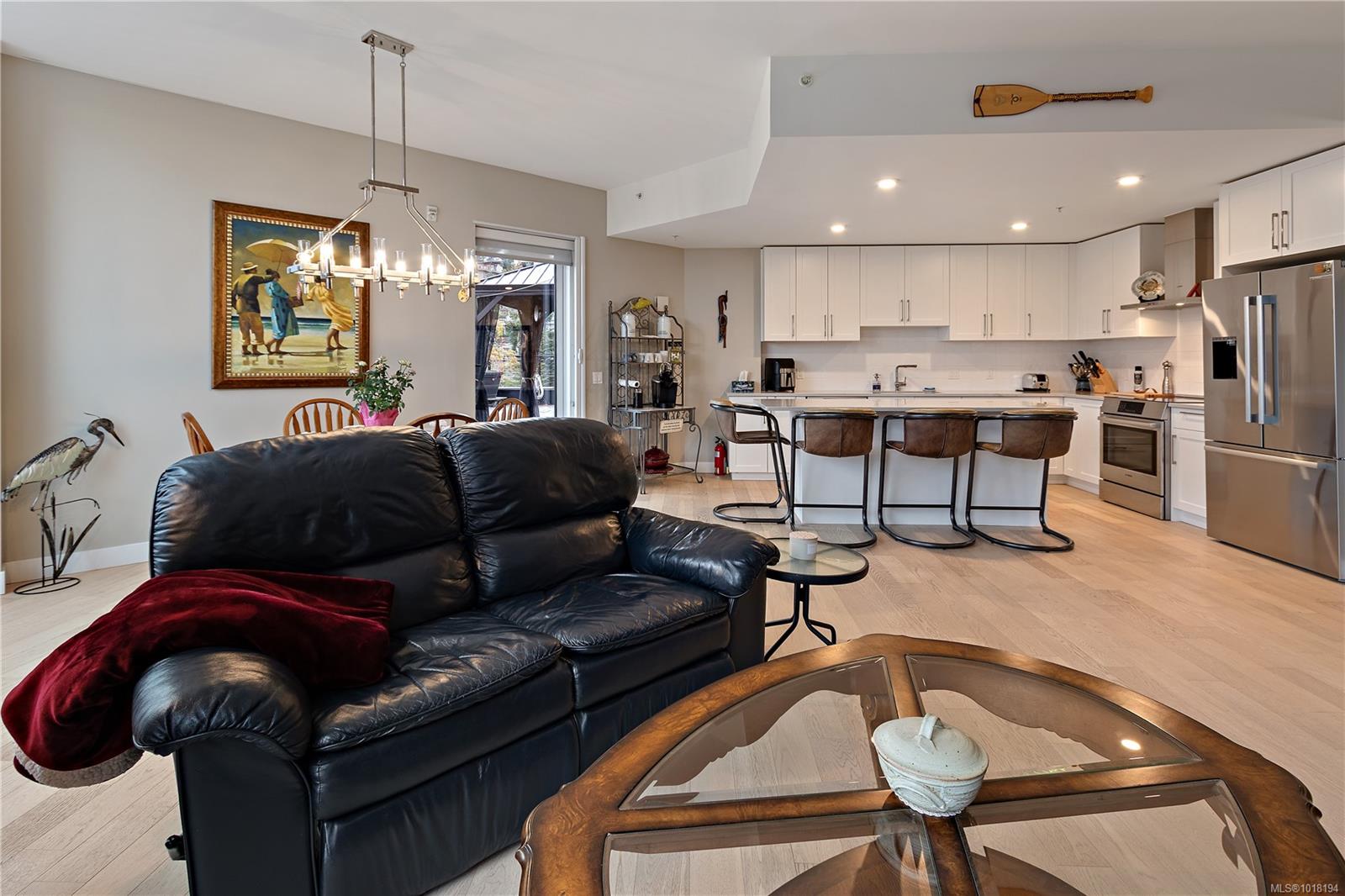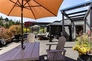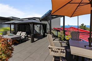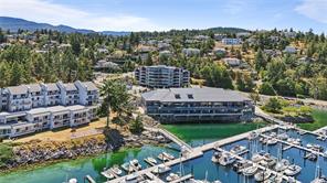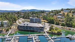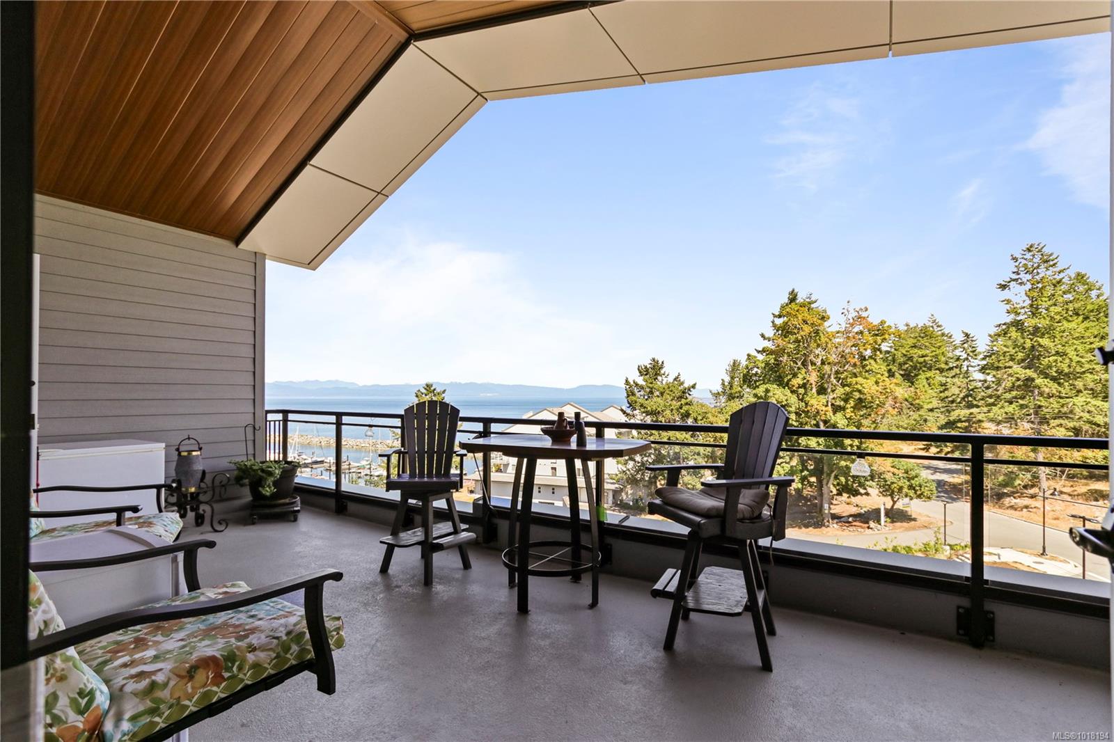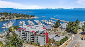 Perched above it all, this sun-drenched penthouse offers impressive ocean & Schooner Cove Marina views from inside & from the expansive rooftop patio & front-facing deck. Located in a sought-after building, this rare home features 2 bdrms plus a den, 2 baths, & over 1,000 sq ft of private outdoor space designed for elevated coastal living. Inside a white designer kitchen with quartz countertops, tile backsplash, & large island anchors the open-concept living & dining area with floor-to-ceiling windows & gas fireplace. Off the kitchen, access leads directly to the generous rooftop patio—exclusive to the penthouse. Both bedrooms boast floor-to-ceiling windows & direct access to the front-facing deck with stunning views. The spacious primary includes a walk-in closet w/organizer & a spa-like 4 pce ensuite. Steps from beaches, trails, the vibrant marina, world-class golf, wellness centre, & Nanoose Bay Café, this is a rare chance to own one of Vancouver Island’s most impressive penthouses.