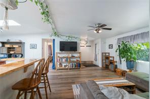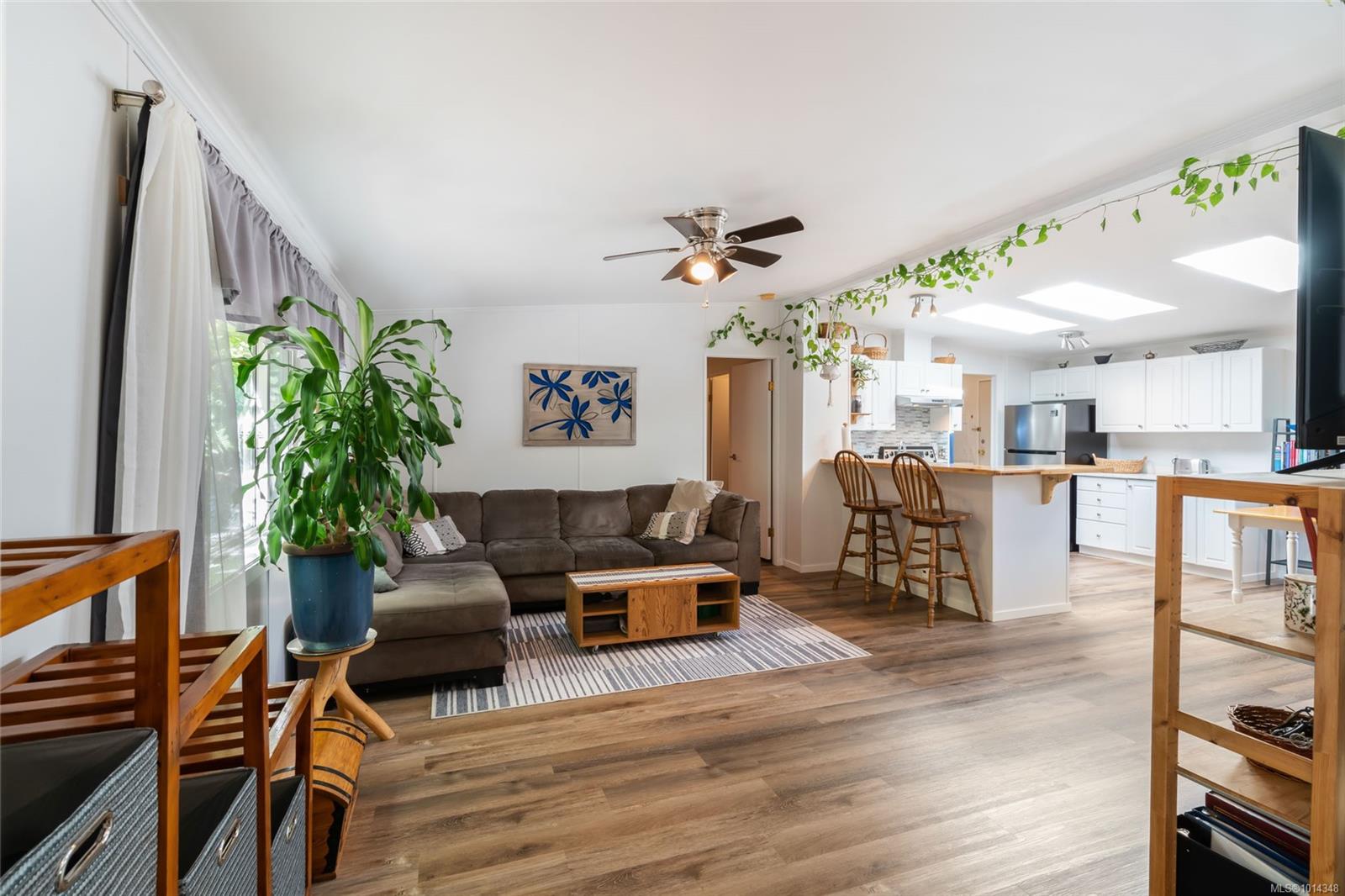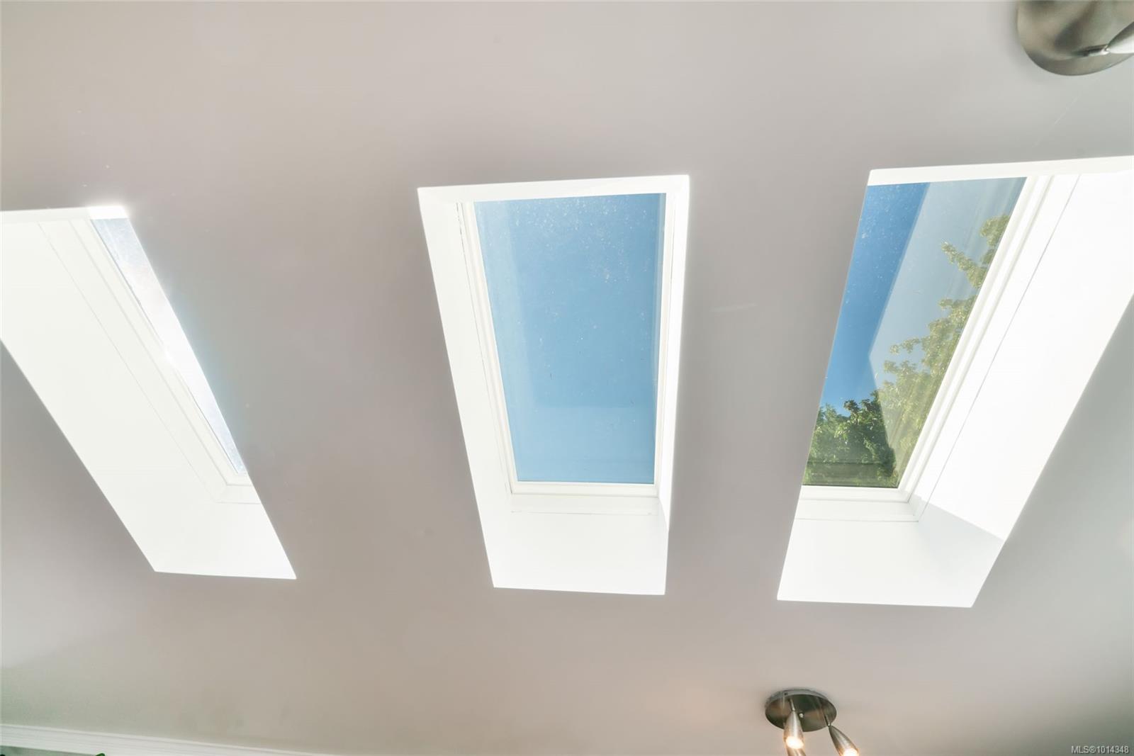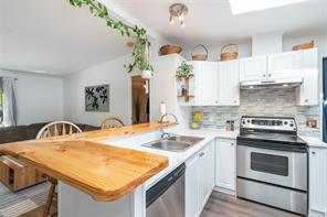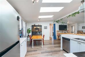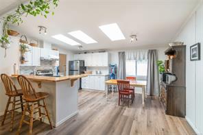 Inside, vaulted ceilings and three skylights fill the kitchen and dining area with natural light, creating an airy, open-concept feel that flows seamlessly into the living room. The generous primary bedroom features a walk-in closet and a private 4-piece ensuite, while two additional bedrooms offer space for family, guests, or a home office.