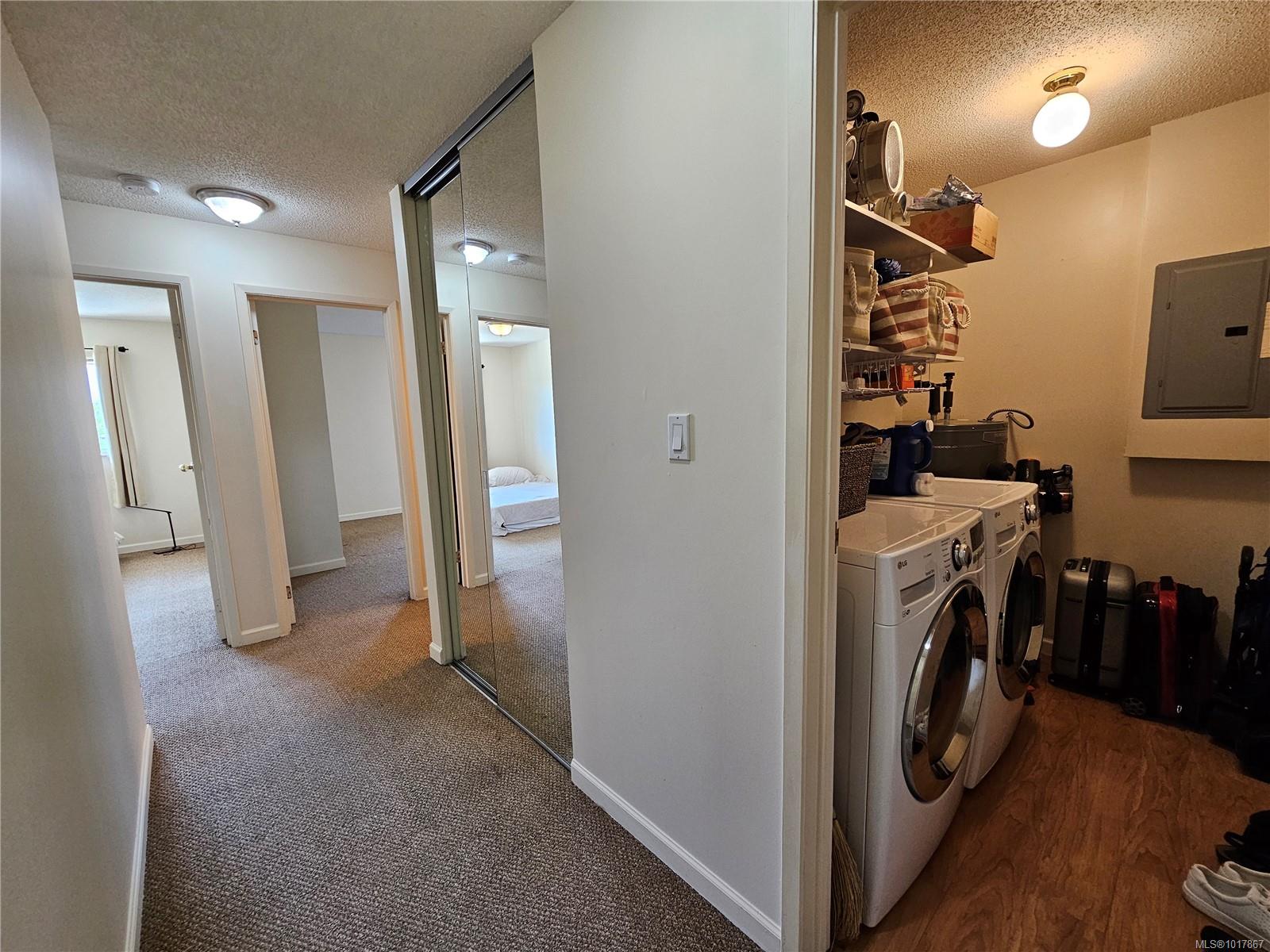 Dover House. Desirable North Nanaimo neighborhood. Top-floor, south-facing 2-bed condo. A blend of comfort & convenience. Generous sized unit 900sqft, thoughtful updates throughout: Kitchen features new appliances & an open layout, enhanced by the removal of a wall to create a bright, flowing floor plan. New windows & sliding doors added this Summer 2025. Bathroom has modern updates. A spacious primary bedroom & in-suite laundry add to the home’s appeal. Stunning views of Mnt Benson & Lantzville foothills from every window, abundant natural light throughout. Spacious covered deck is perfect for watching sunsets, BBQ’s & growing a small garden. Plant lovers will enjoy thriving indoor & outdoor plants. Separate storage access down the hall, same floor. Ideal for first-time buyers, investors, or downsizers. Walk to: Cabela’s, Homesense, Costco, Dollar store, Restaurants, coffee shops… Enjoy nearby recreation- tennis courts, Pioneer Park, scenic trails & beach access to enjoy the ocean.