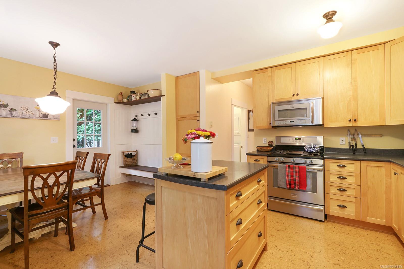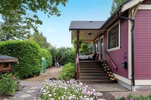 Located in Old Orchard, Courtenay’s cherished neighbourhood – a world away yet close to all amenities. Enchanting heritage style home, built in 1928, nestled into a private .22 acre on 2 separately titled lots. Offering 4 BD/ 3 BA, 1,550 sf, in-law suite with separate entry to the upper level and 6’ crawlspace. Beautifully updated over the years, craftsman style detailing combined with West Coast elements showcase comfort and functional design. River rock natural gas fireplace, slate hearth, traditional mantle, stunning fir flooring and 9’ coffered ceilings in the Great room, spacious kitchen and dining room w/ schoolhouse lights, maple shaker cabinets, gas range, s/s appliances, and French doors opening to the private deck. Exterior stairs access the upper level and adorable studio suite with sloped ceilings and 3 skylights, ideal for extended family. Detached shop 19’4†x 17’5â€, insulated, wired and boasting a split pump for A/C. H/W on demand, 40 yr roof 2024, W/D 2024.