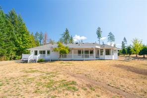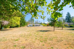 Welcome to this well-maintained 6-bedroom, 2-bathroom rancher set on a tranquil 1.9-acre parklike lot in a quiet neighborhood. Step inside to an open-concept layout filled with natural light, featuring beautiful wood floors, a spacious living room with a cozy electric fireplace, and a bright kitchen with oak cabinets, a central island, and a charming bay window. The adjoining dining area is perfect for family meals or entertaining. Step out onto the expansive, partially covered deck overlooking a peaceful, treed backdrop. The landscaped grounds feature fruit trees—including peach—a graceful willow tree, and Japanese maple, with plenty of space for dream gardens or for children to grow and play, all steps from the Log Train Trail. Complete with attached double and single garages and ample parking for your RV, this home offers comfort, space, and the beauty of nature right at your doorstep. All measurements are approximate, verify if important.