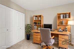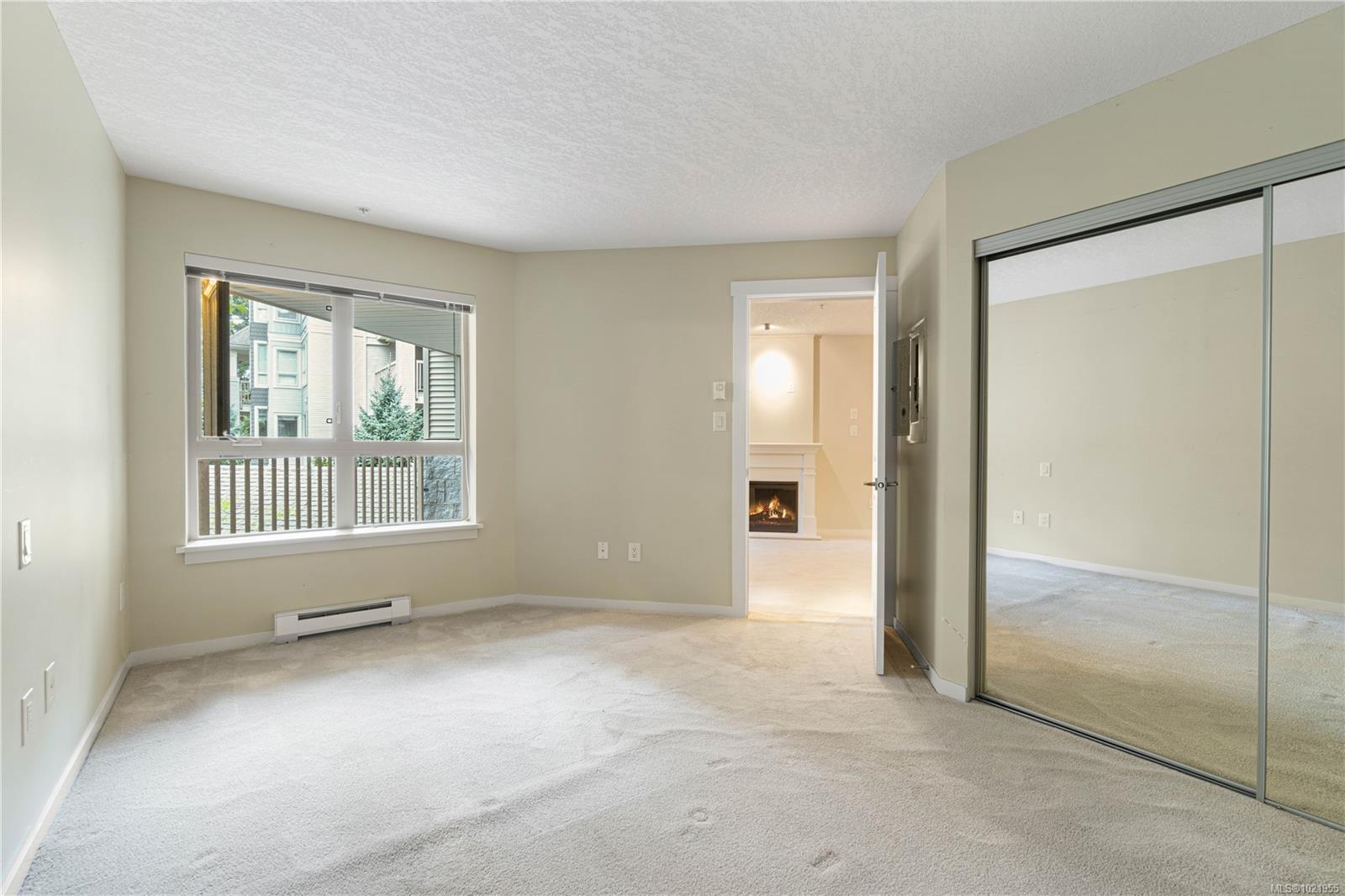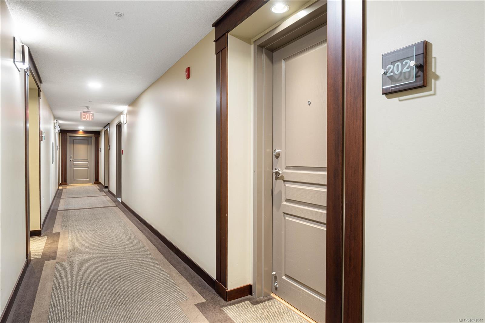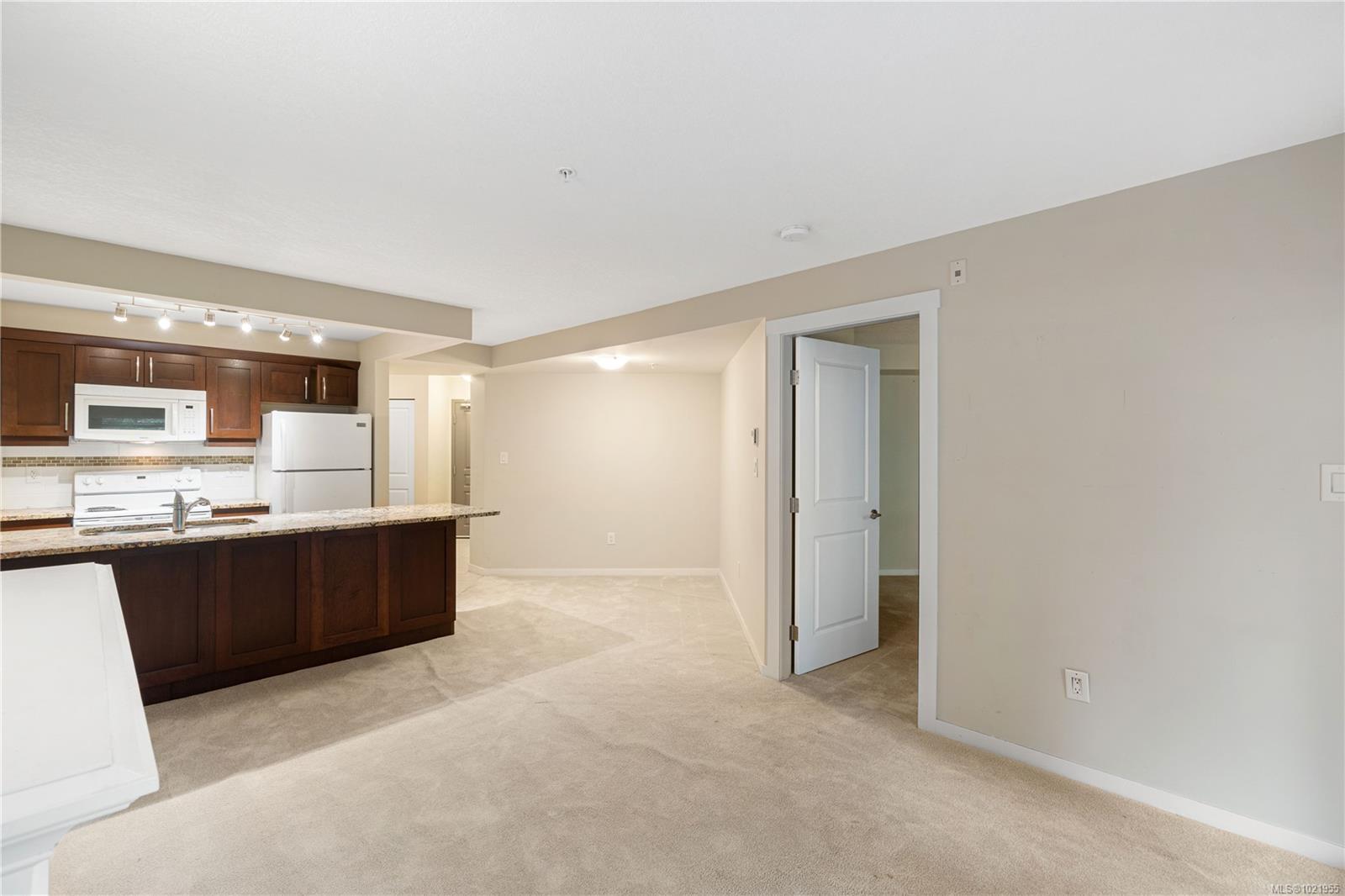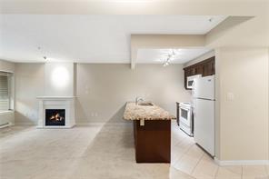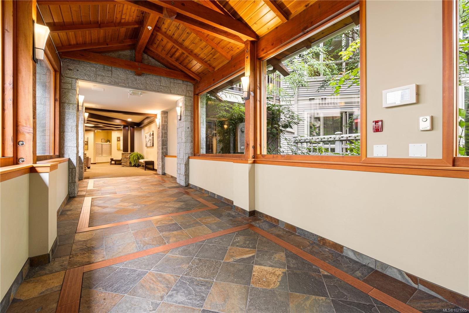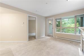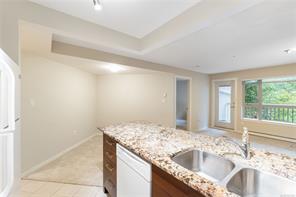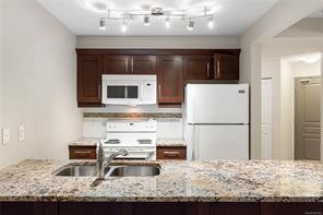 THORNBRIDGE at Longwood is Nanaimo’s premier North end luxury community. This carefully crafted 1 bed, 1 bath & den unit boasts an elegantly functional interior. The living room includes an electric fireplace and access to the spacious, private deck. You’ll love the sounds of nature (including the trickling water) as you relax outside. The kitchen includes all appliances & is cleverly designed to maximize every inch of space. It features richly stained maple Shaker-style cabinets, granite counter tops and a large peninsula with bar seating. A spacious dining area will welcome family & friends. The primary bedroom includes a spacious closet. An open den provides additional space for your home office, a craft and hobby area or what-have-you. A convenient laundry area with new GE washer & dryer, completes the home. Eco friendly touches include low-flush toilets and energy efficient baseboard heaters keeping the hydro bills low. All measurements should be verified if important.