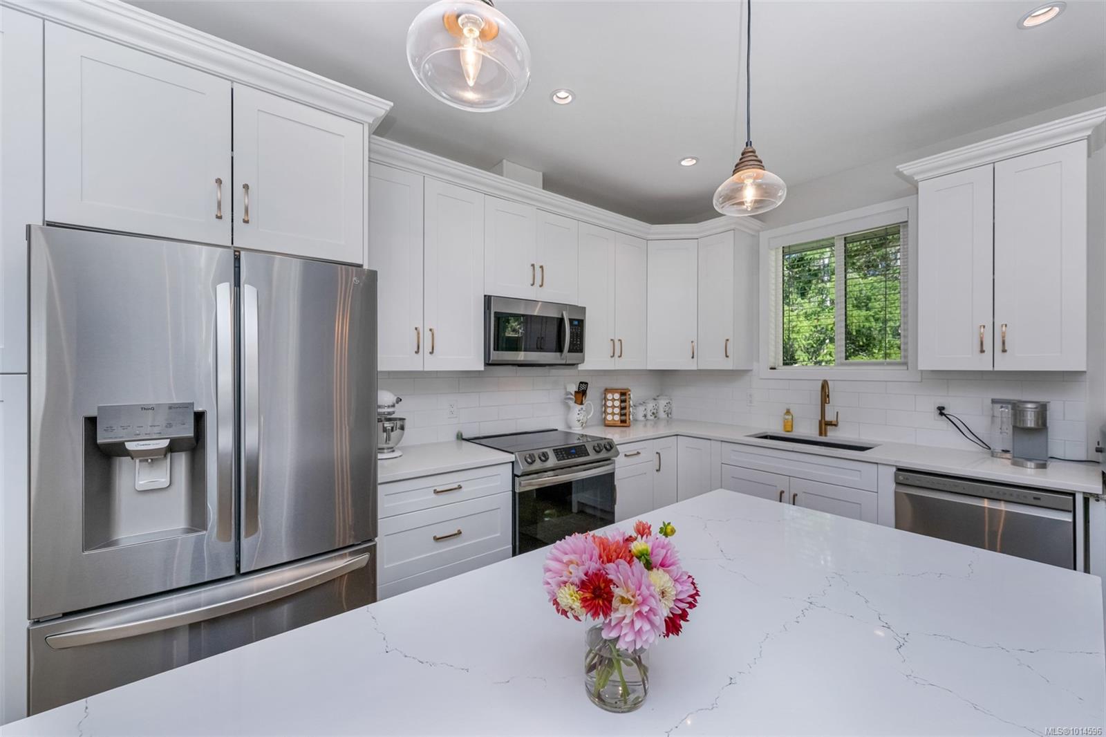 Nearly new (no GST!), immaculate, 1500 sqft.+/-, 3 bedroom, 2 bath rancher on a partially fenced, 0.19 acre lot is located in Trail’s Edge, Lake Cowichan’s newest development of fine homes. This well laid out home features an open design living area, which is ideal for entertaining and includes a beautiful, bright kitchen with quartz countertops, soft close cabinets, large island with eating bar, dining area with access to the private back patio and a generous living room with a propane fireplace. The primary bedroom has nice walk-in closet and great 4 pce. ensuite and the other 2 bedrooms are of a good size. The property was thoughtfully landscaped to ease maintenance & has some nice lawn space out front, fencing on both sides, a small greenhouse, raised garden beds, storage shed & an irrigation system. An ideal location to access the Trans Canada Trail for walking & enjoying the natural beauty & endless recreation this area offers. Close to the lake, river, arena & most amenities.